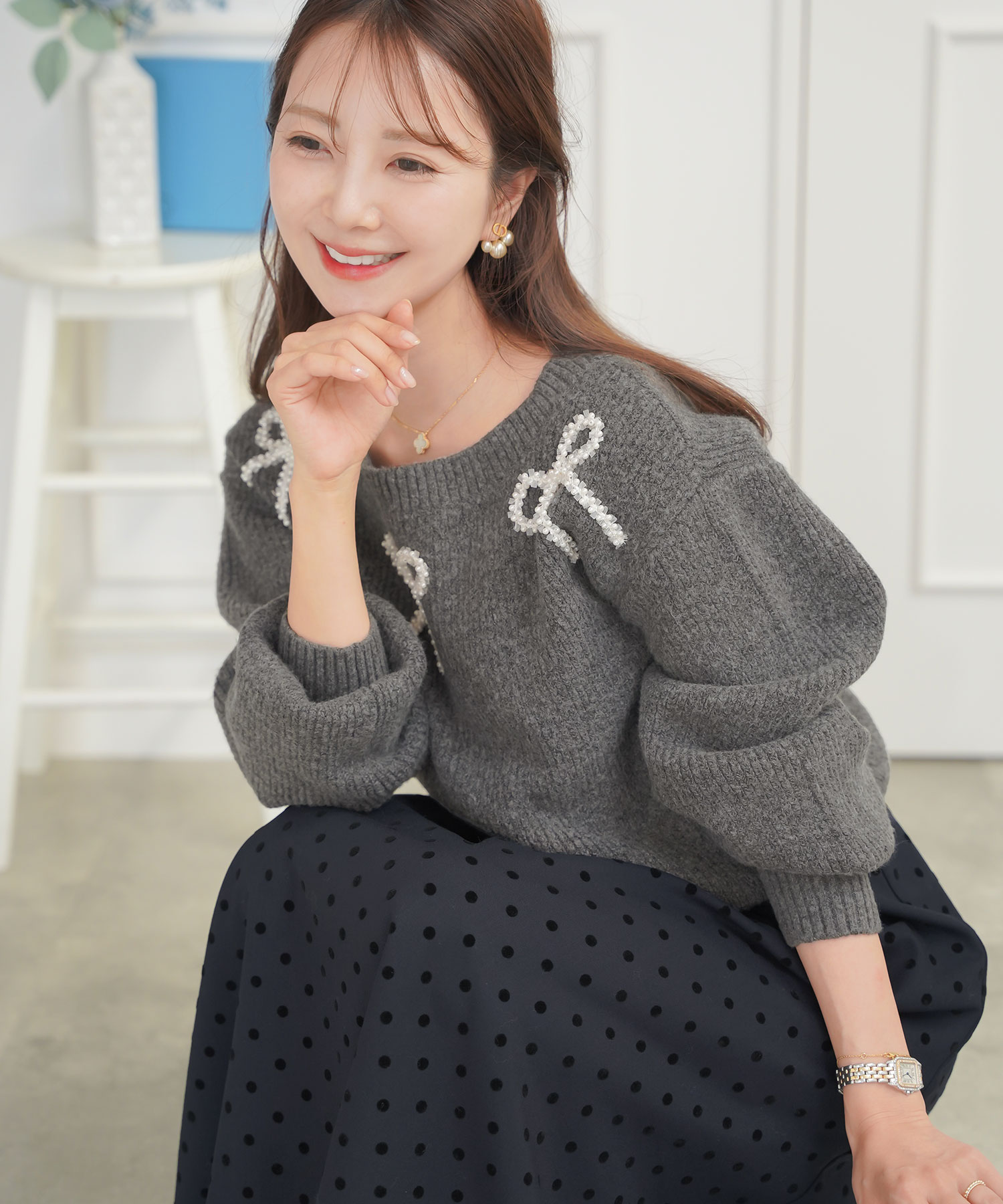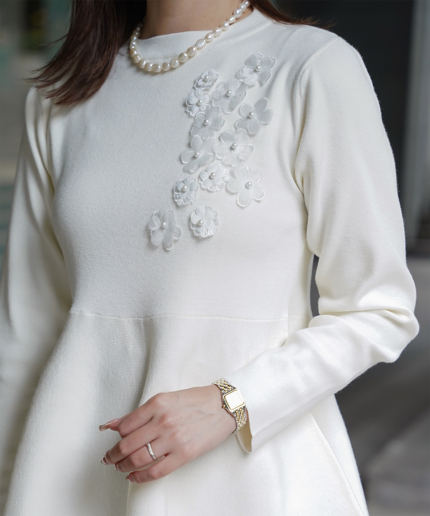 フラワーモチーフ ニット トップス(HUIT)¥10,780(税込)