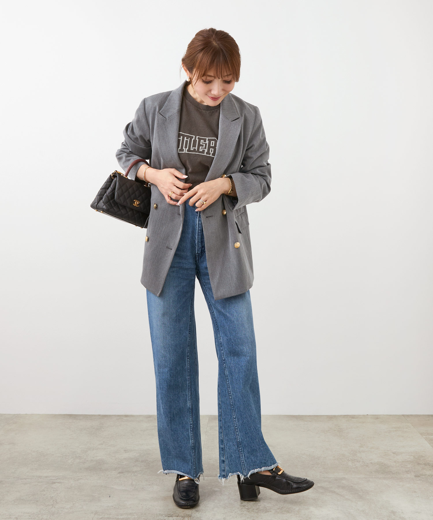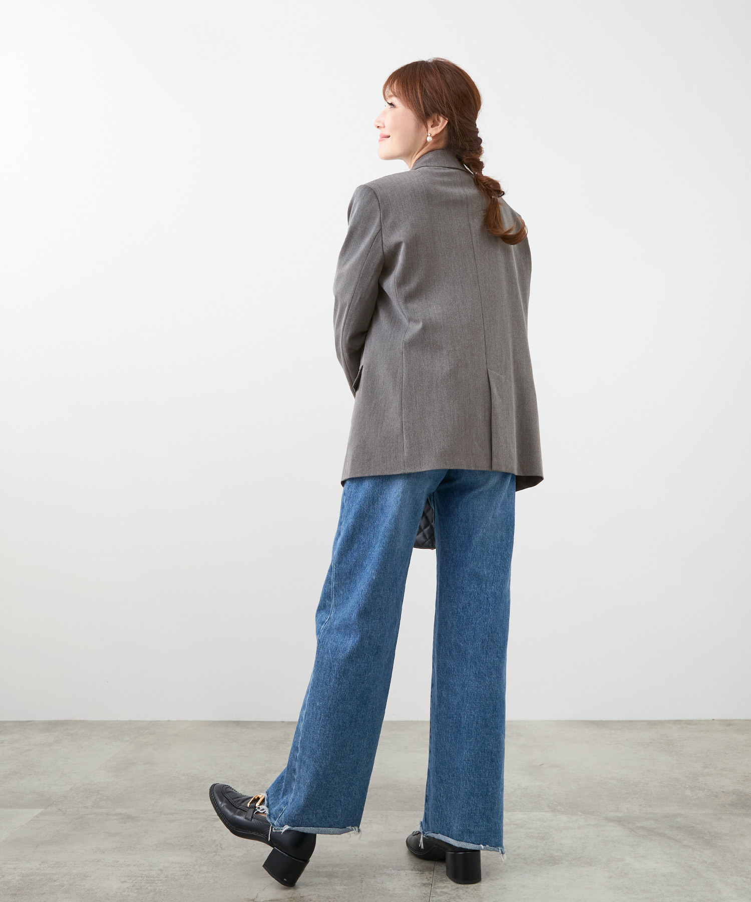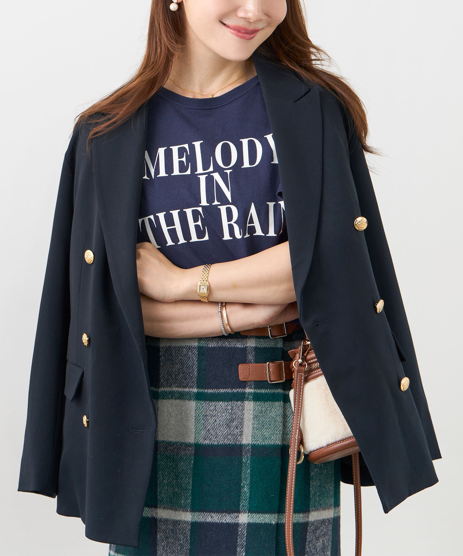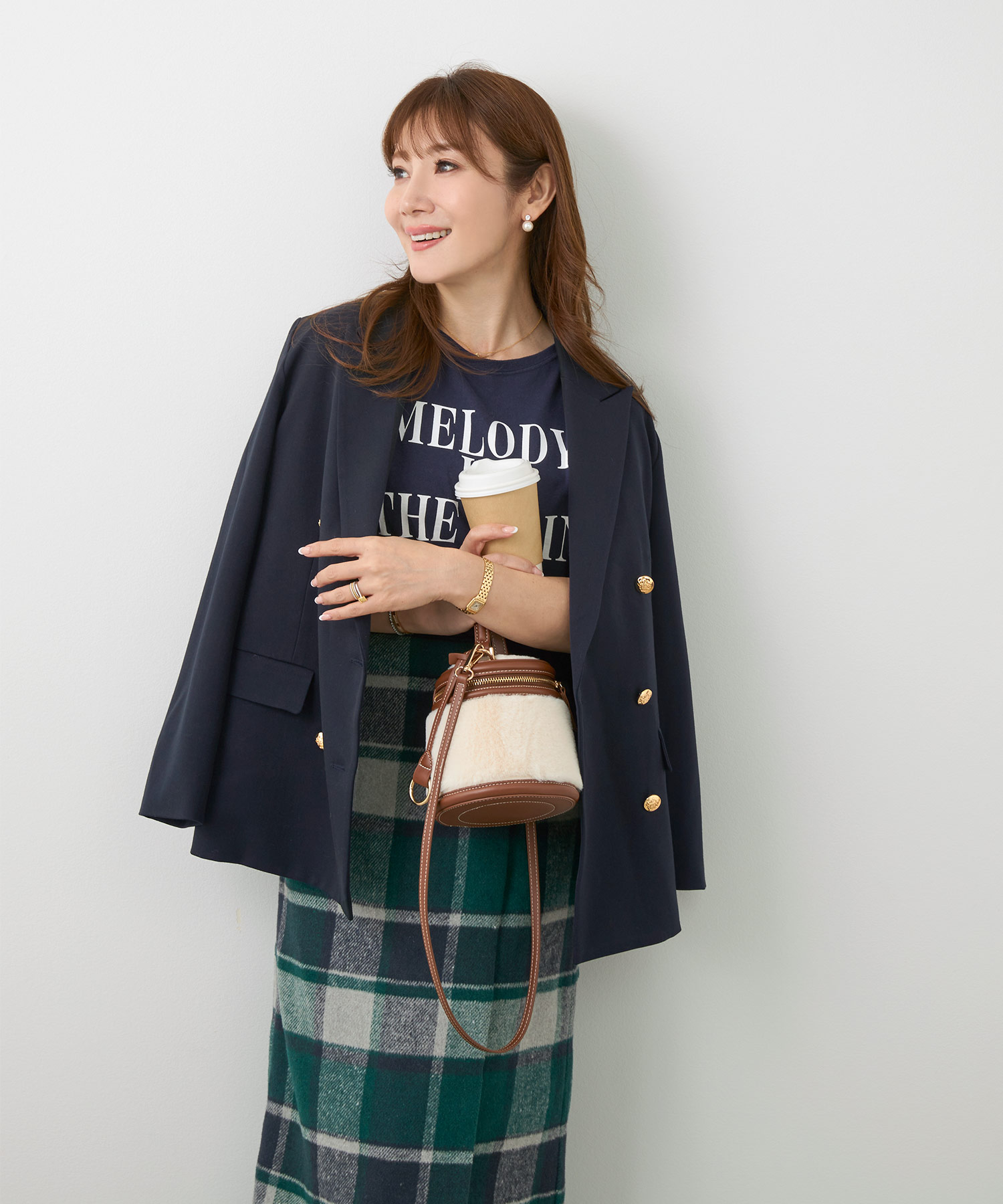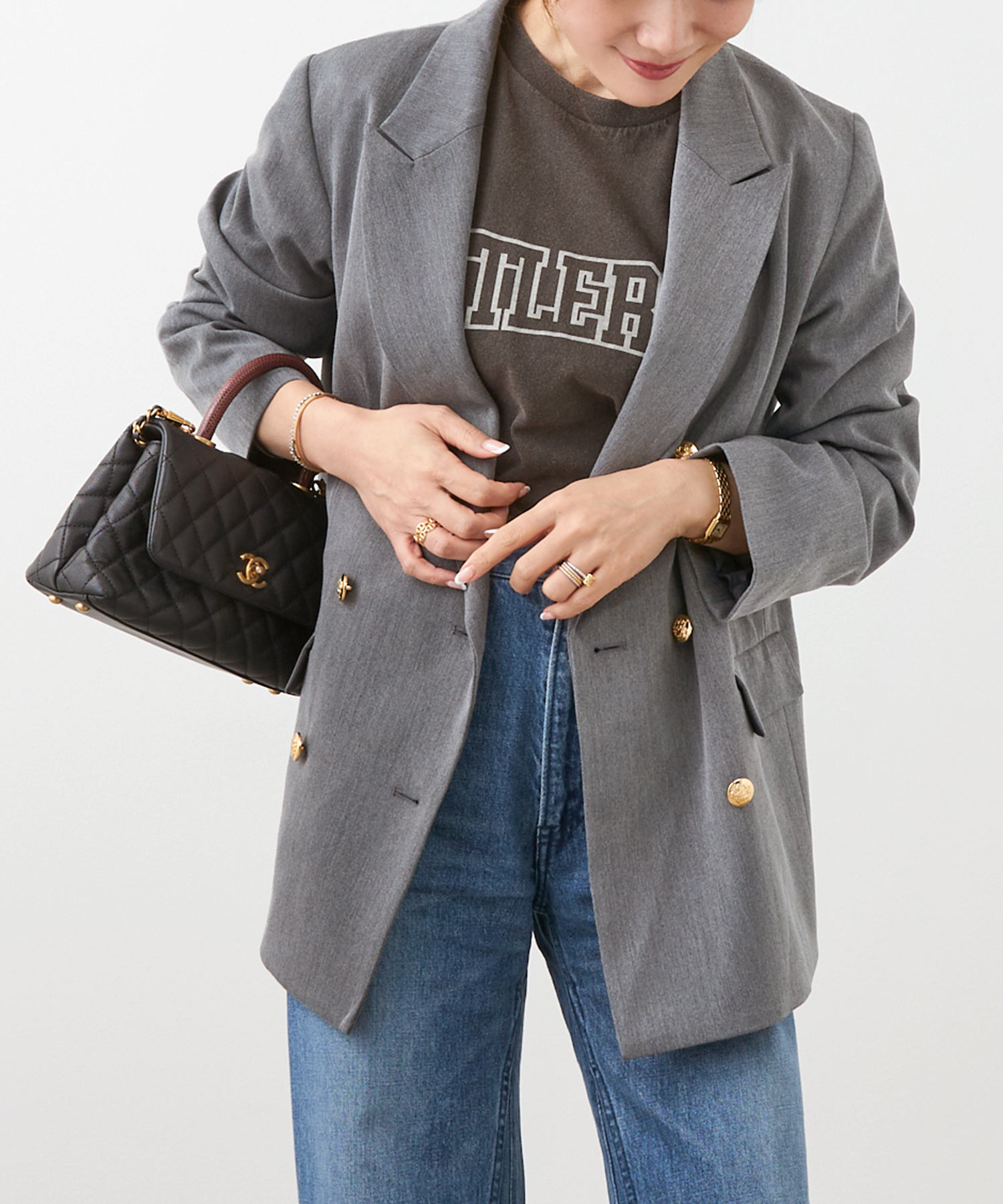 オフィスからデイリーまで幅広く活躍するダブルブレストジャケットが登場。今年らしいゆったりとしたシルエットで、洗練された印象を引き立てます。カラーは定番のネイビーとニュアンス感漂うグレーの2色展開。冬の通勤スタイルには薄手のハイネックニット、休日はロゴTシャツを合わせて、インナー次第で着回しの幅が広がります。落ち感のある生地がマニッシュになりすぎず、大人の女性らしい絶妙なバランスを演出。冬のレディースコーデを格上げする一着です。
