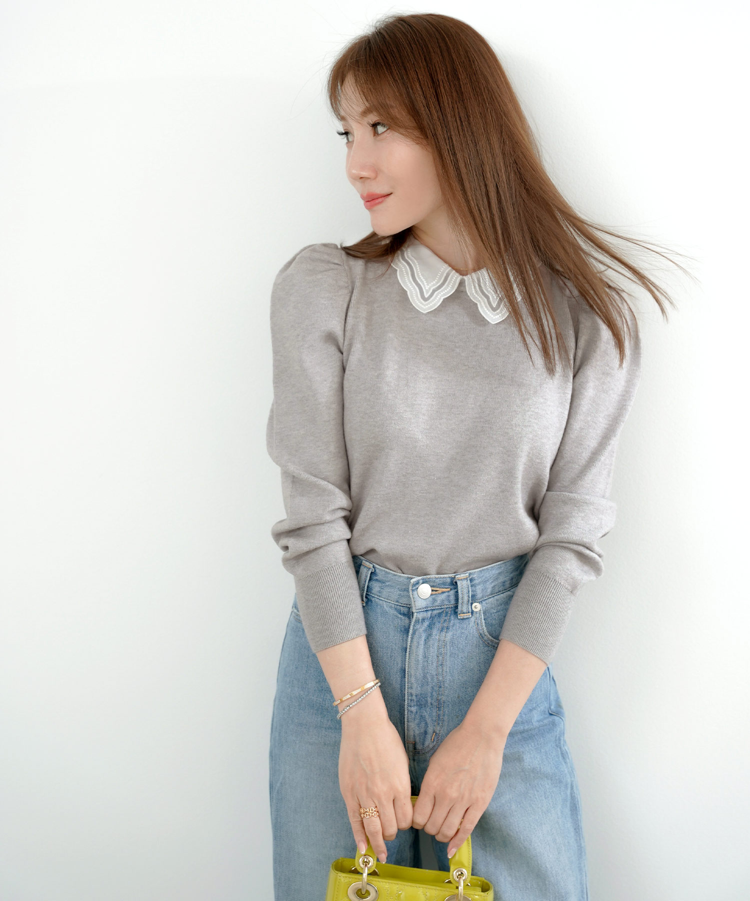 レース襟付き 取り外し可2way ニット 長袖(Liala×PG)¥9,900(税込)