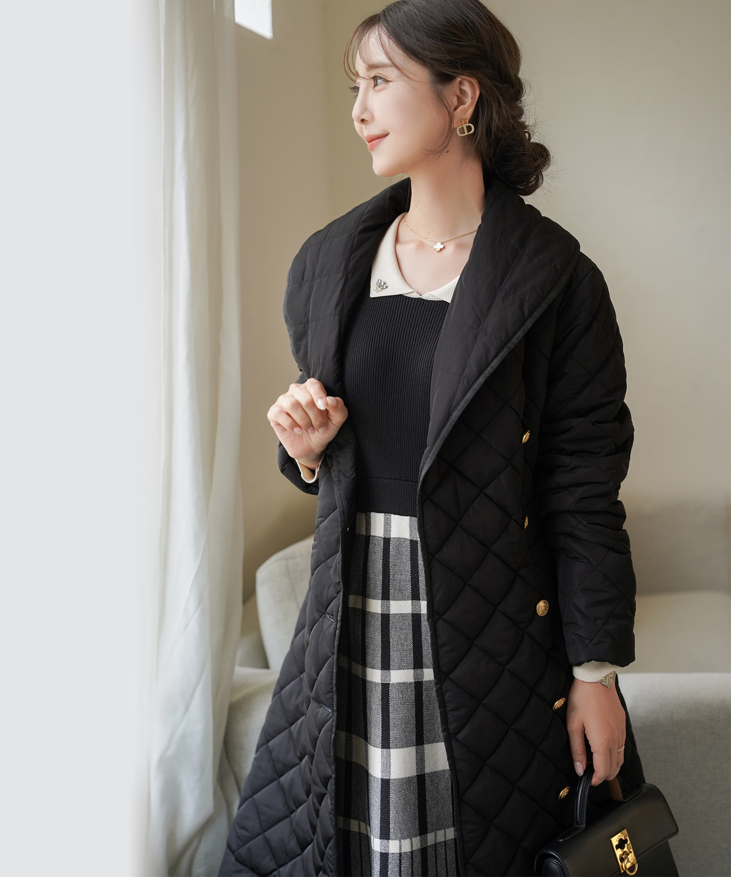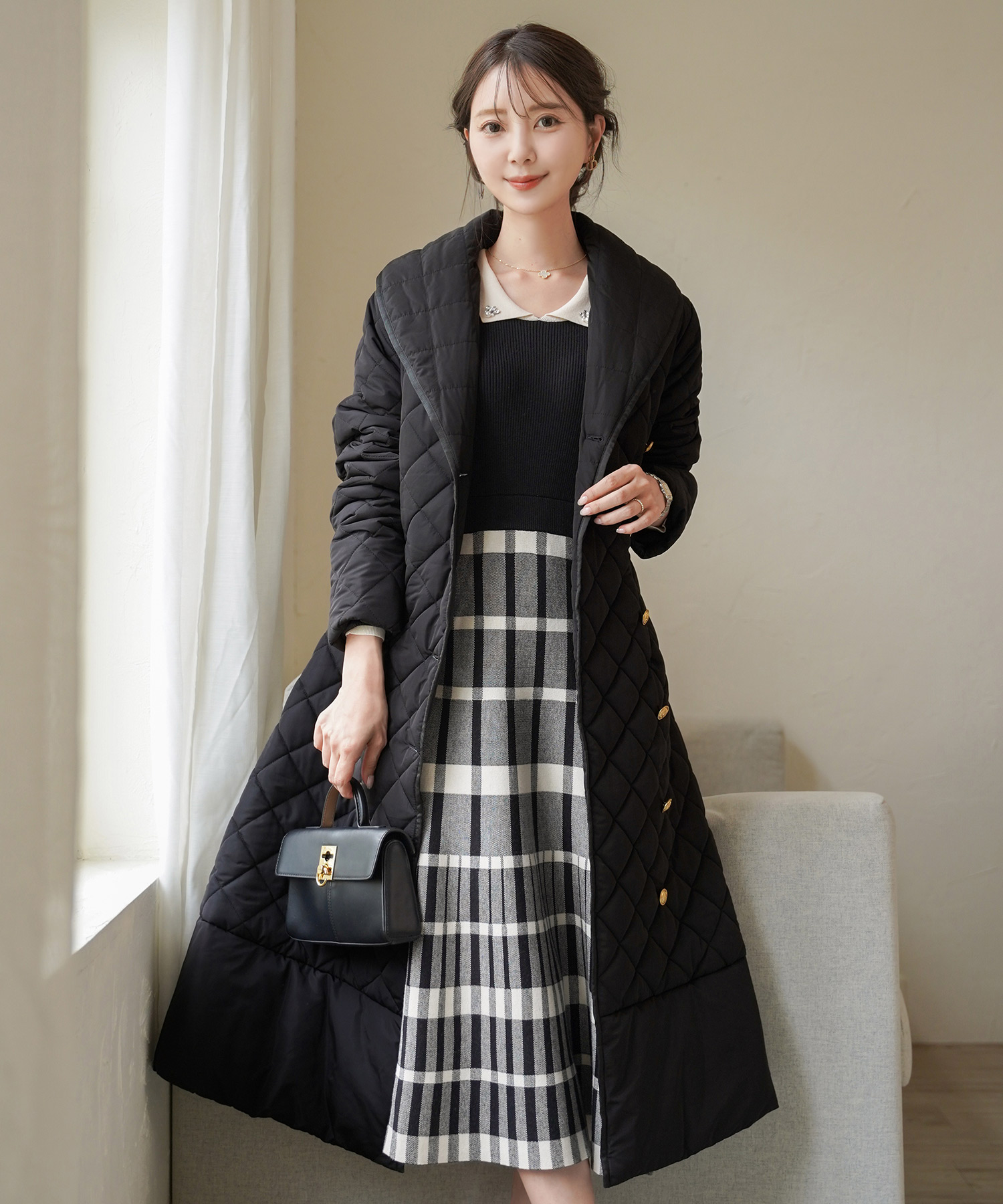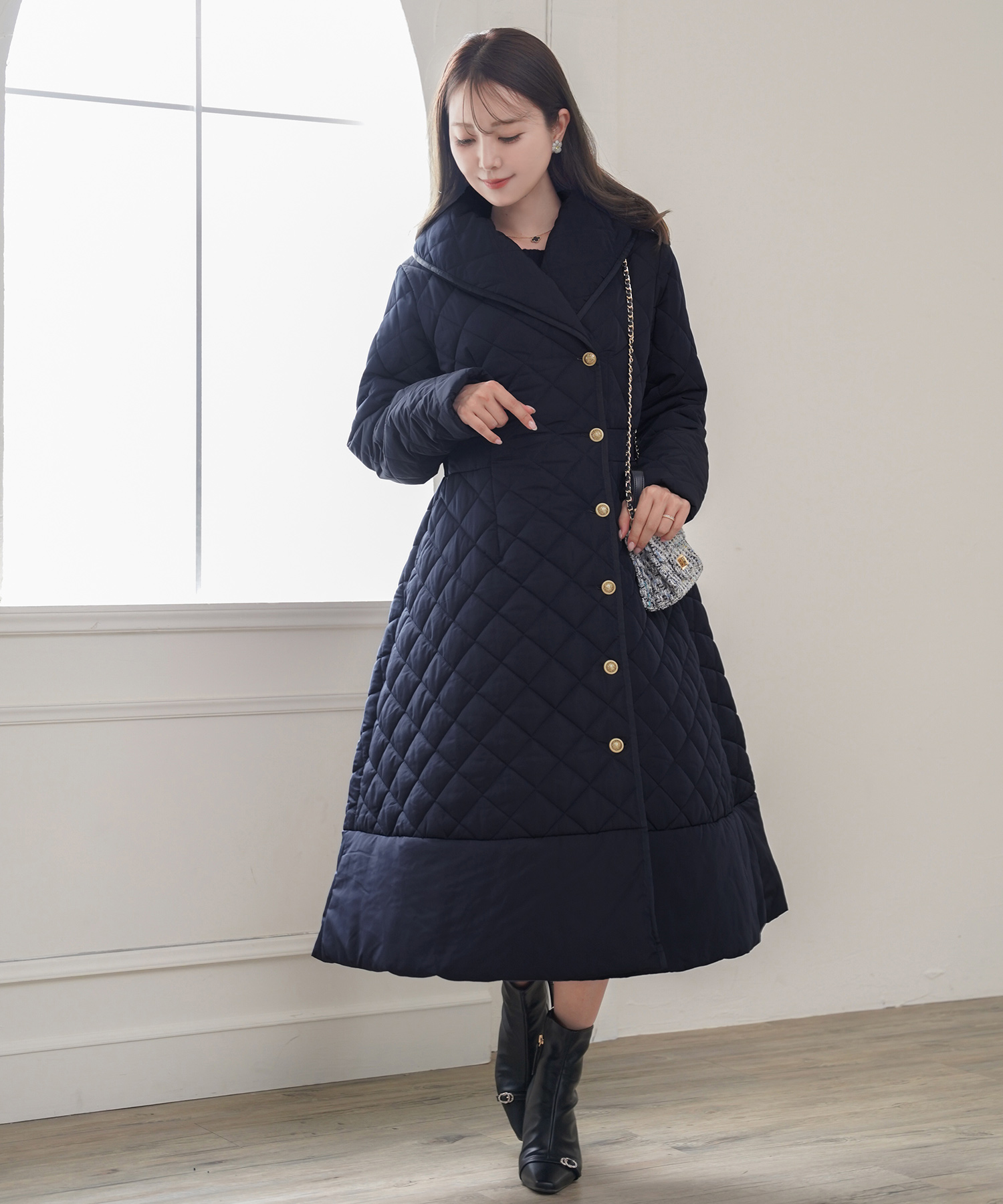 優雅なフレアラインで叶える!冬のレディースキルティングコートコーデ
