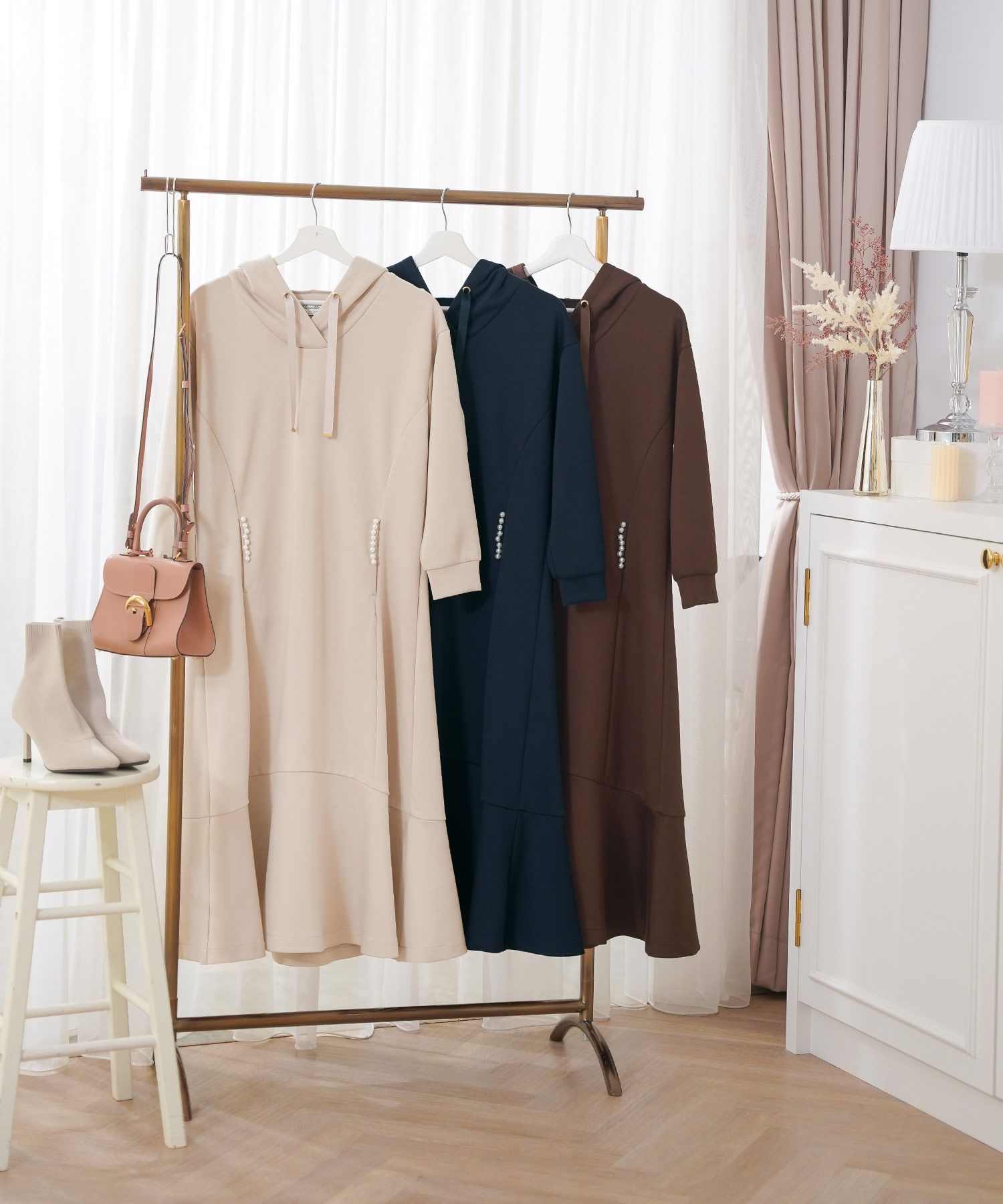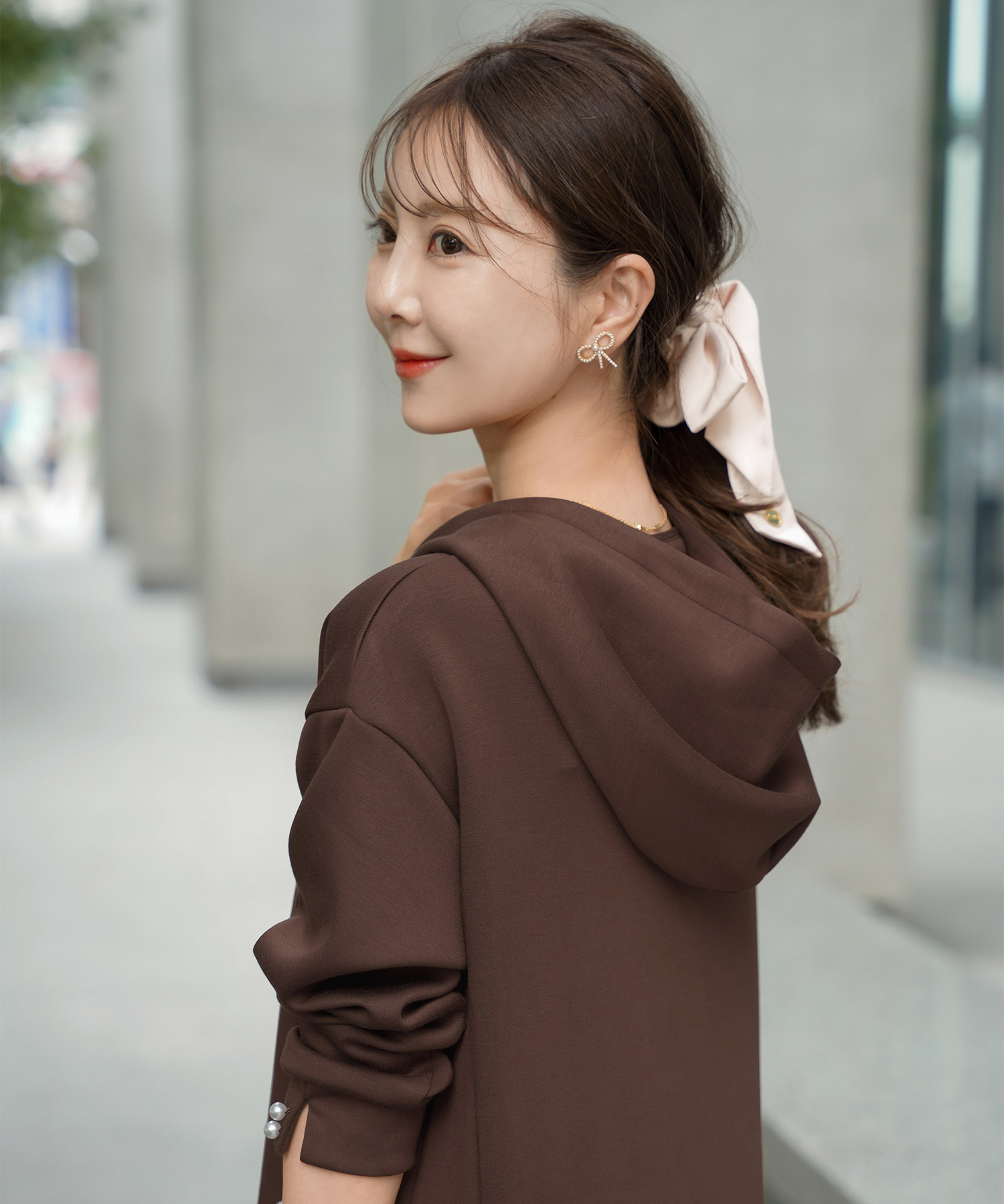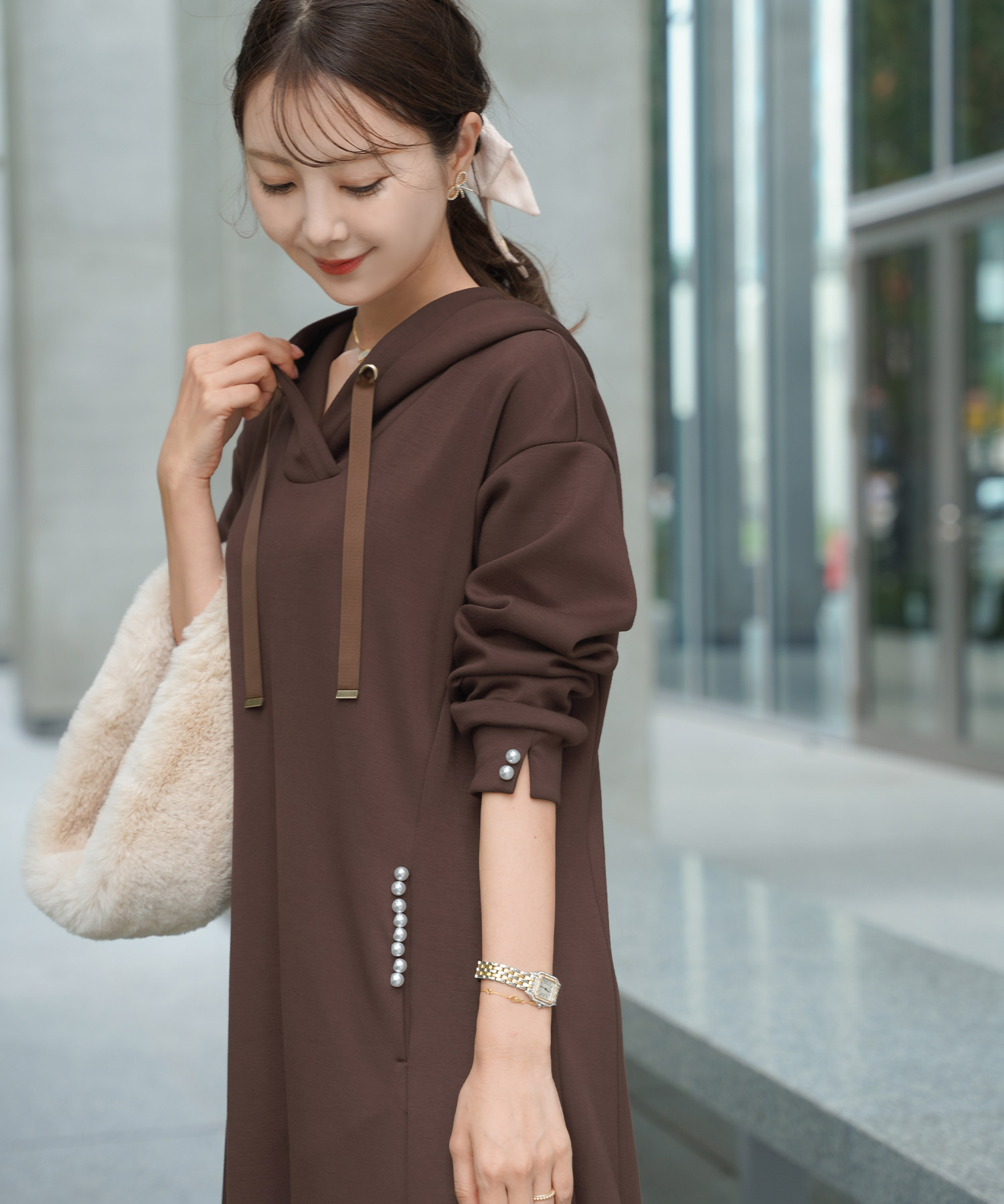 パール付きパーカーワンピースで過ごす冬のワンマイルコーデ