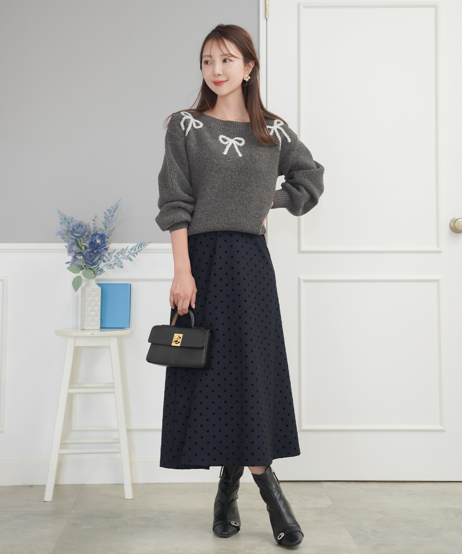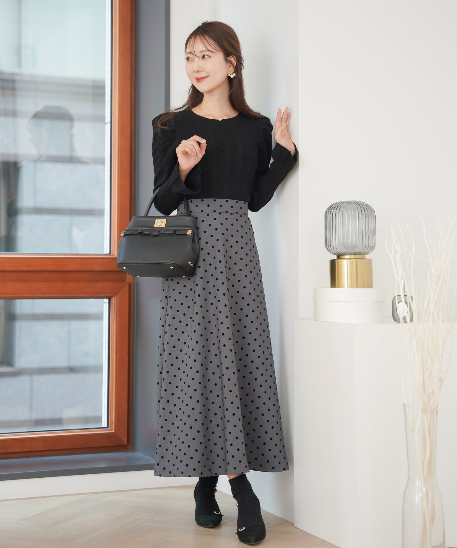 冬のデートコーデはフロッキードットスカートで、大人っぽくシックに決める!