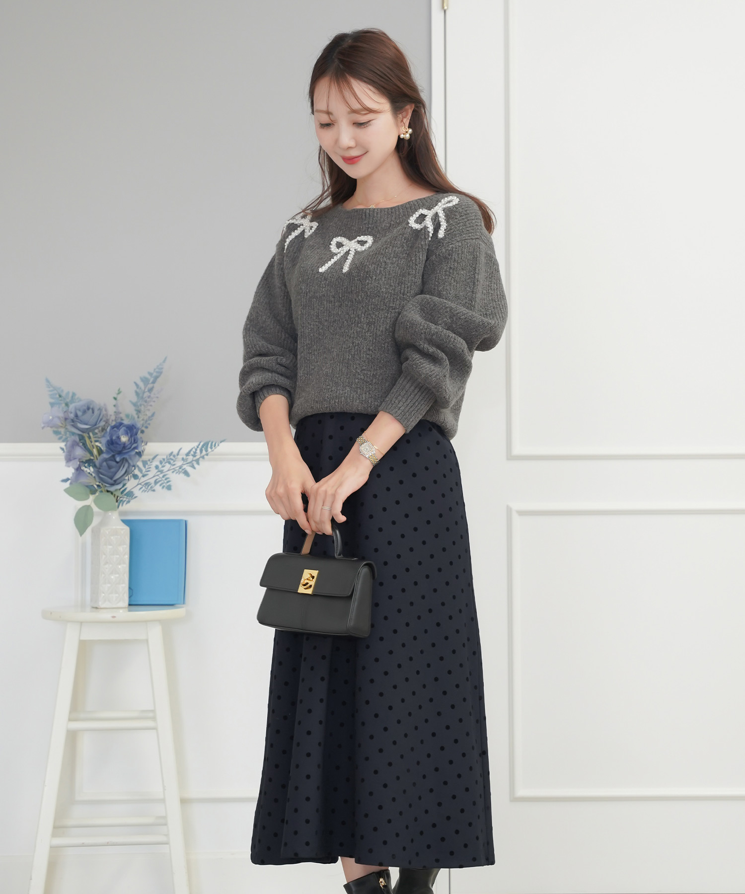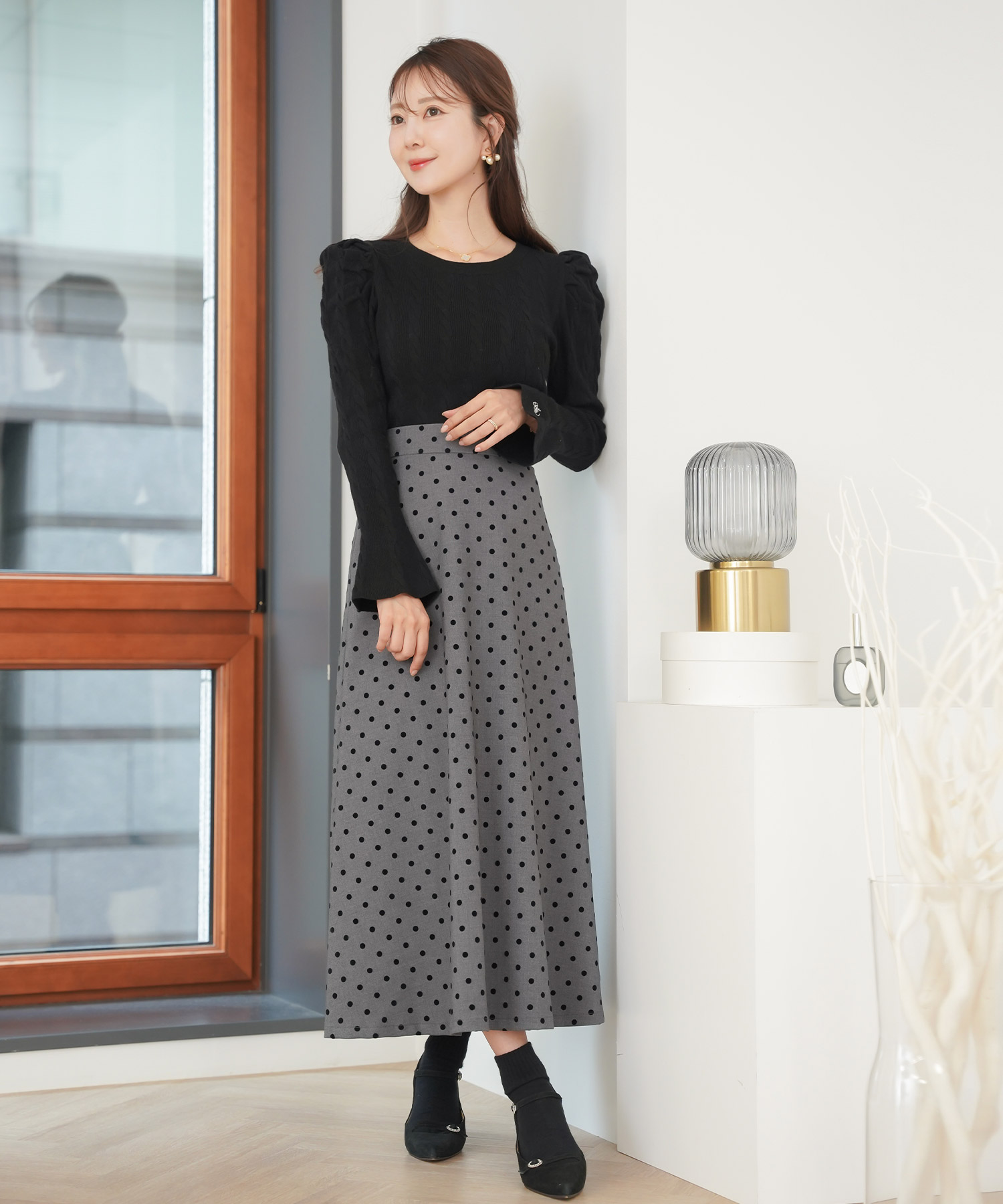 フロッキードット セミフレア スカート(le reve vaniller)¥9,900(税込)