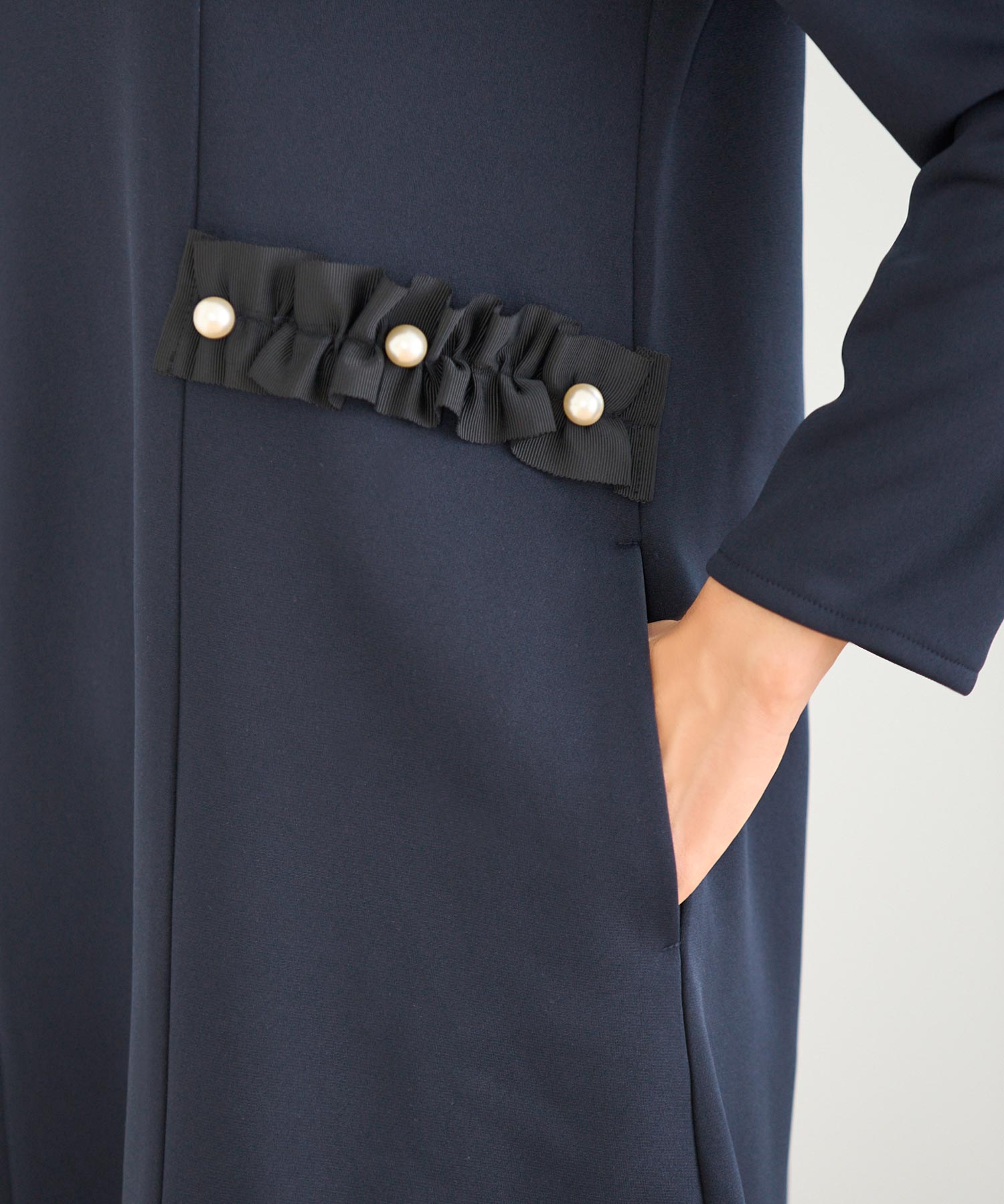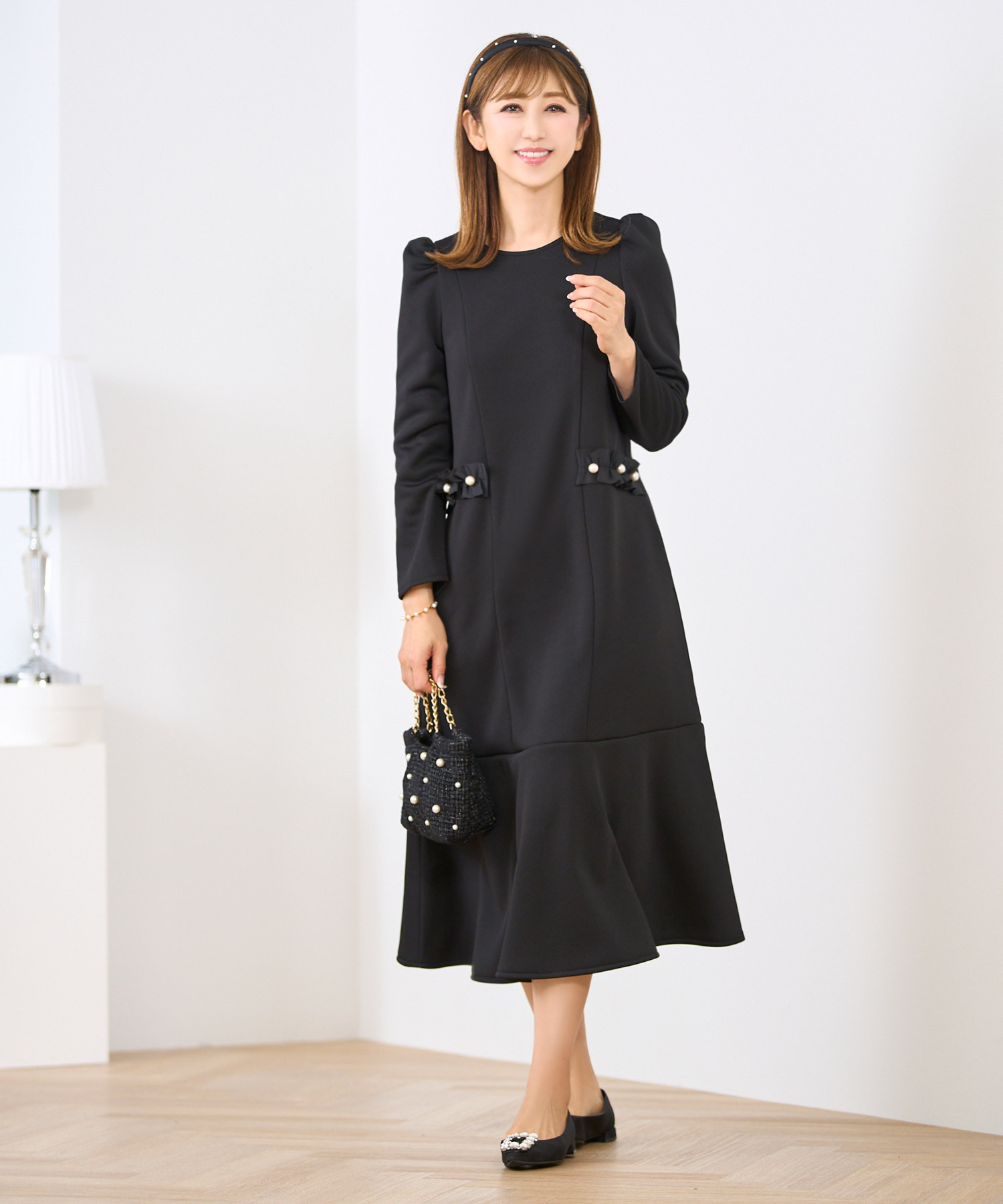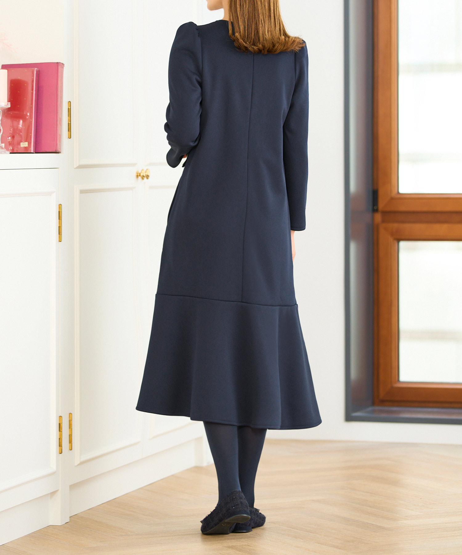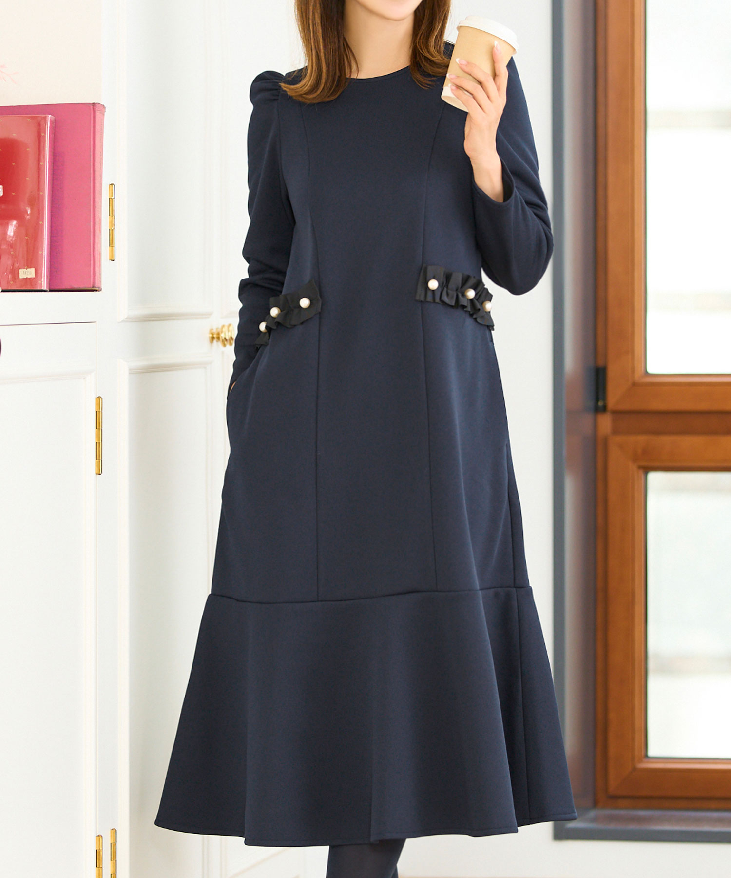 あったか裏起毛 フリルパール付き フレア ワンピース(Prima Scherrer)¥16,390(税込)