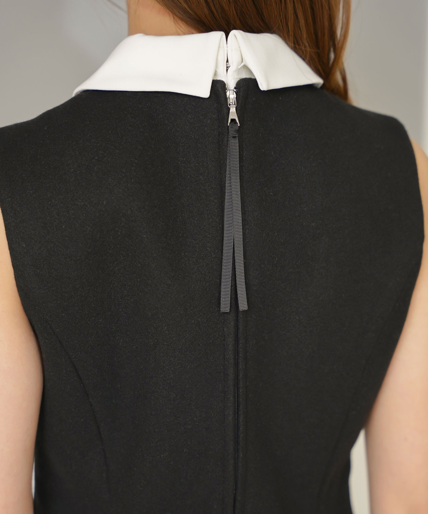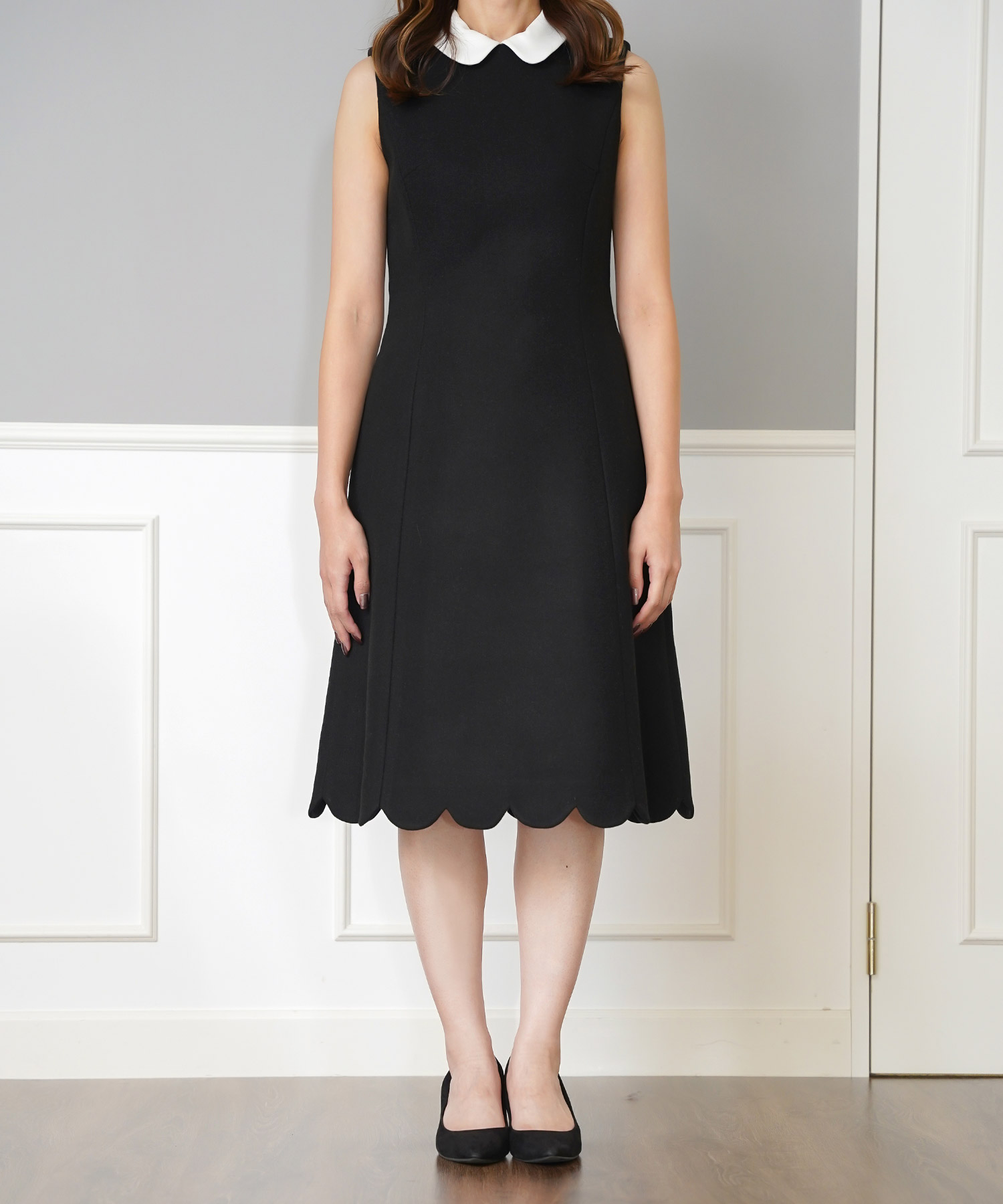 襟取外し可能 2WAY ウール調 スカラップ ワンピース(Prima Scherrer)¥12,980(税込)