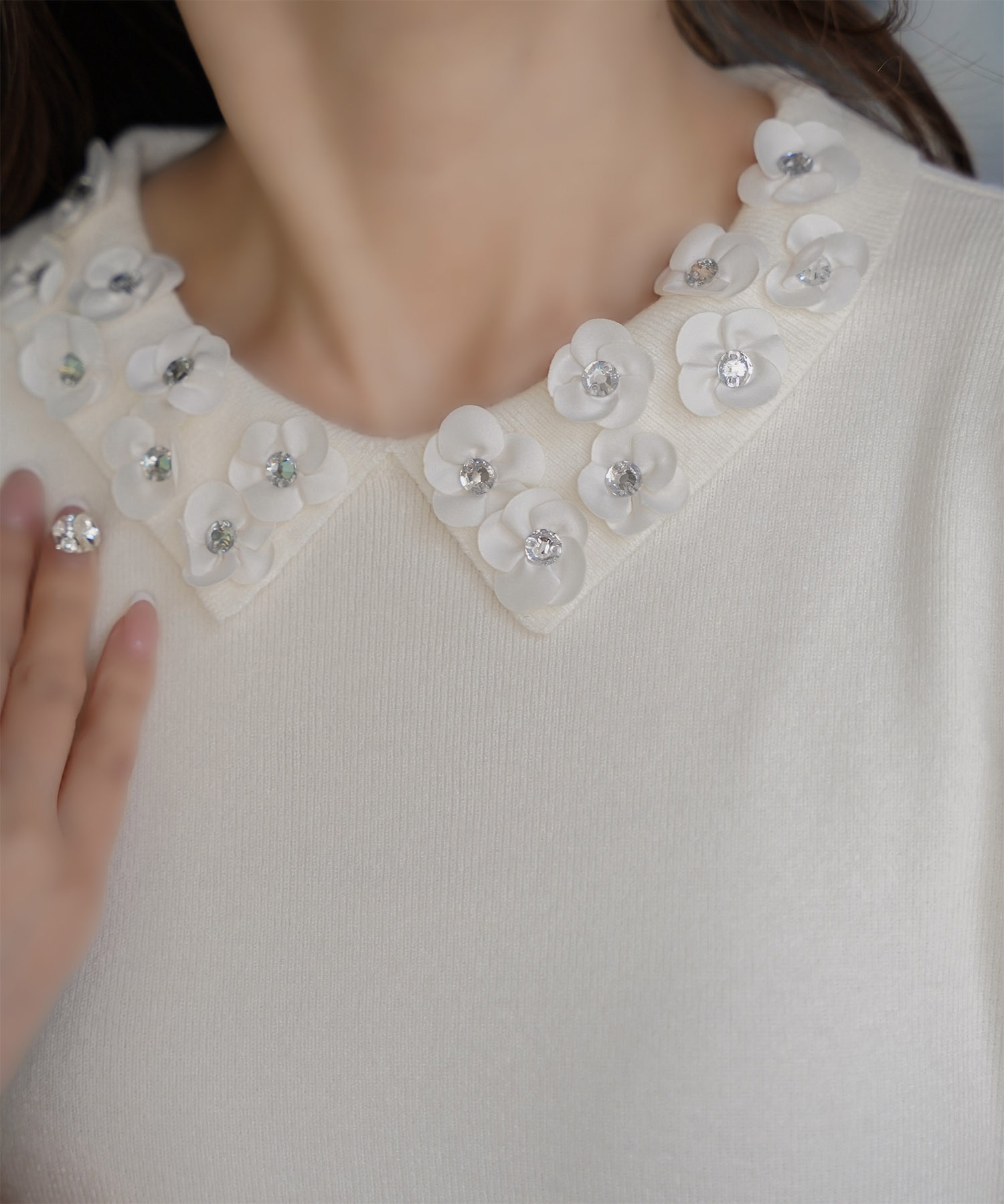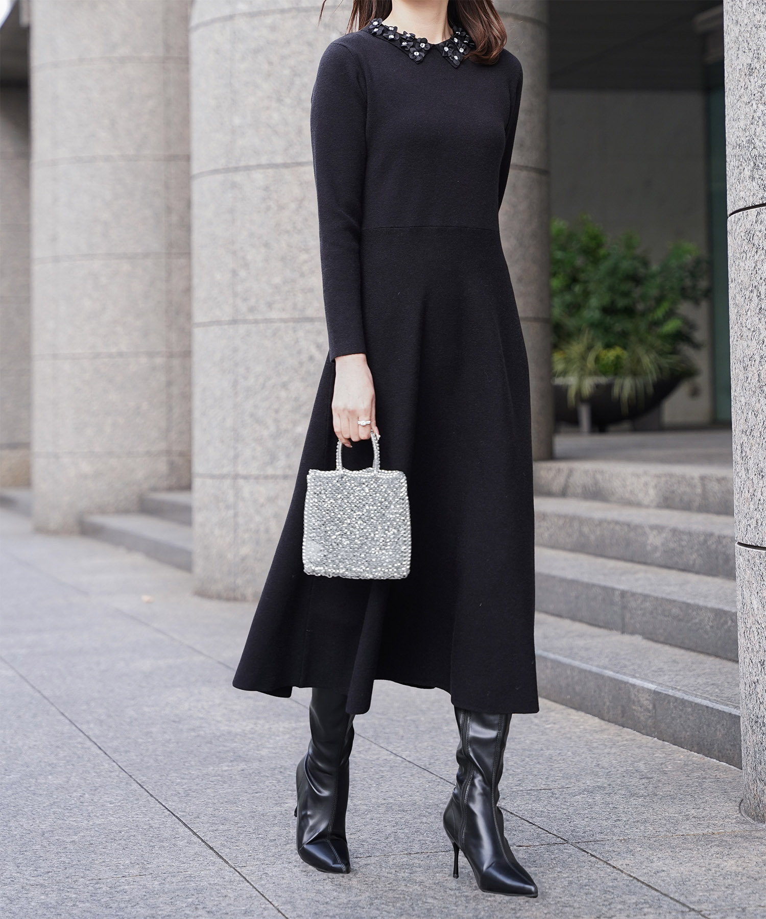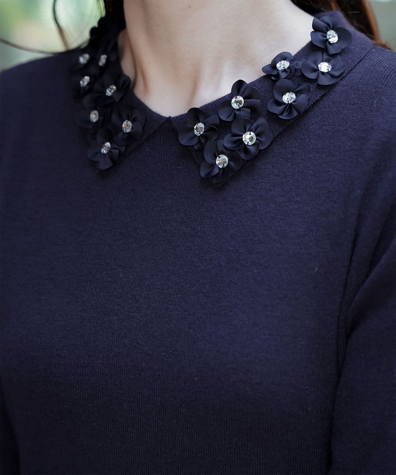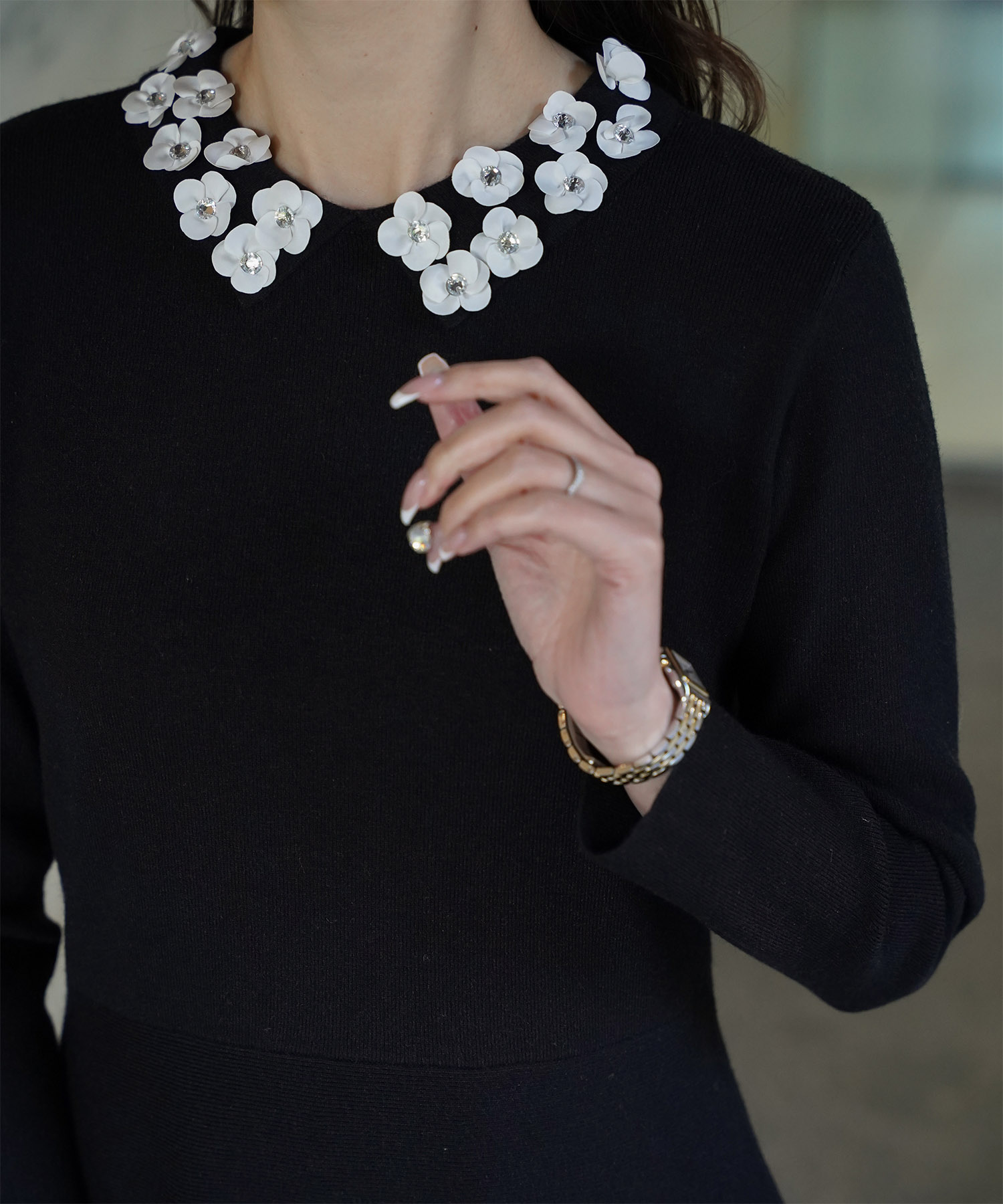 フラワーモチーフ 襟付き ニット ワンピース(HUIT)¥15,180(税込)