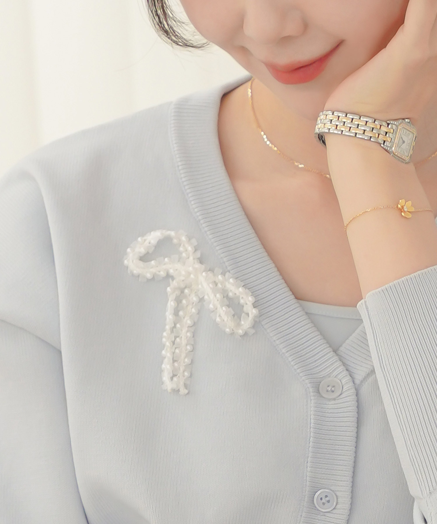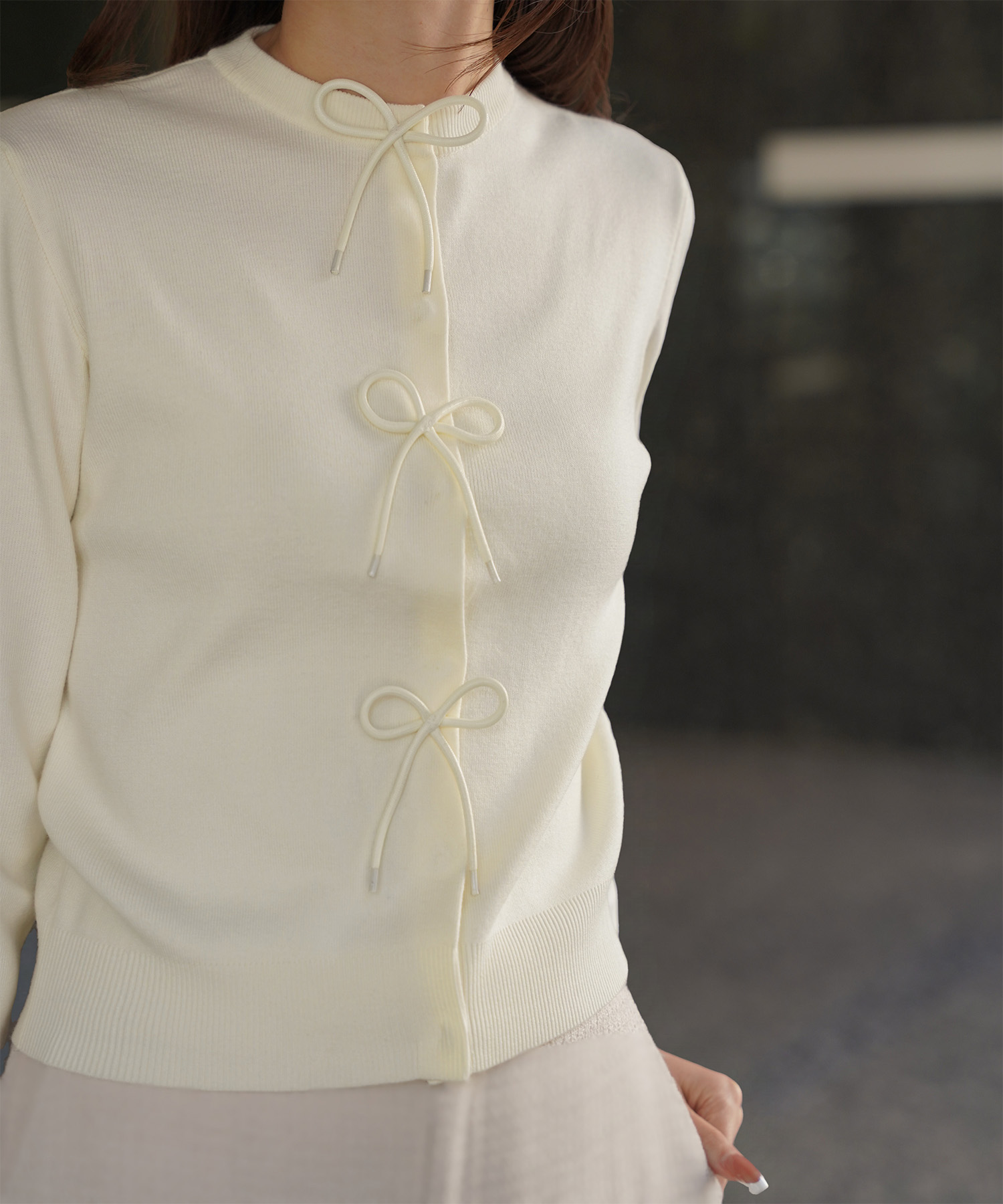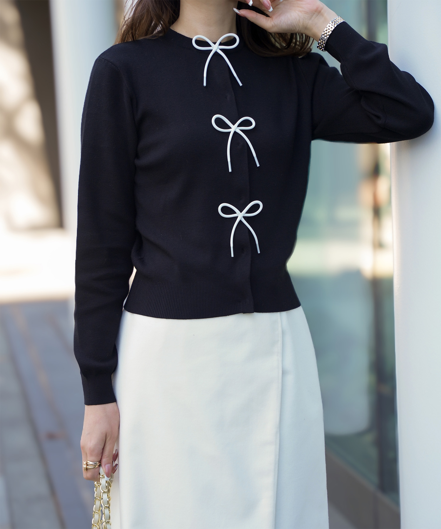 華奢なリボンが彩る、シンプル&上品なニットカーディガン