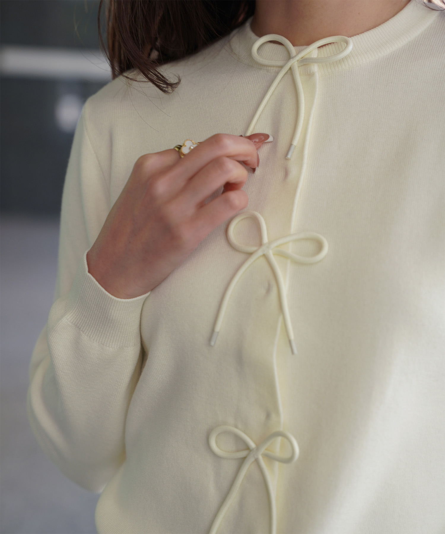 フロントリボン ニット カーディガン(HUIT)¥9,790(税込)