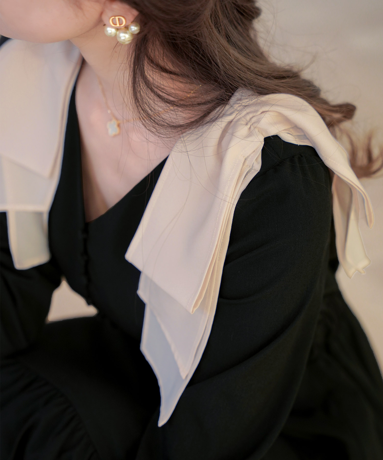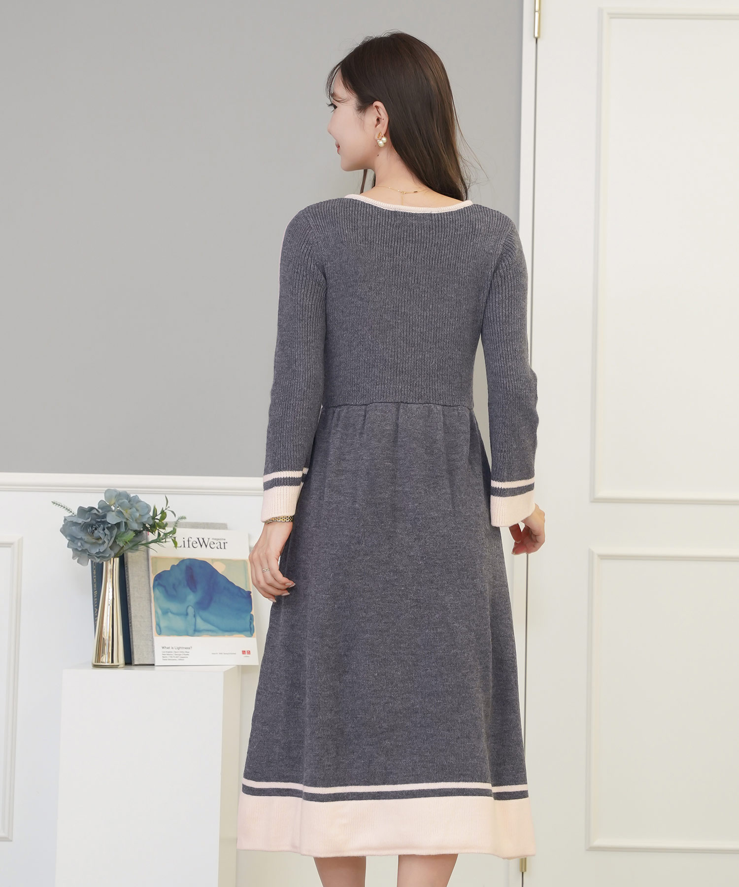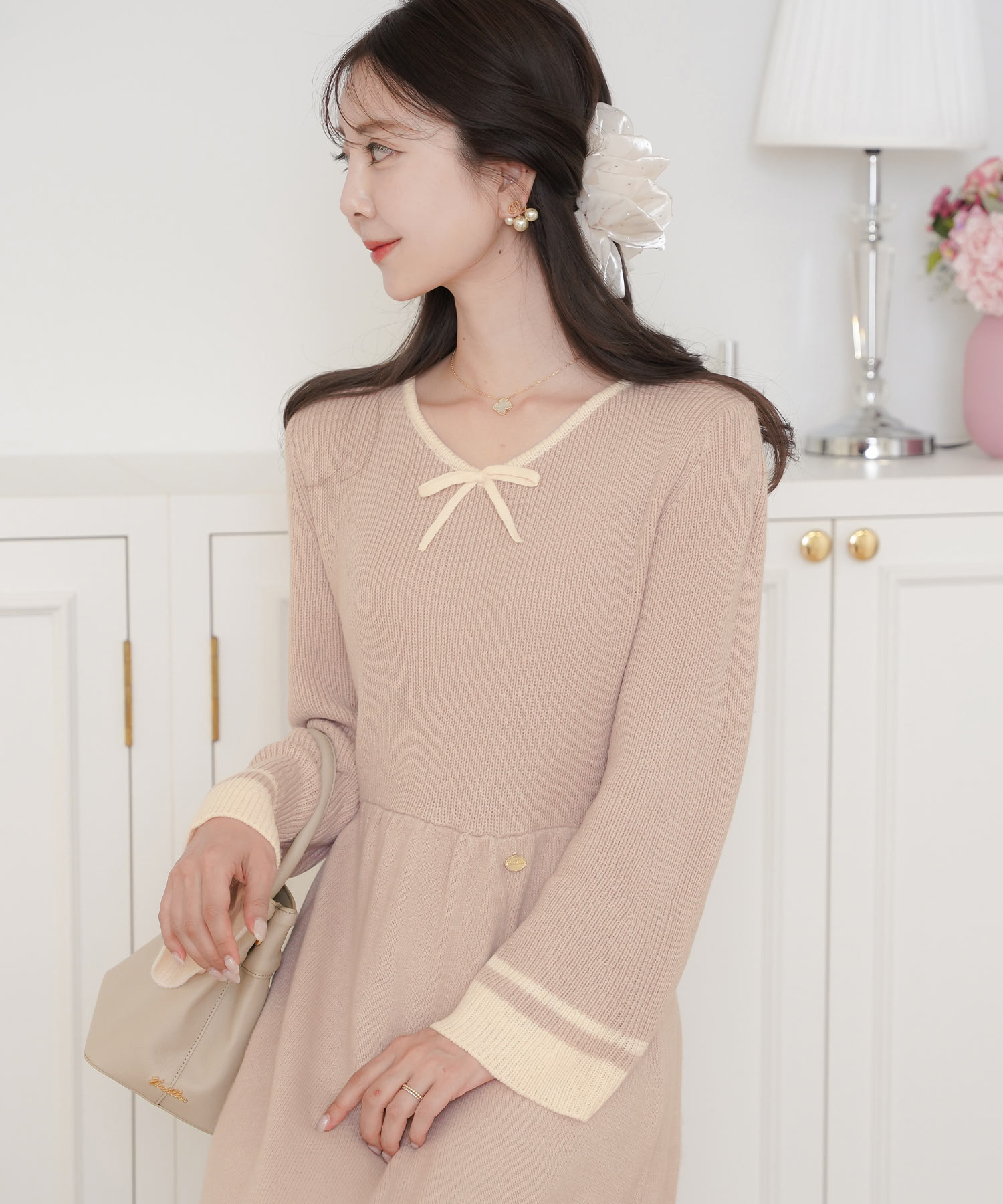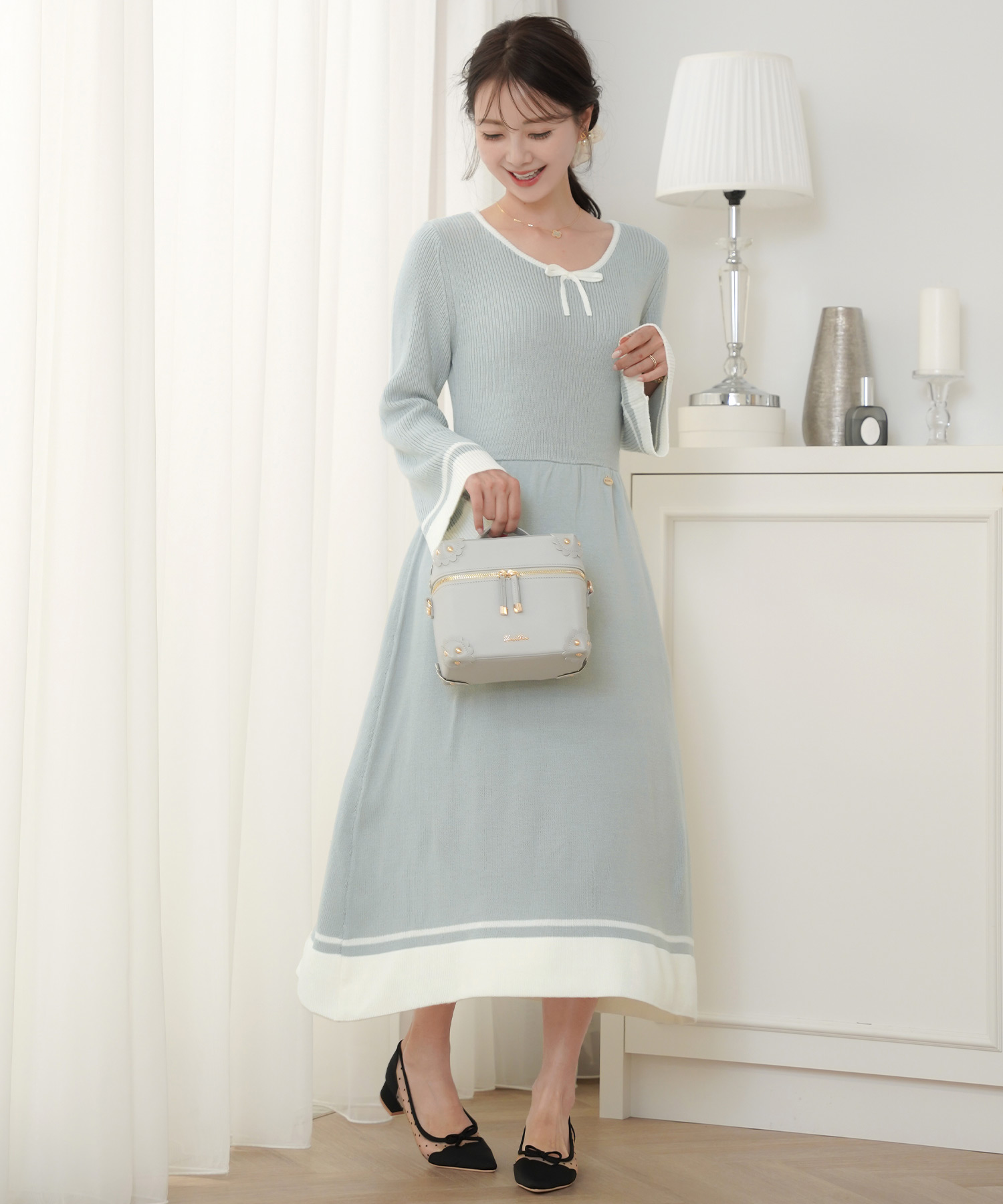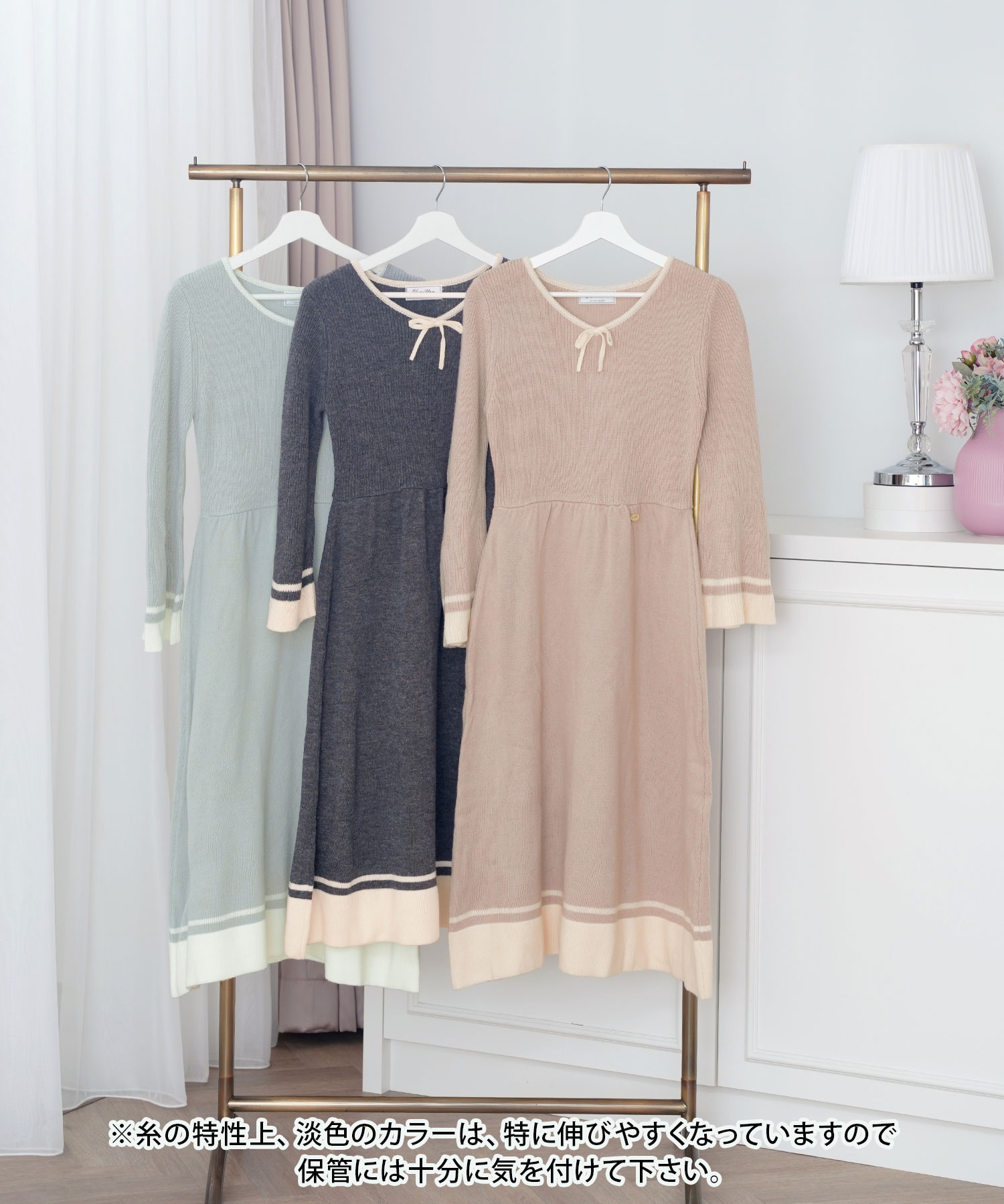 バイカラー リボンニット ワンピース(le reve vaniller)¥9,900(税込)