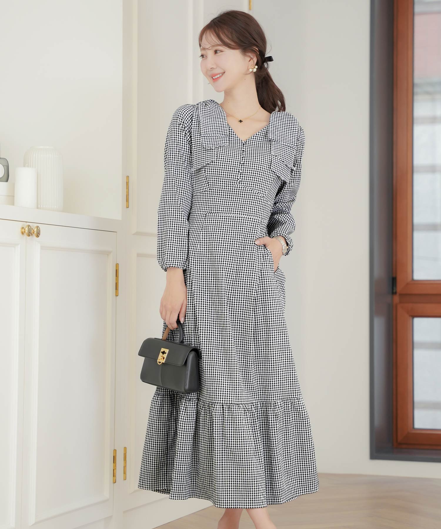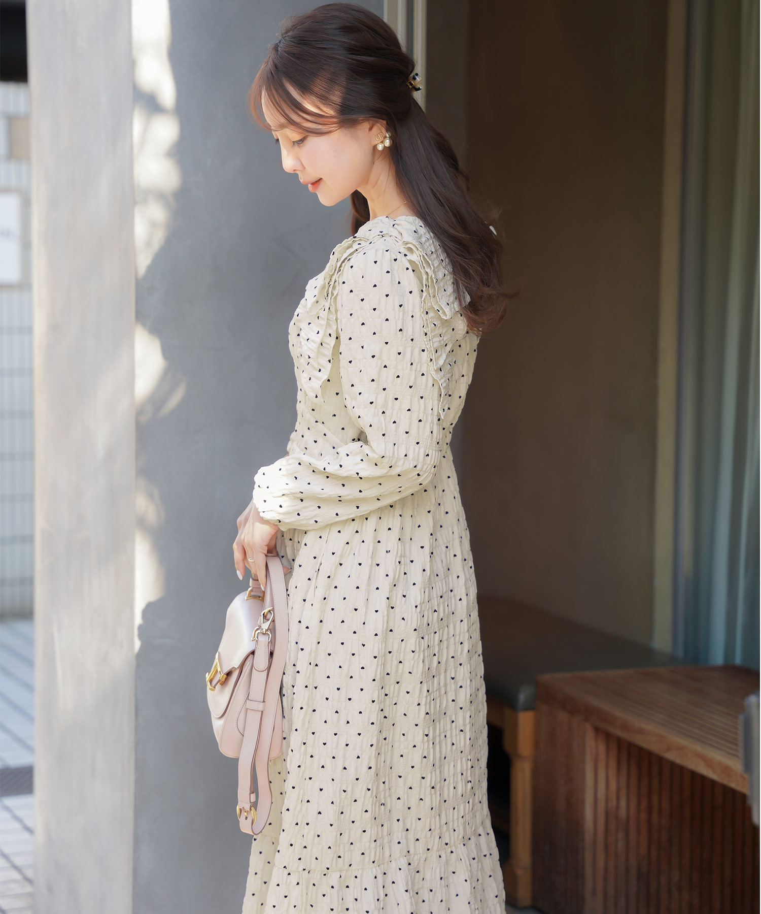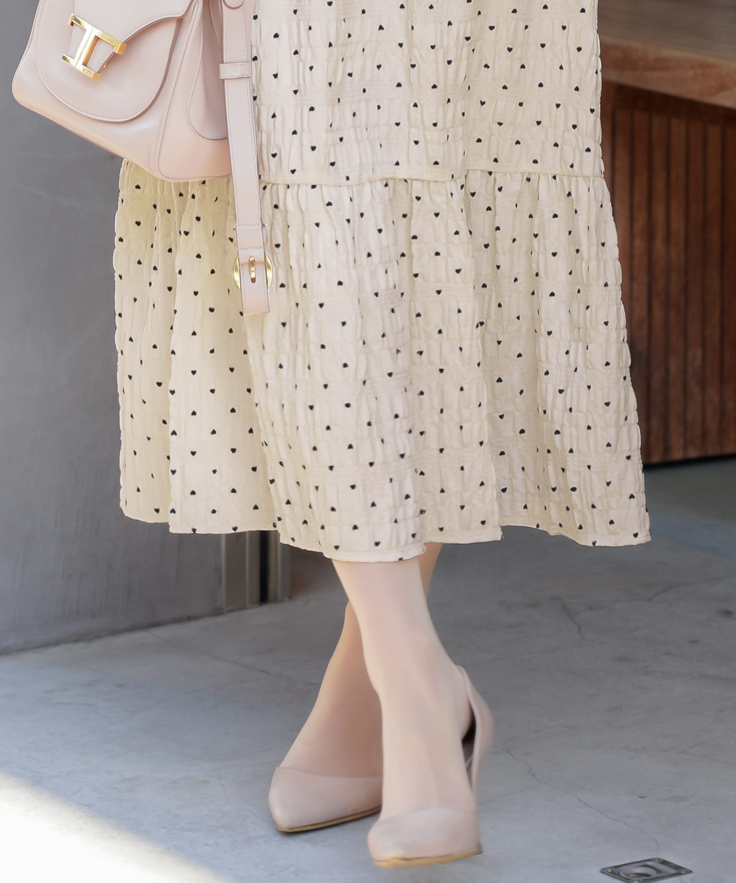 大人の女性も取り入れやすい、肩のリボンがアクセントになった甘すぎないワンピース。柄はハート・ギンガム・無地の3種類から選べるので、その日の気分やシーンに合わせて楽しめます。デートや女子会などのお出かけコーデにぴったりな、春に映える一着です。