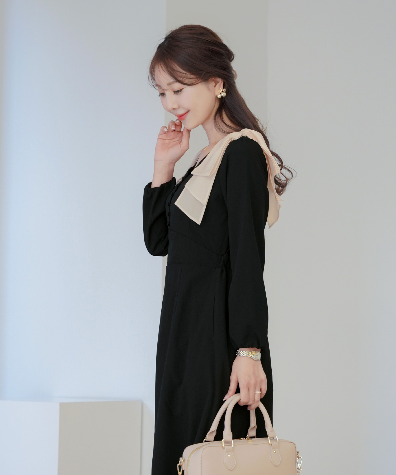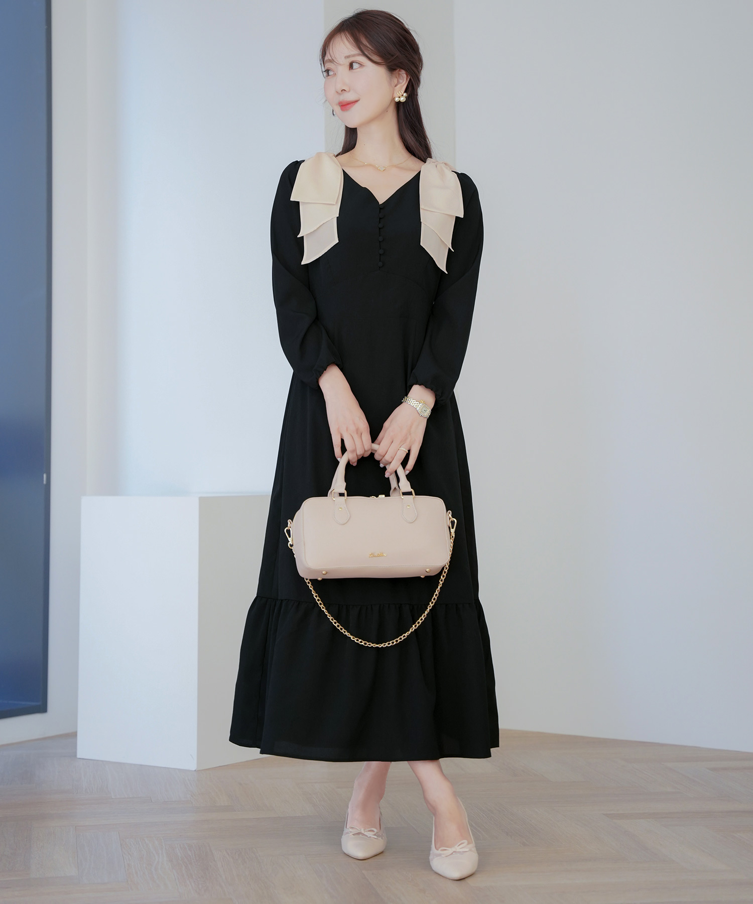 肩リボンがさりげない甘さを演出。大人可愛いバレエコアワンピース