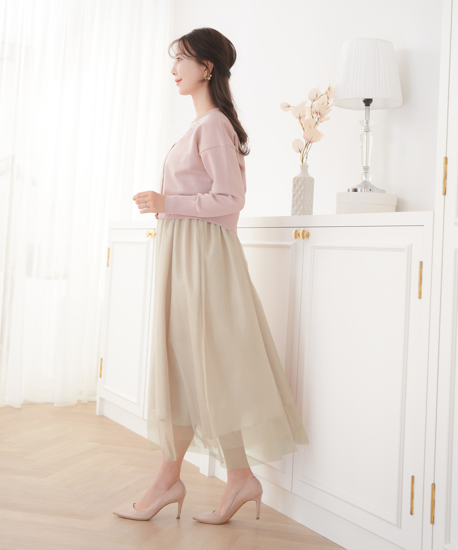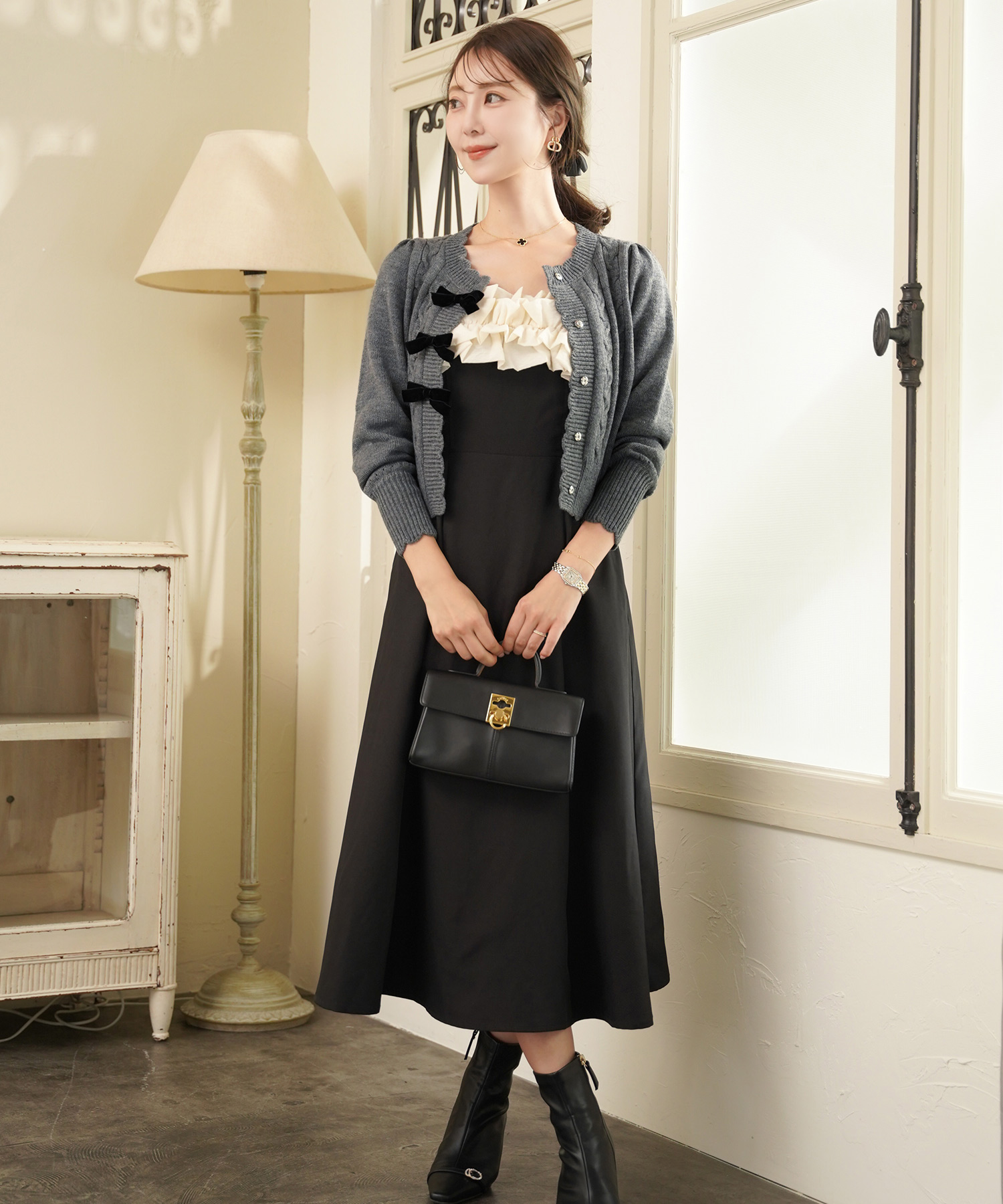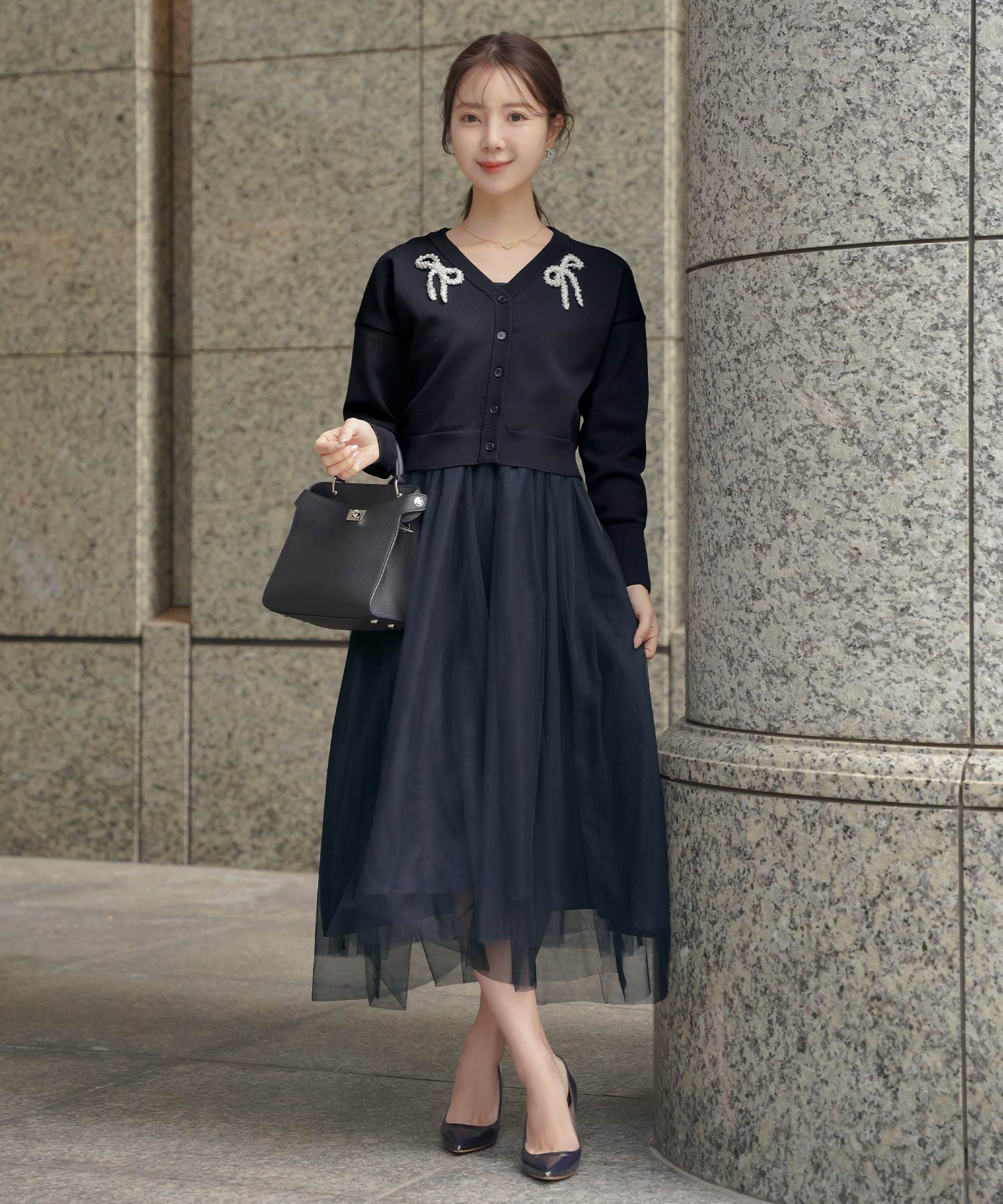 パールリボン カーディガン チュール インナーワンピース セット(le reve vaniller)¥14,300(税込)