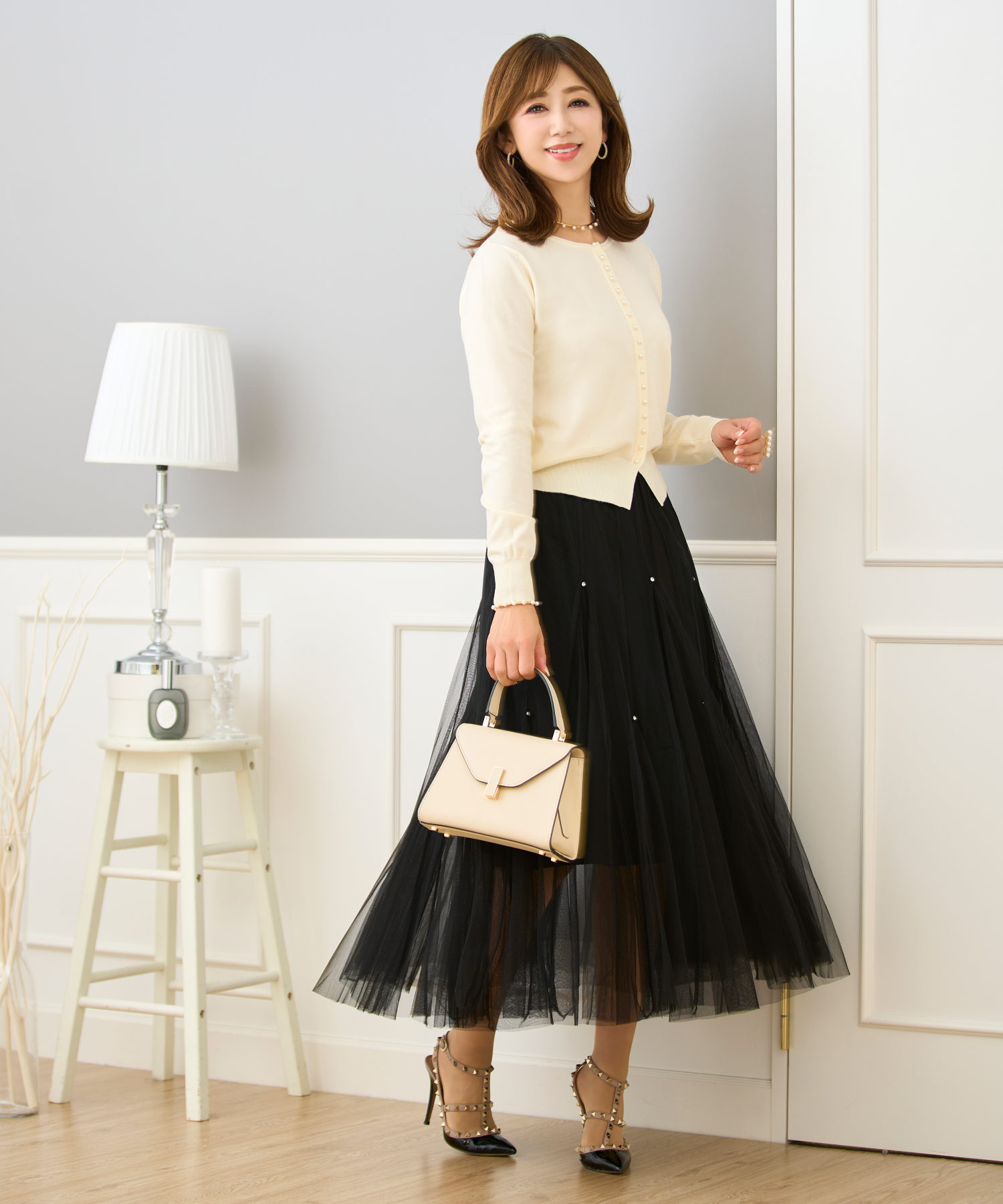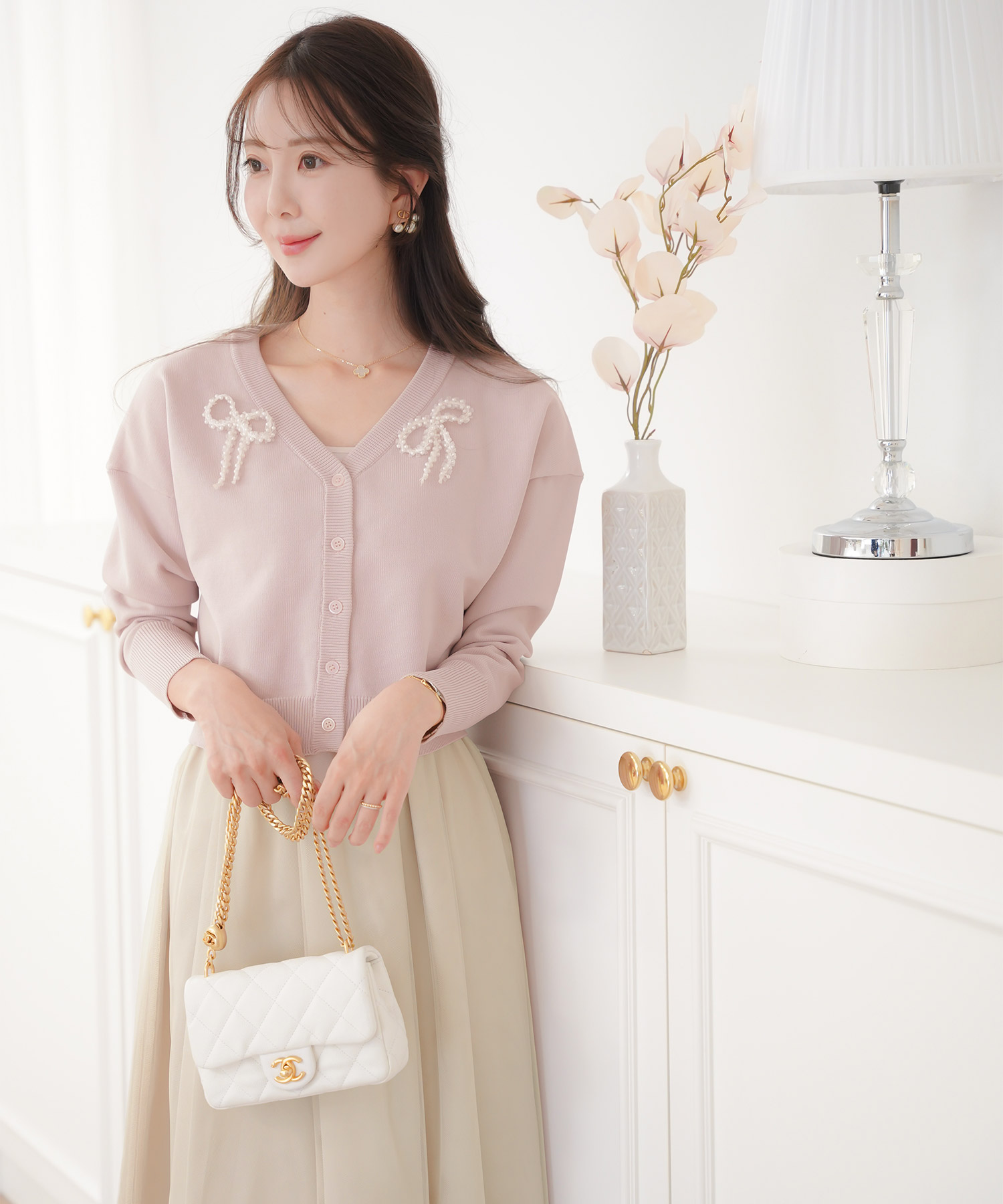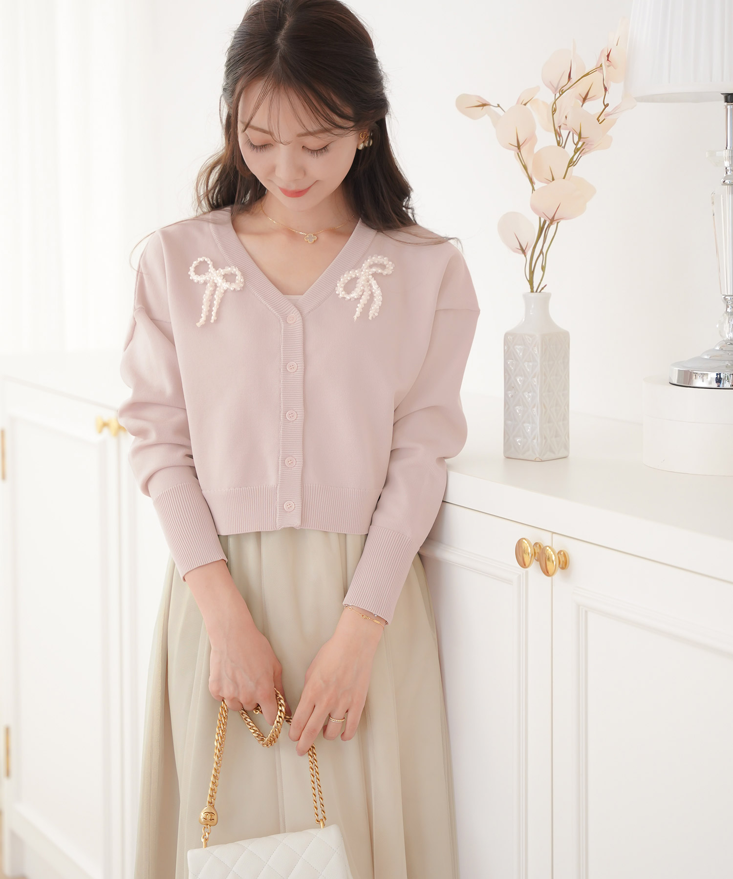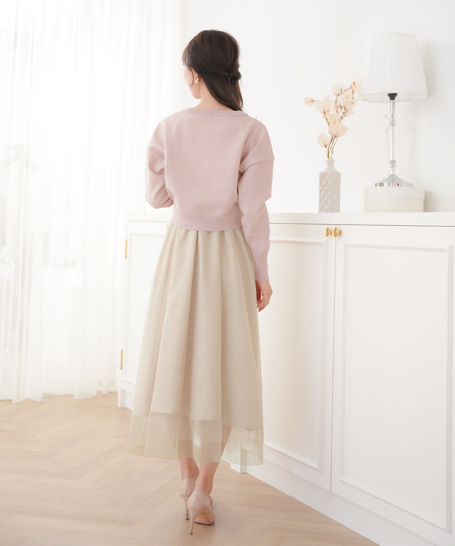 パールリボン カーディガン チュール インナーワンピース セット(le reve vaniller)¥14,300(税込)