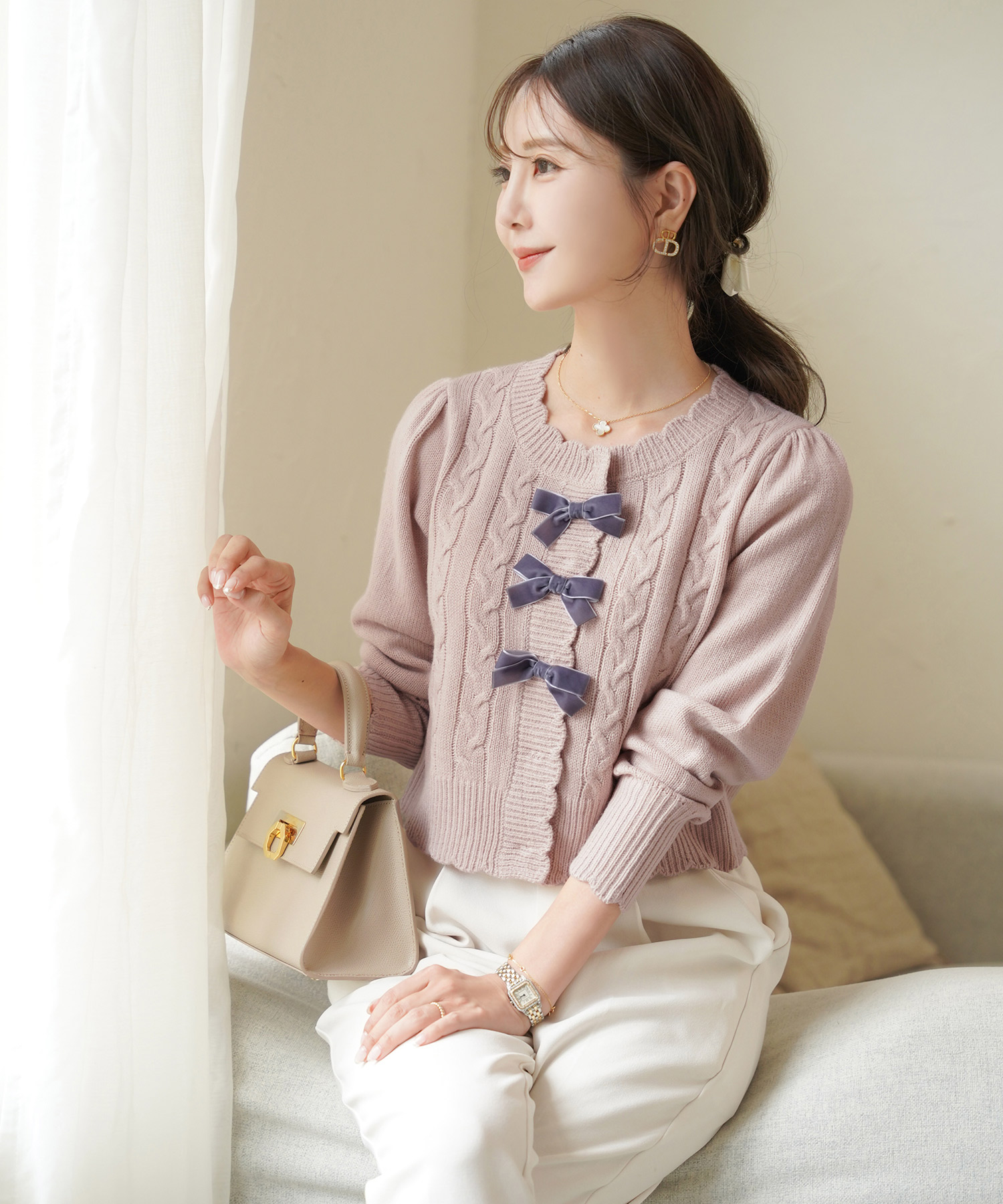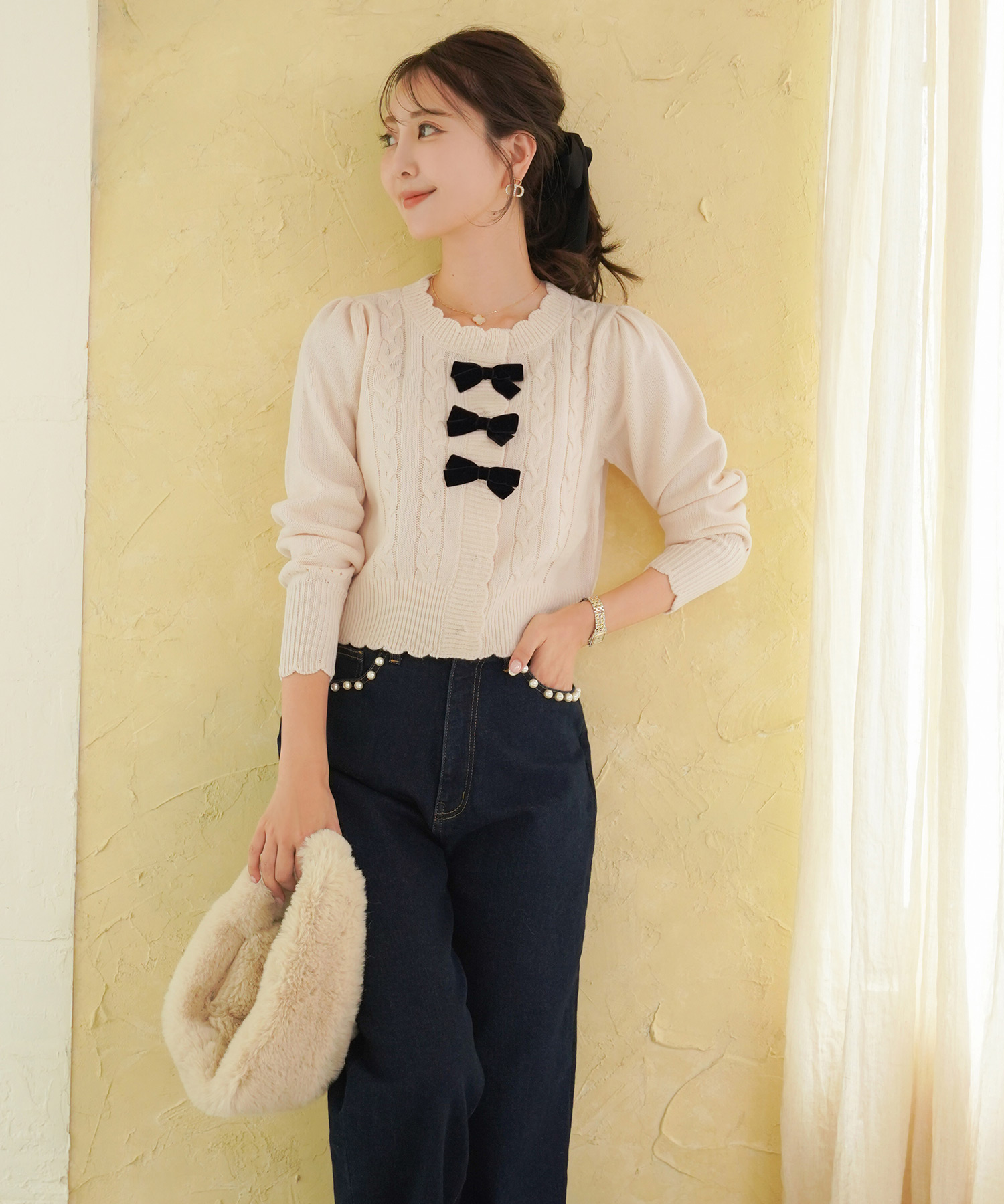 リボン ケーブル カーディガン(le reve vaniller)¥9,900(税込)
