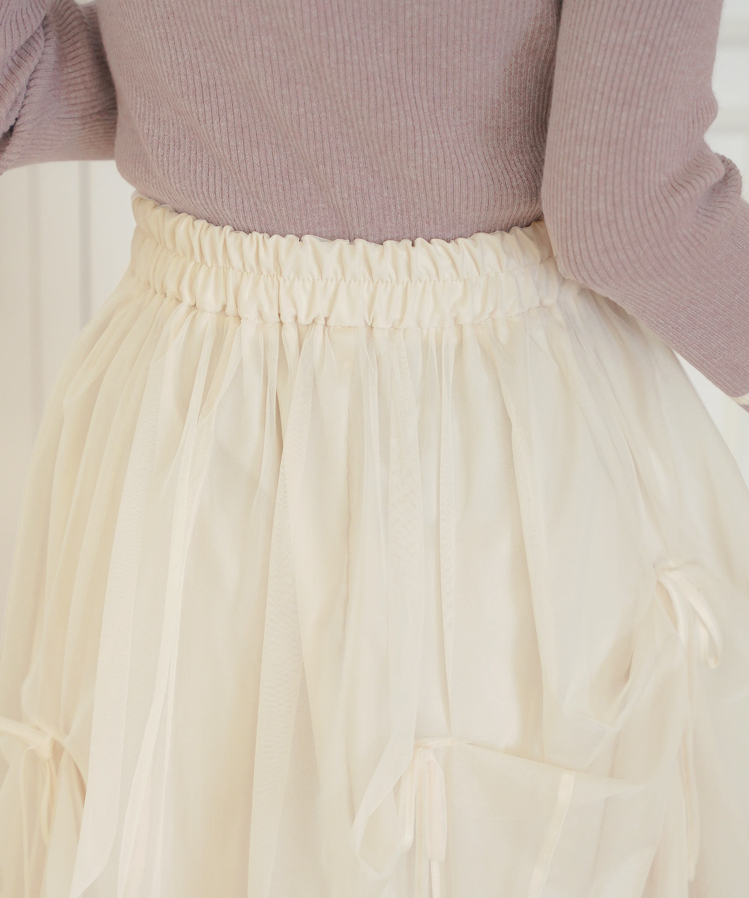 ランダム リボン チュール タック スカート(le reve vaniller)¥6,930(税込)