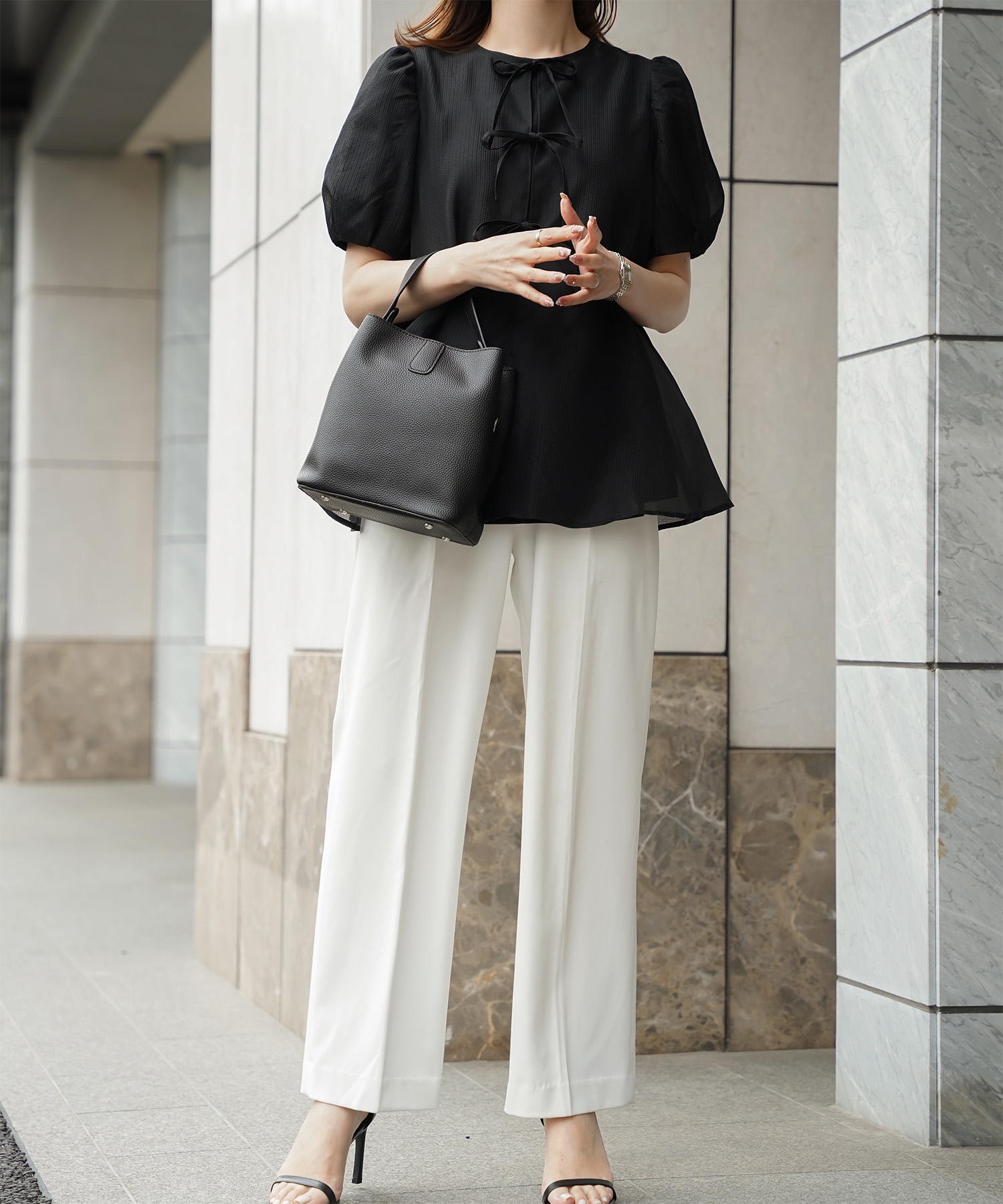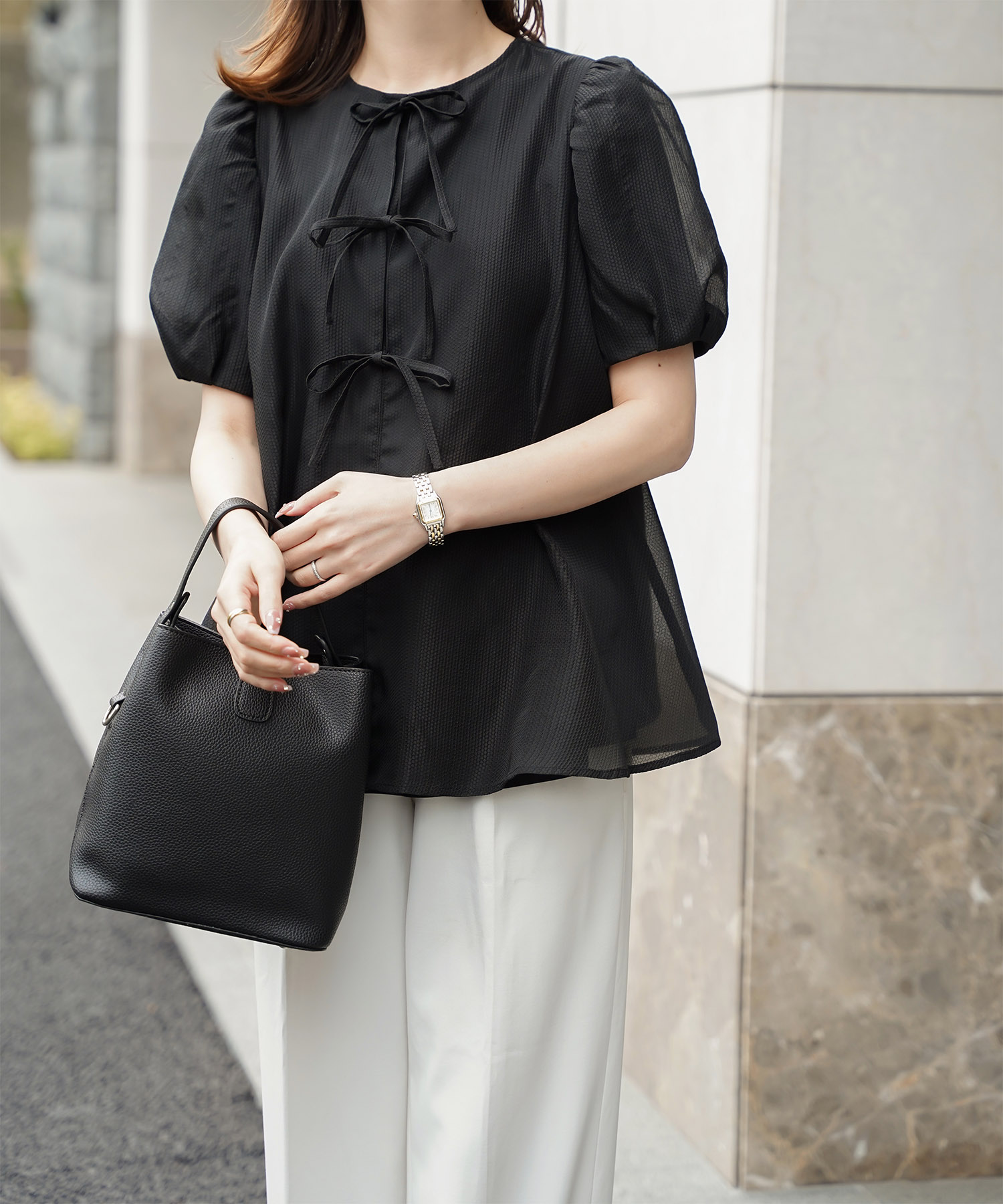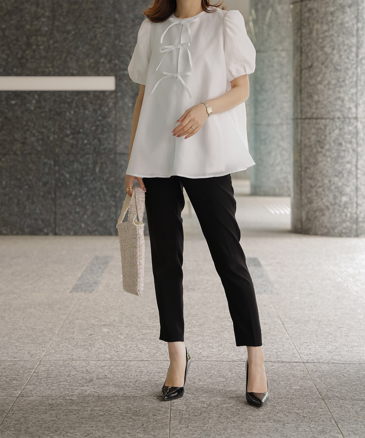 きちんと見えて、ほんのり甘い。上品リボンブラウス