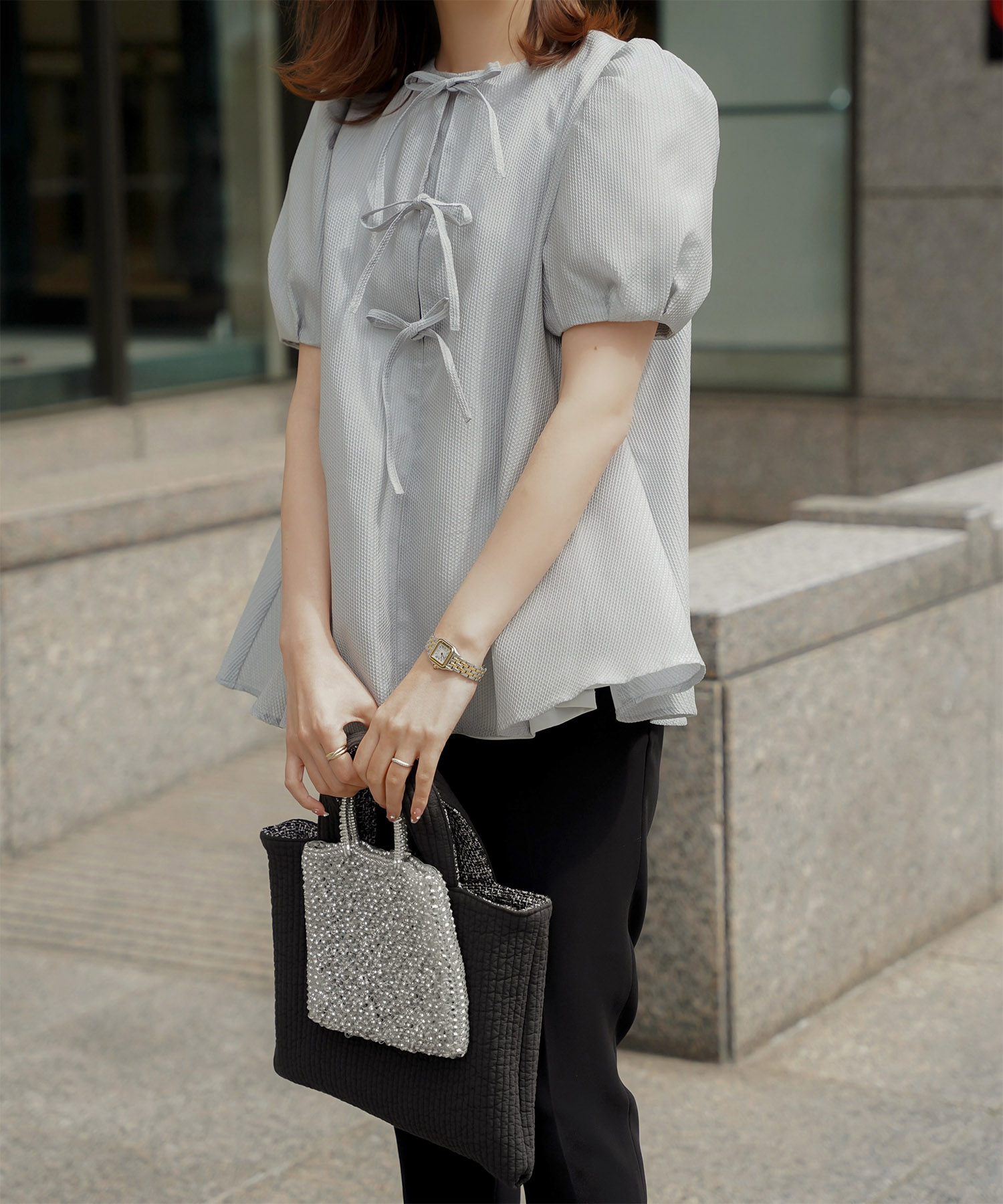 フロントリボン ジャガード ブラウス(HUIT bouquet)¥9,790(税込)
