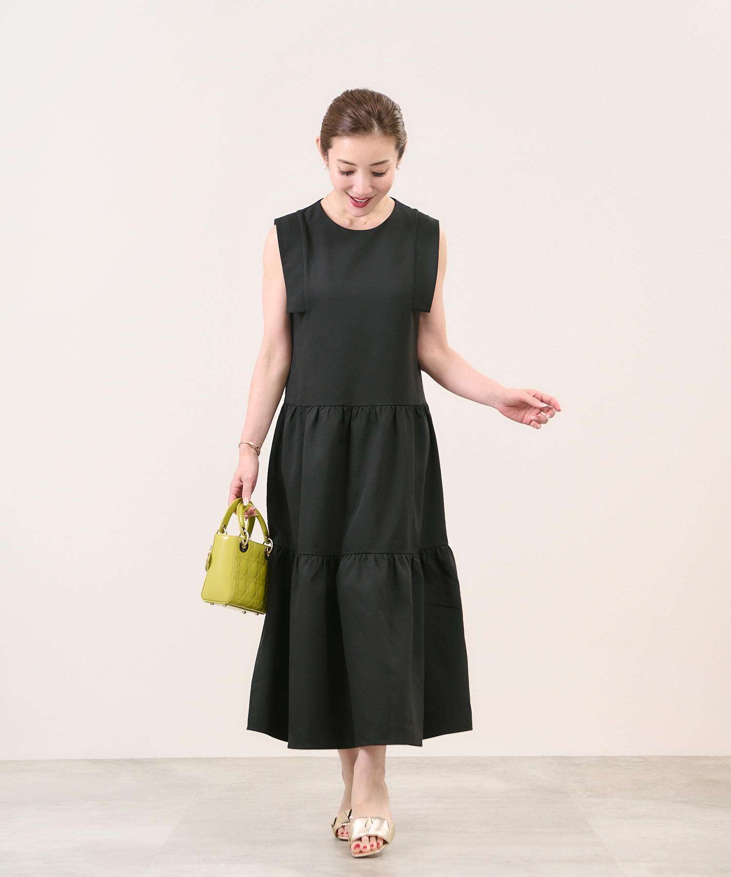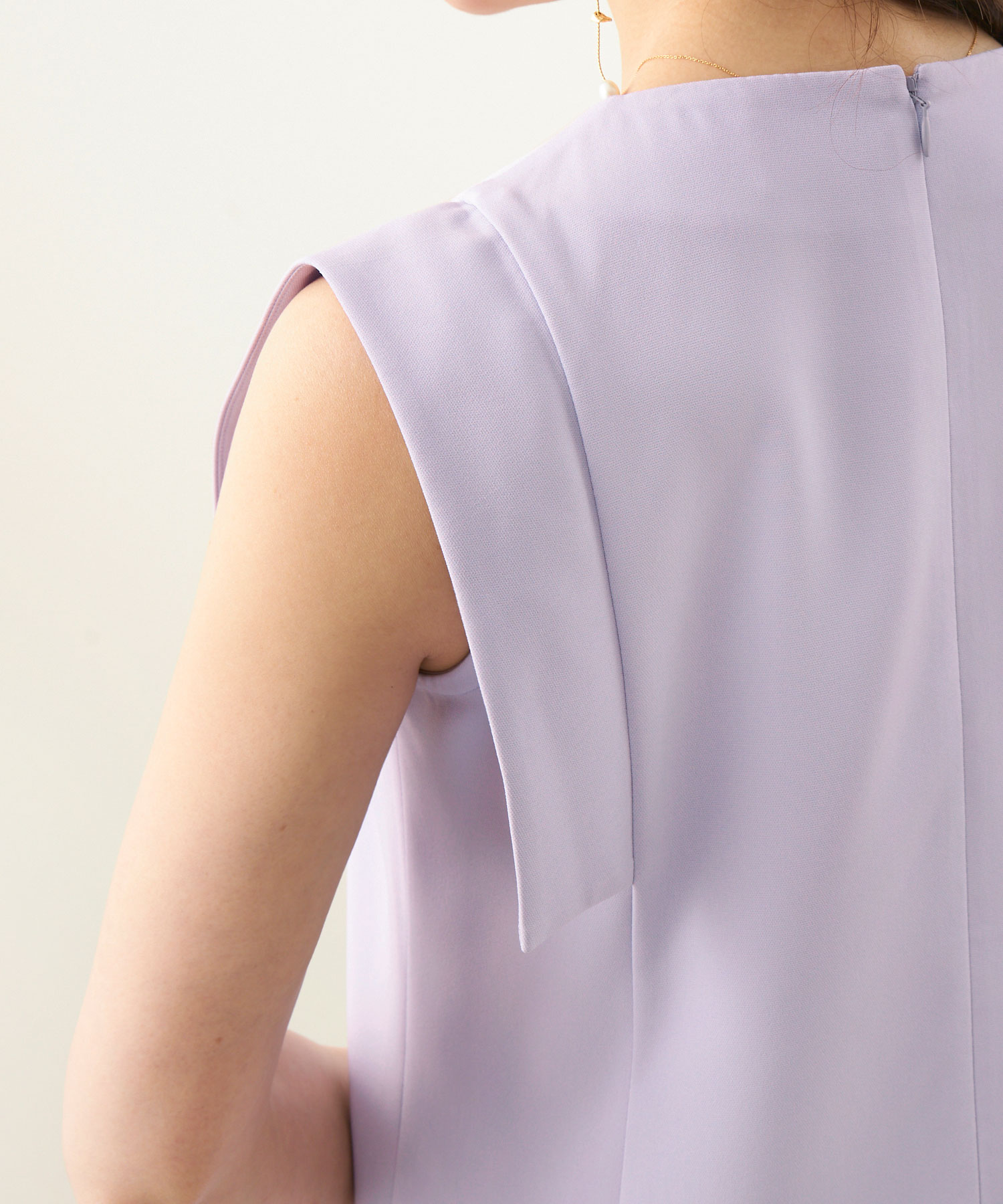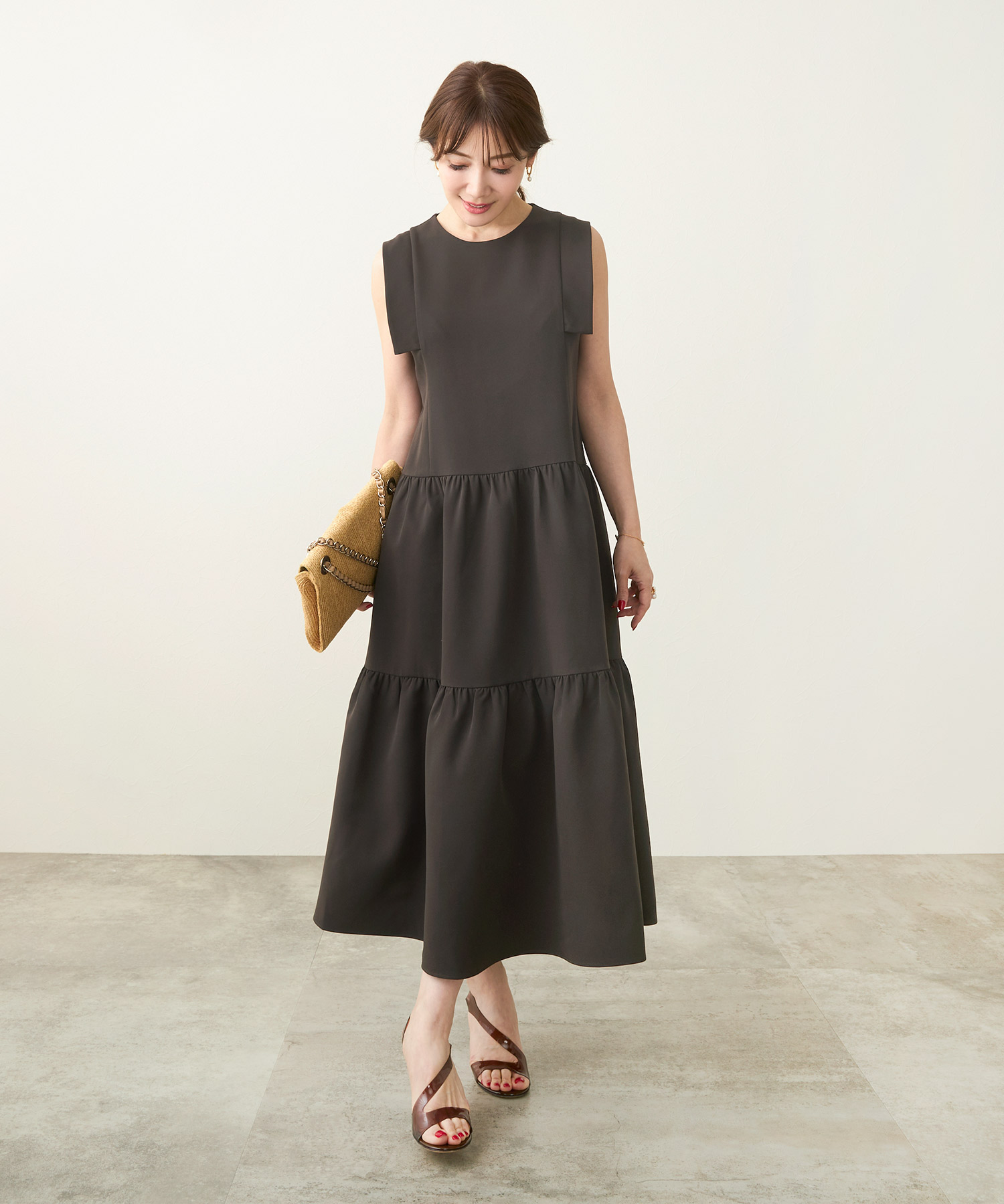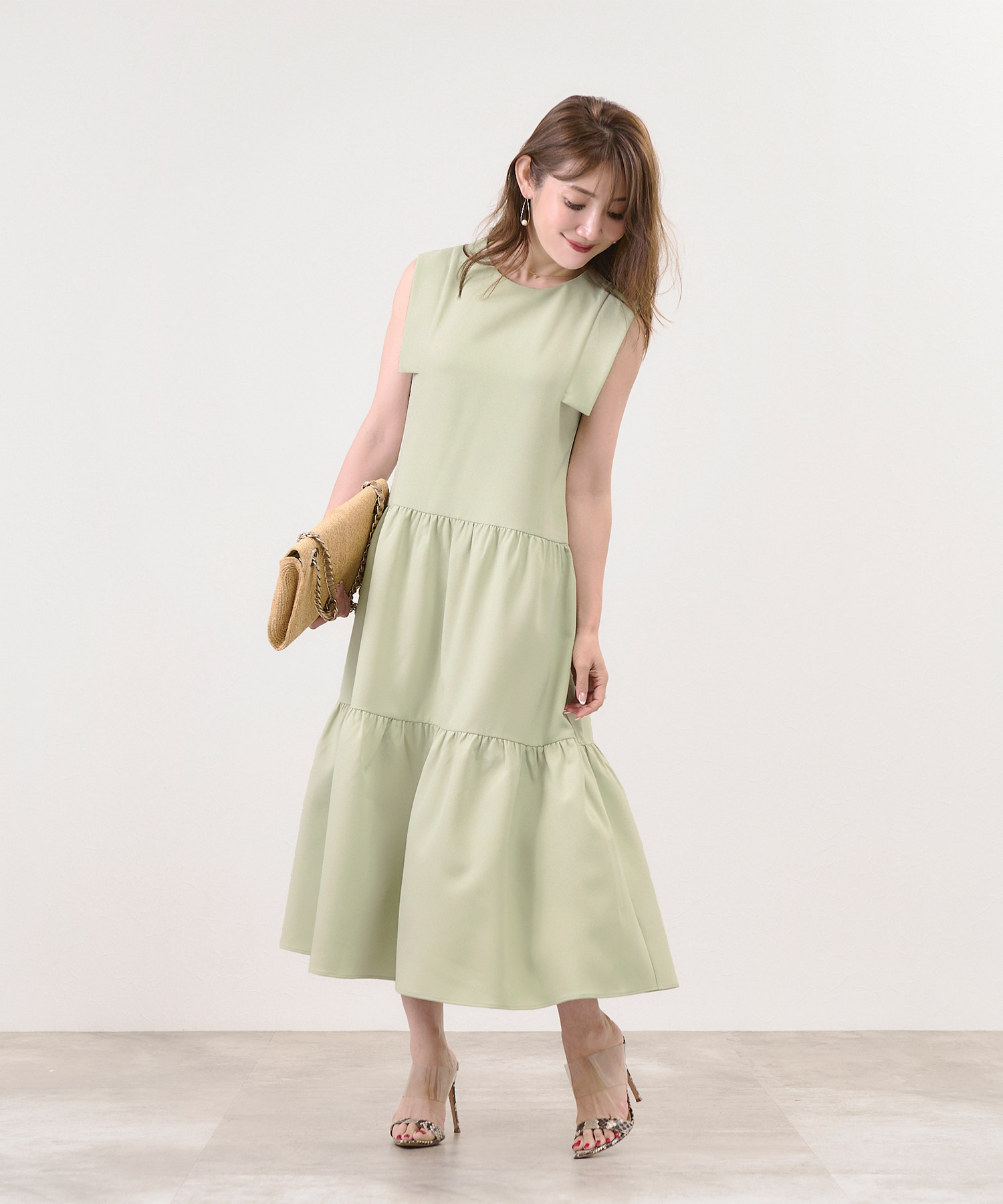 パネル切替えと二段ティアードで、シルエットに動きと奥行きが生まれるデザイン。ブルベ夏が得意なラベンダーやネイビーに加え、アクセントになるピスタチオも展開。軽やかで快適な着心地なので、長時間のイベントにも安心です。