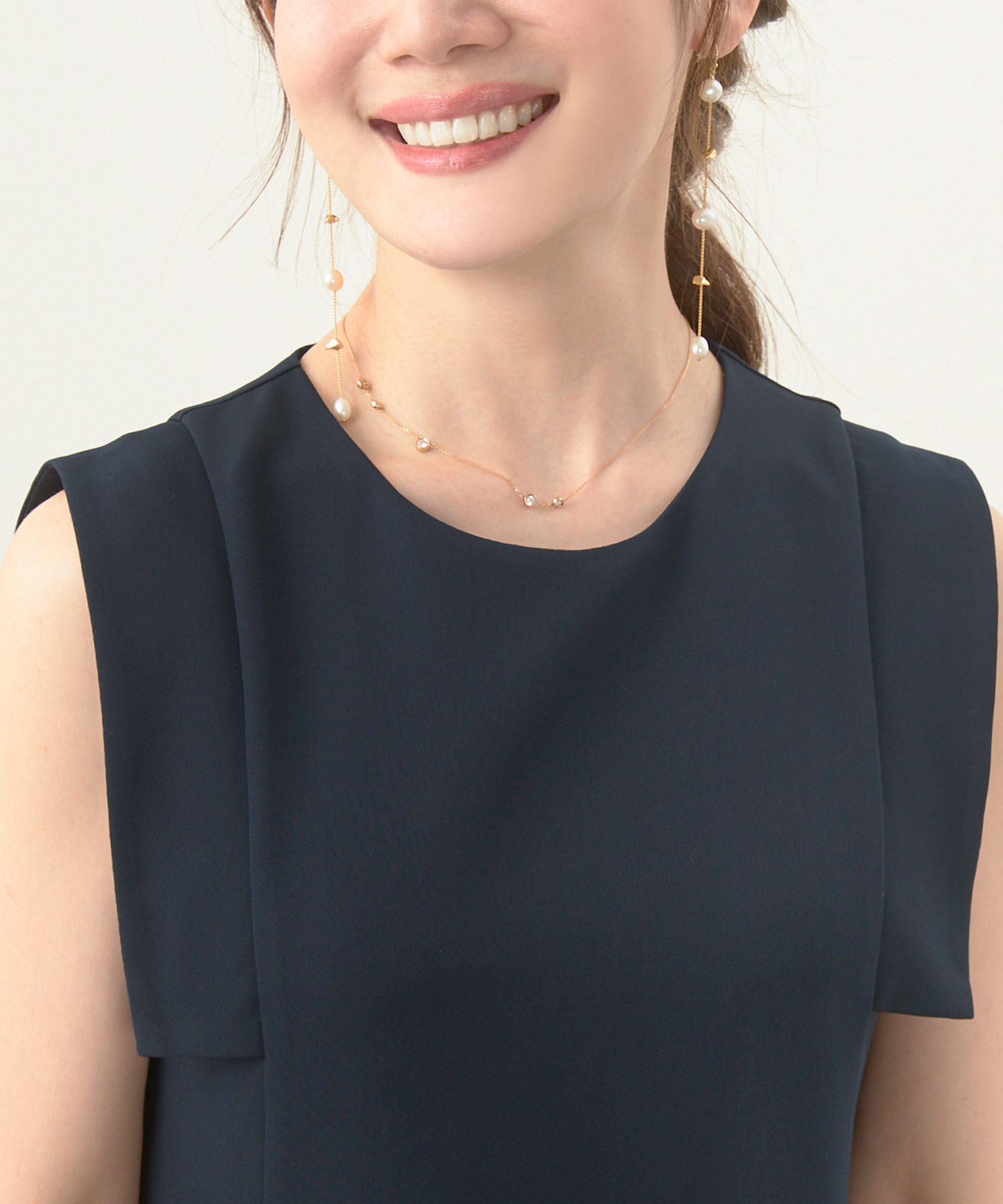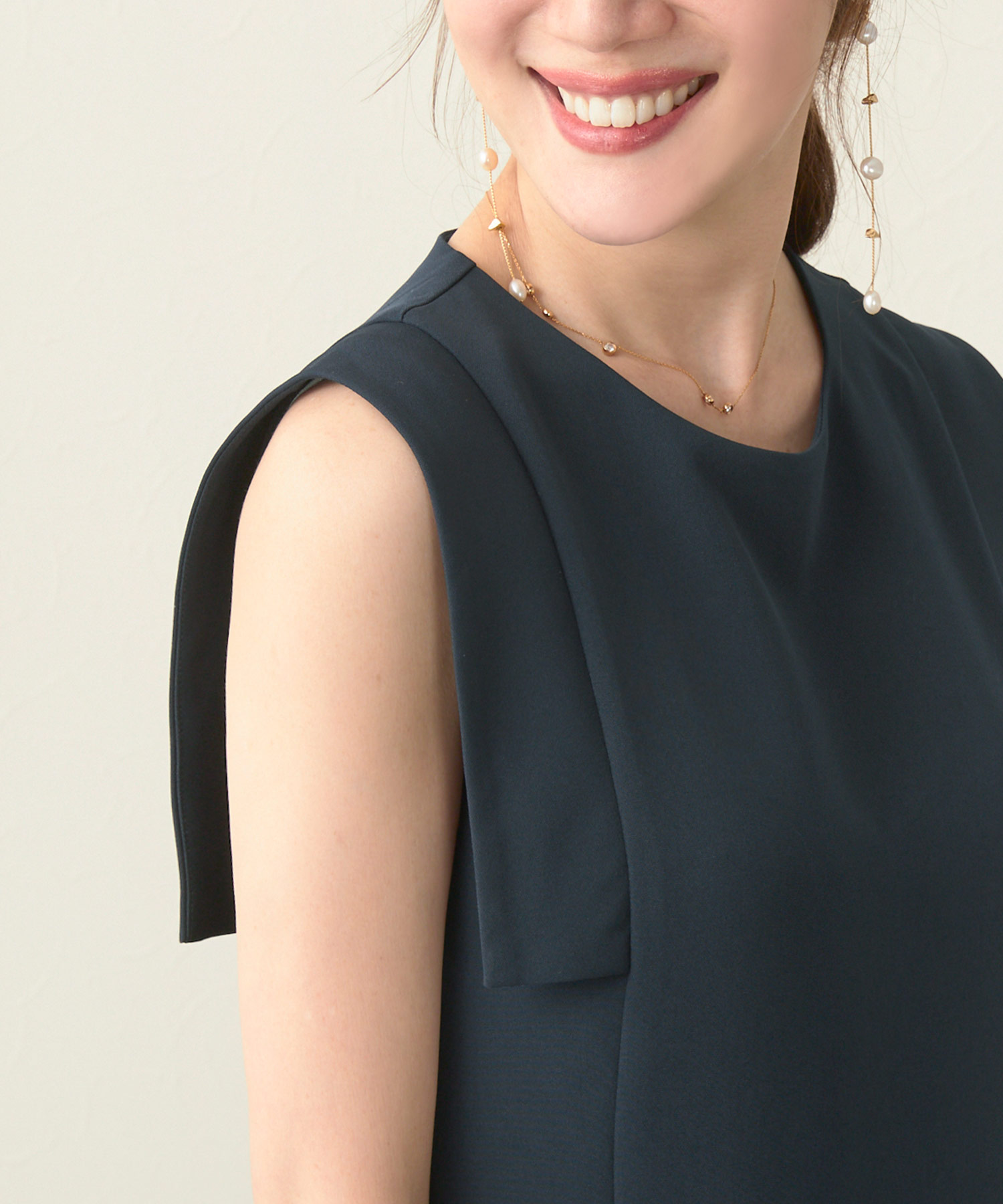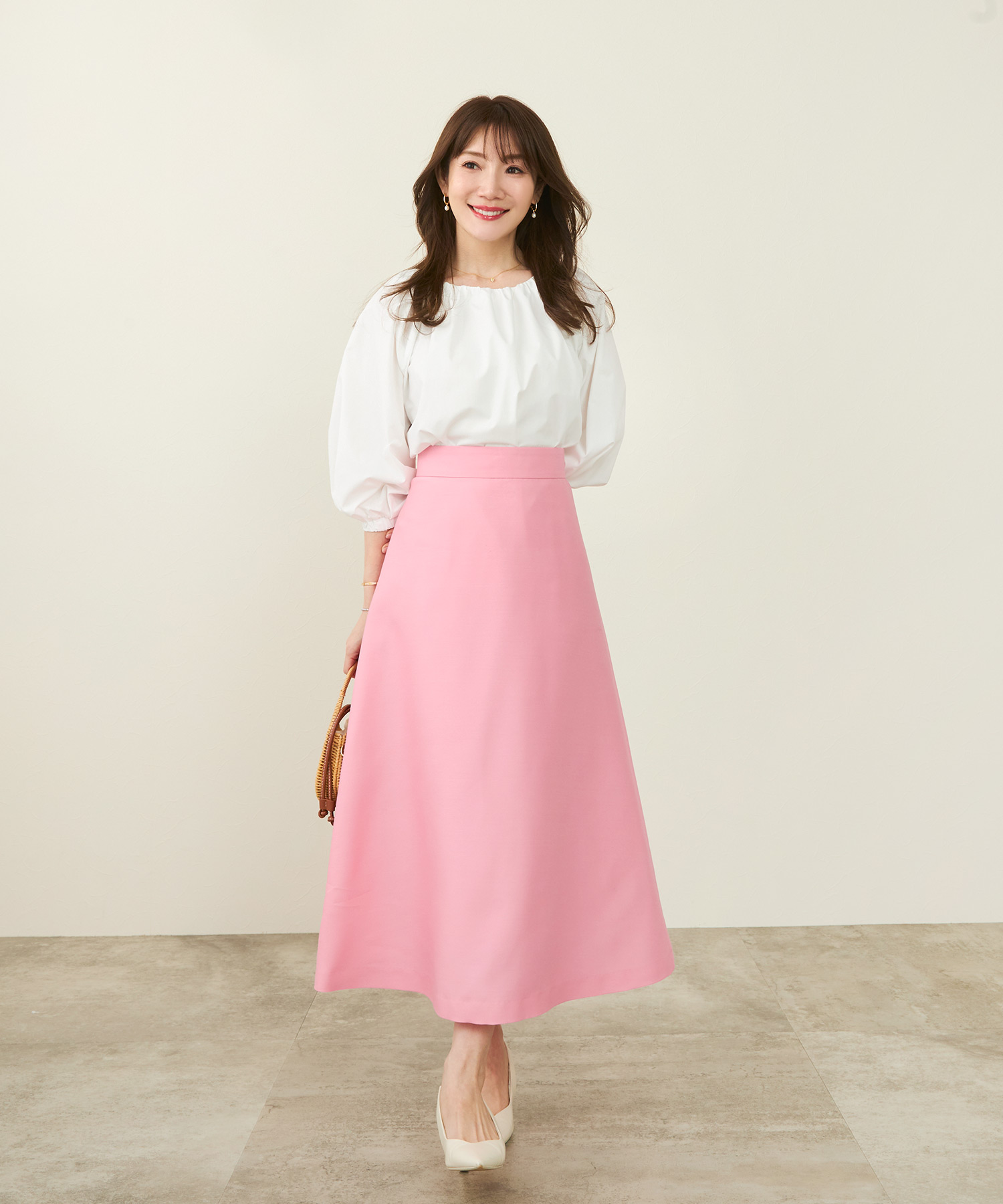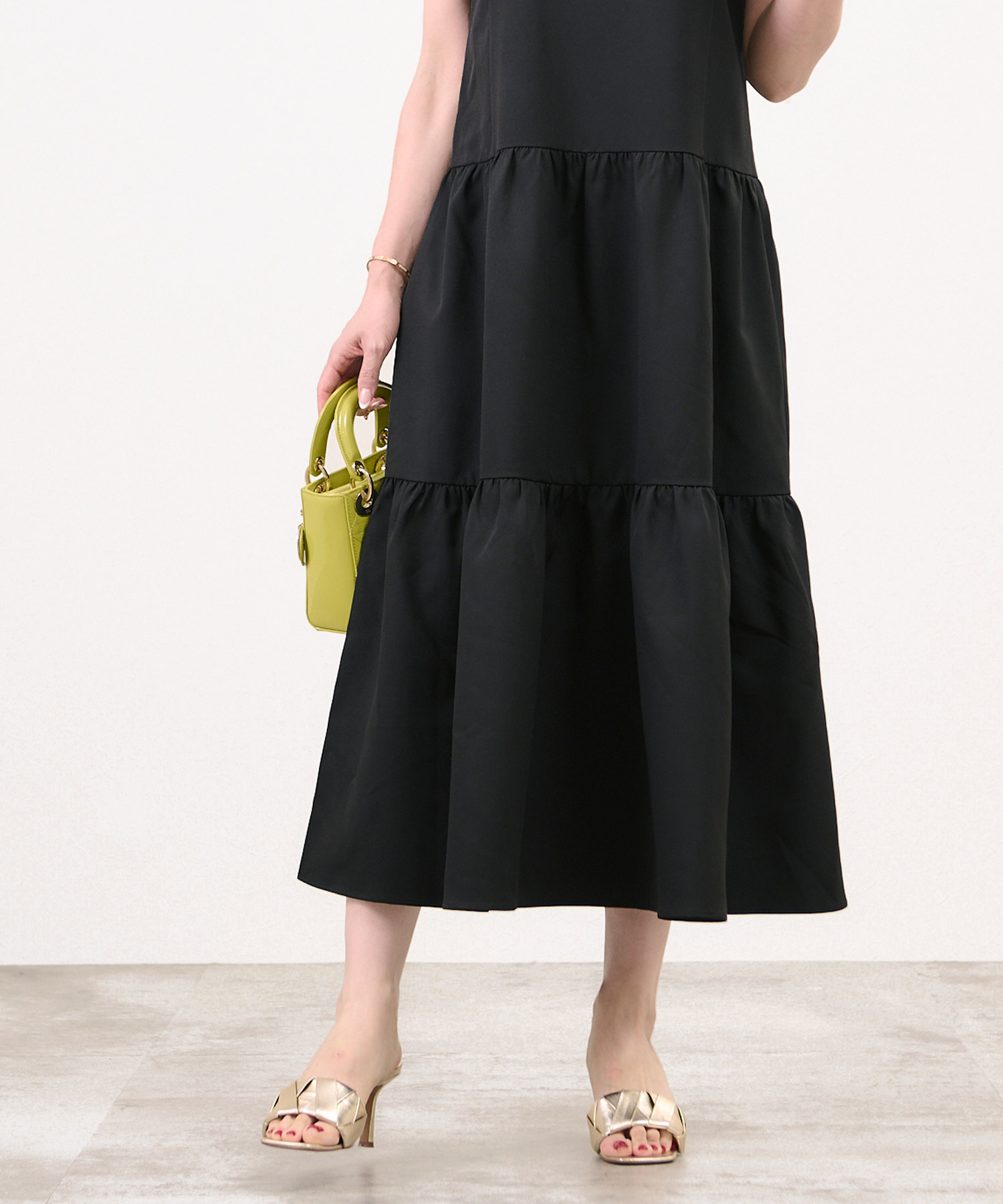 パネル切替えと二段ティアードで、シルエットに動きと奥行きが生まれるデザイン。ブルベ夏が得意なラベンダーやネイビーに加え、アクセントになるピスタチオも展開。軽やかで快適な着心地なので、長時間のイベントにも安心です。
