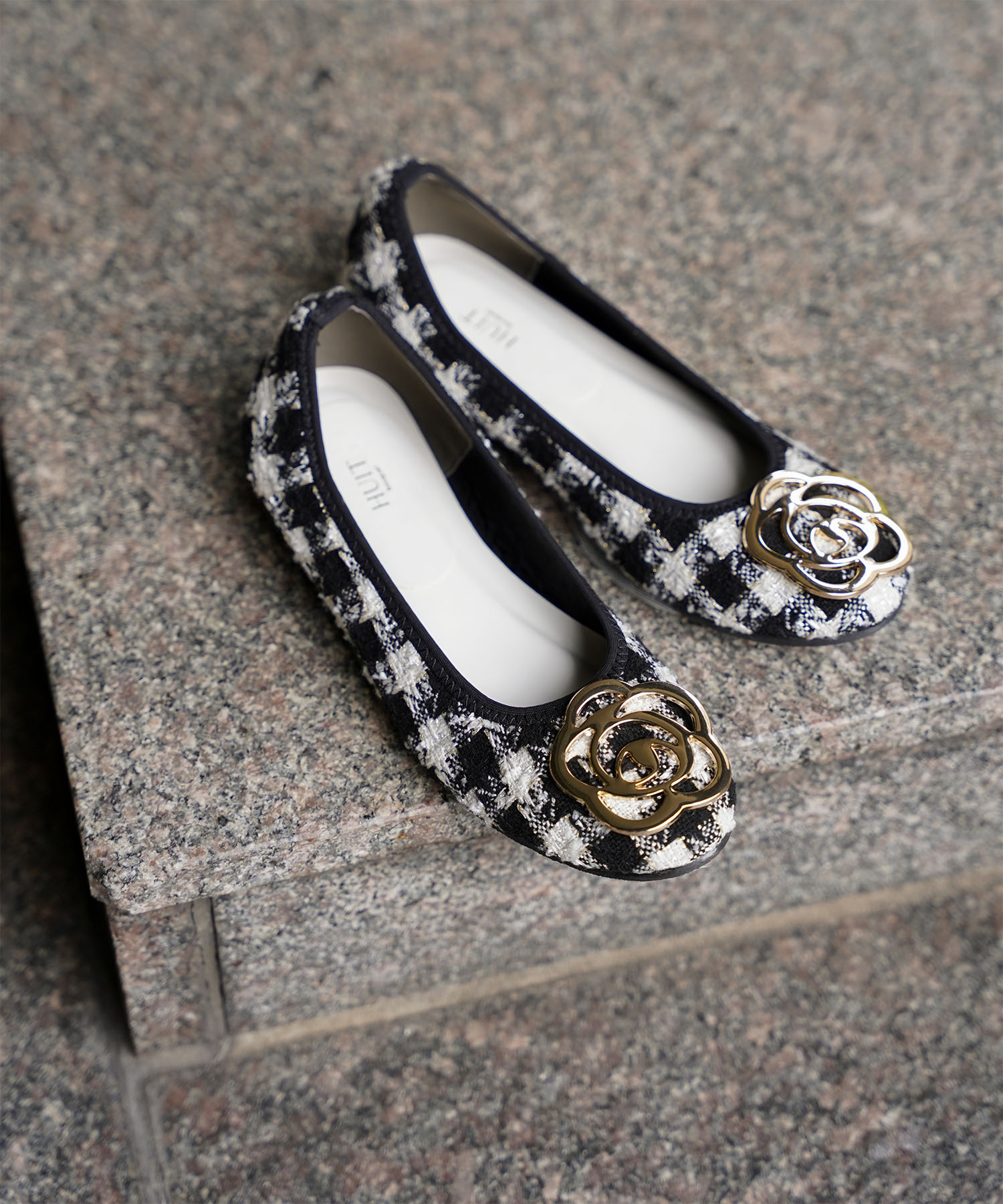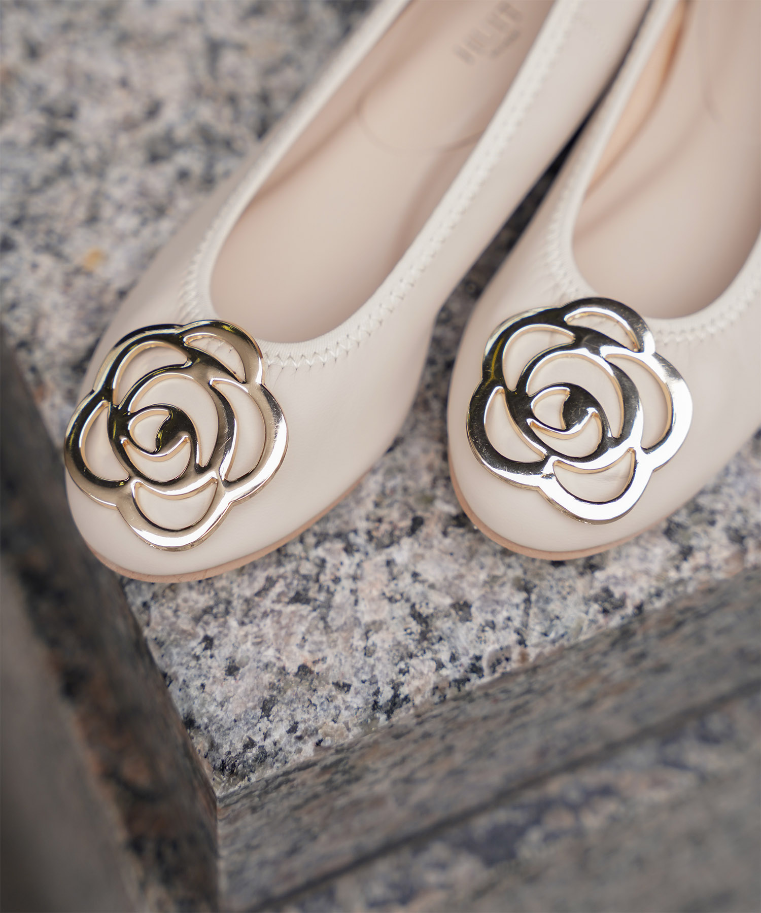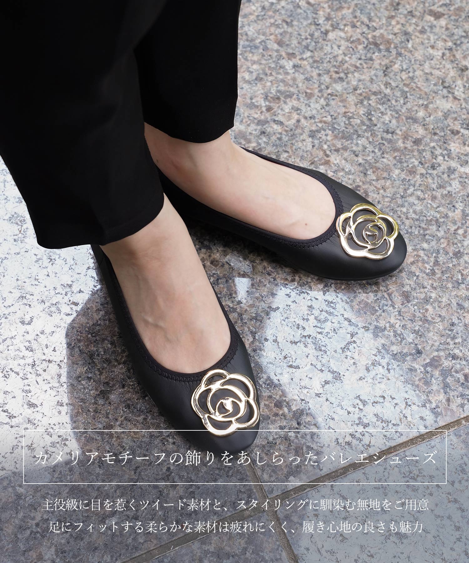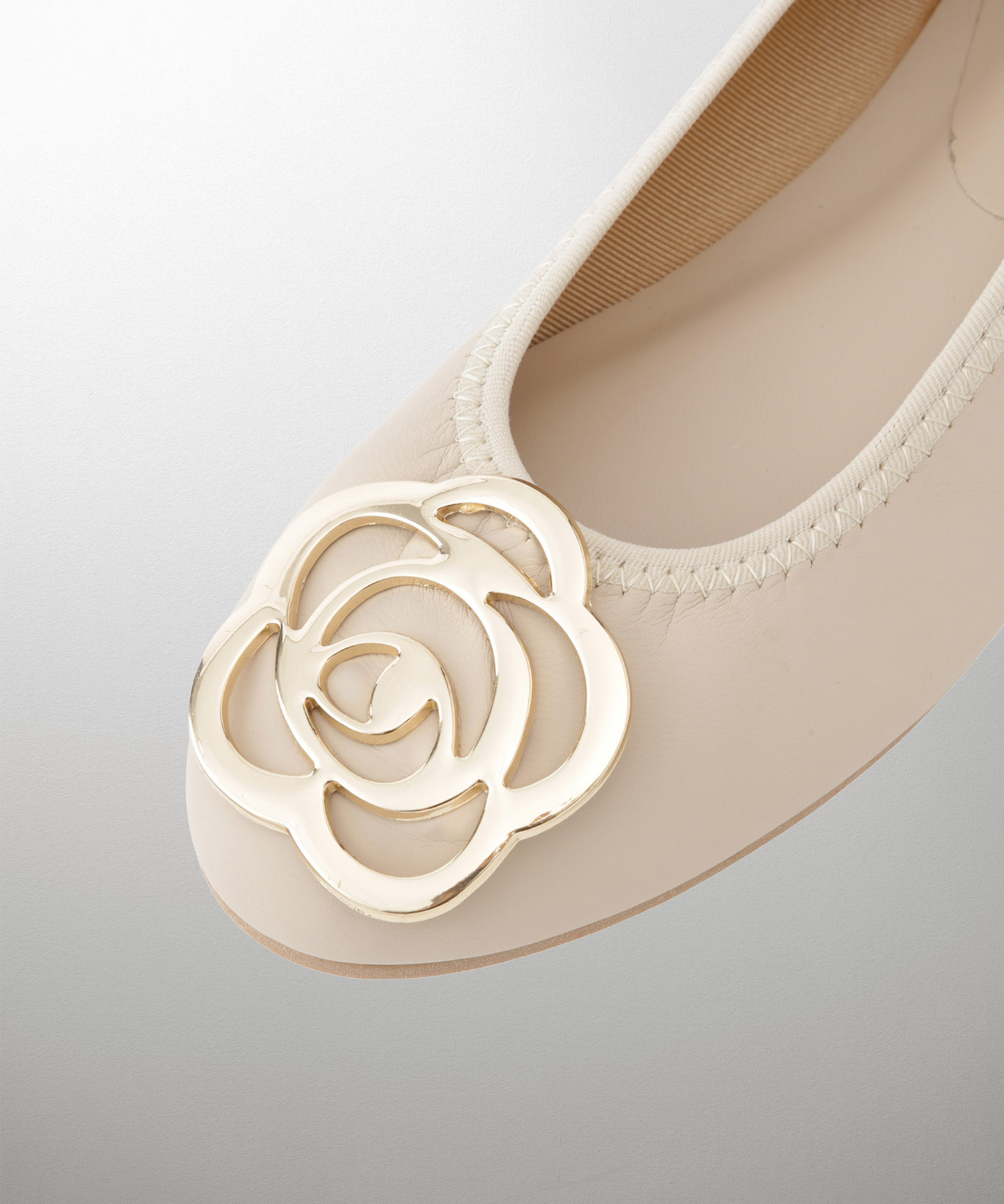 品よく華やぐ足元に——カメリアモチーフのきれいめフラット