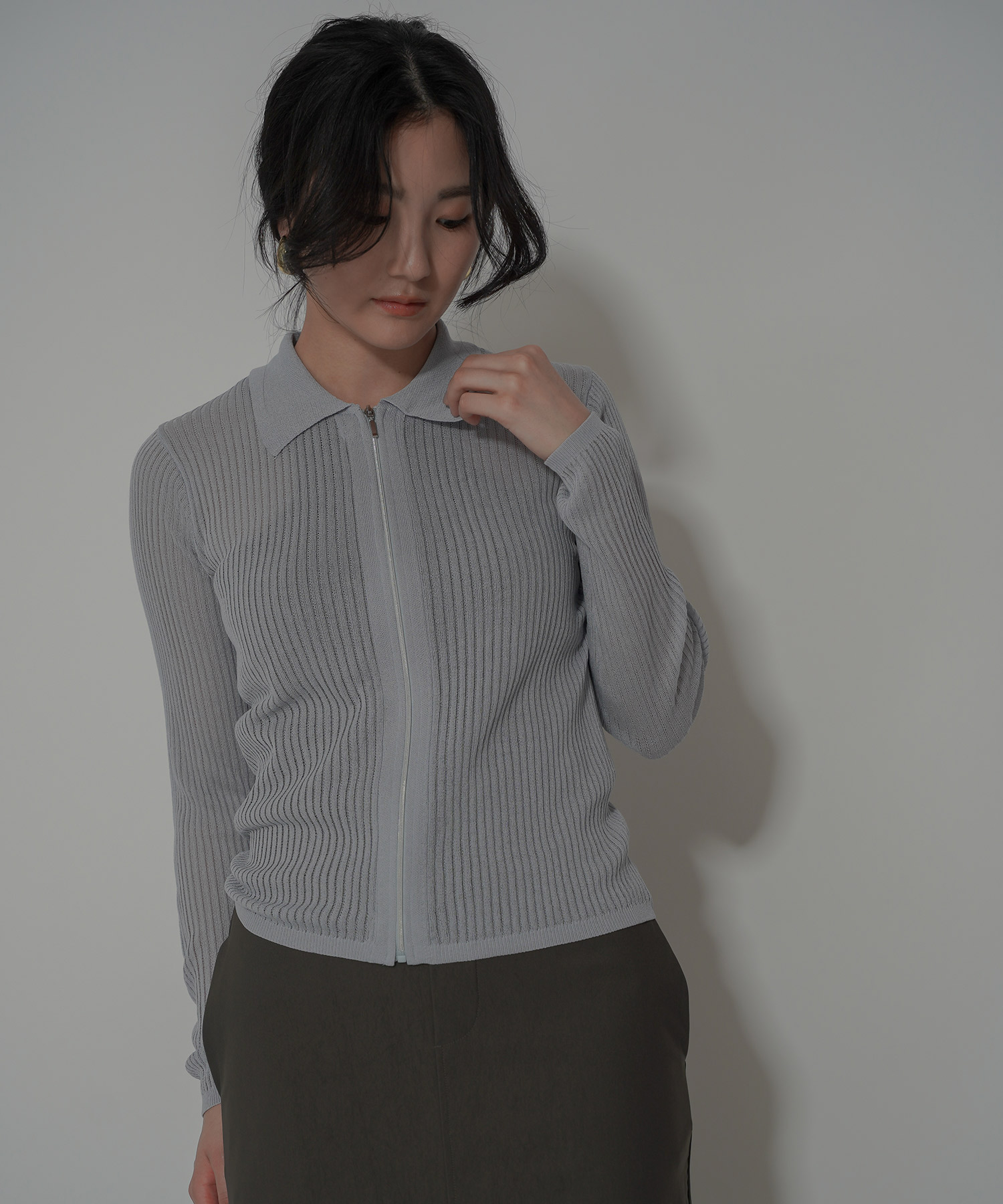 シアー ニット ジップ カーディガン(KINO THE KEI)¥7,590(税込)