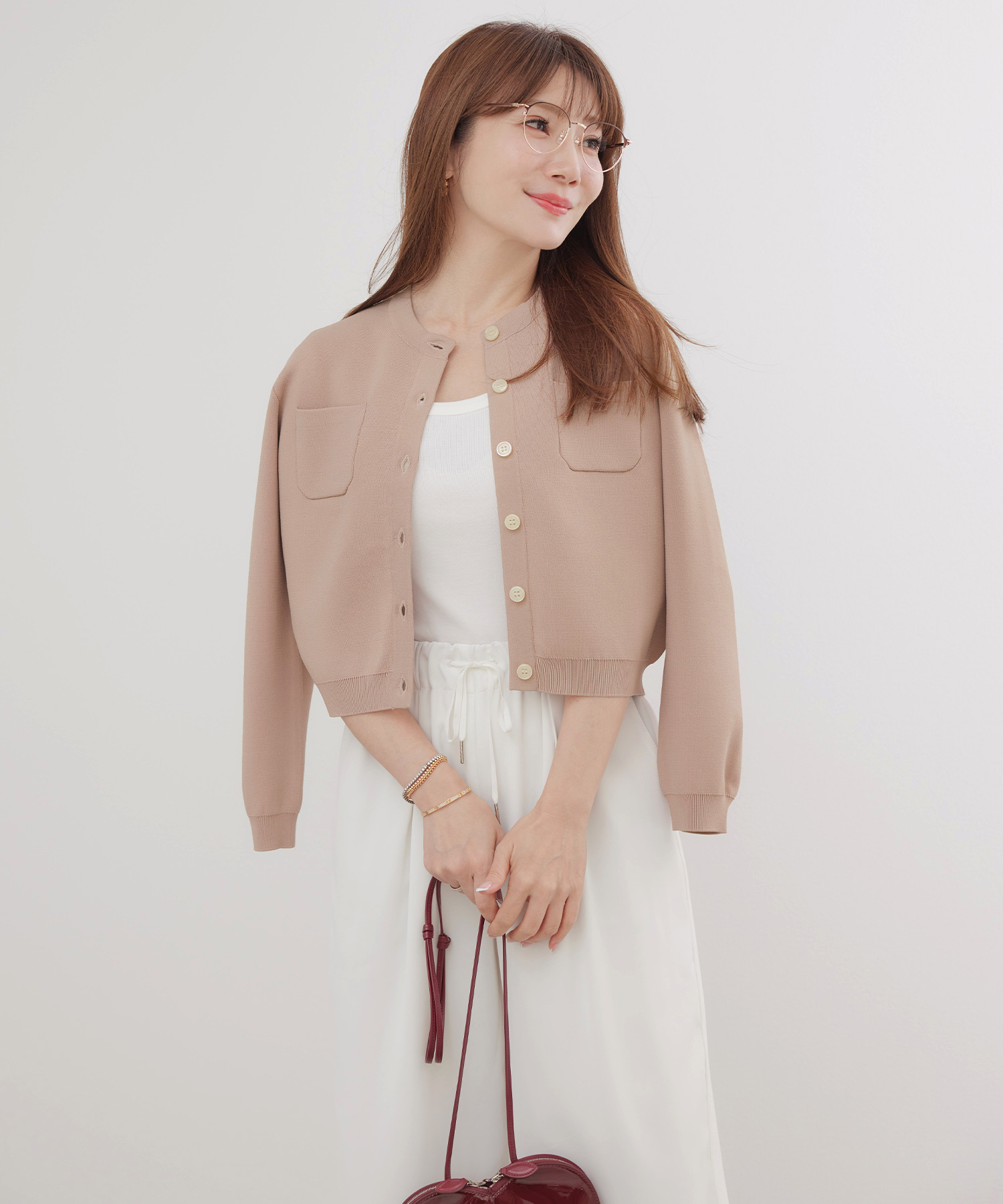 緻密な編み地とほどよいハリ感を備えたミラノリブ素材のカーディガン。羽織るだけでIラインが整い、きちんと感と美しいシルエットを両立できます。柔らかく伸縮性があるため着心地も快適。デザインポケットがさりげなくアクセントを添え、体温調整にも活躍。朝晩が涼しくなる九月のはじめに、軽やかに羽織れる1枚です。カラーはオフホワイト・ピンクベージュ・ブラックの3色展開。通勤や学校行事、休日のカジュアルスタイルまで、どんなシーンにも自然に馴染みます。