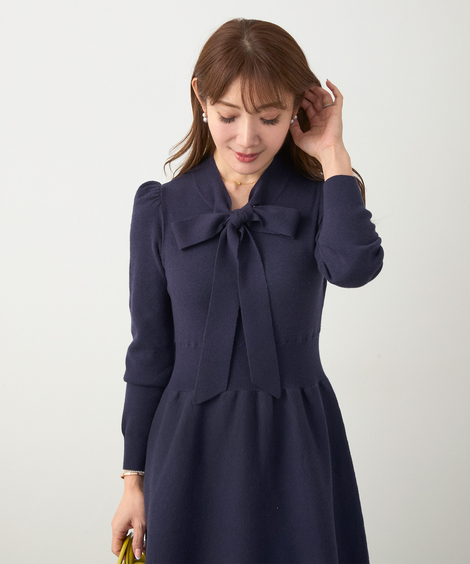 ボウタイ ニット ワンピース(Liala×PG)¥14,300(税込)
