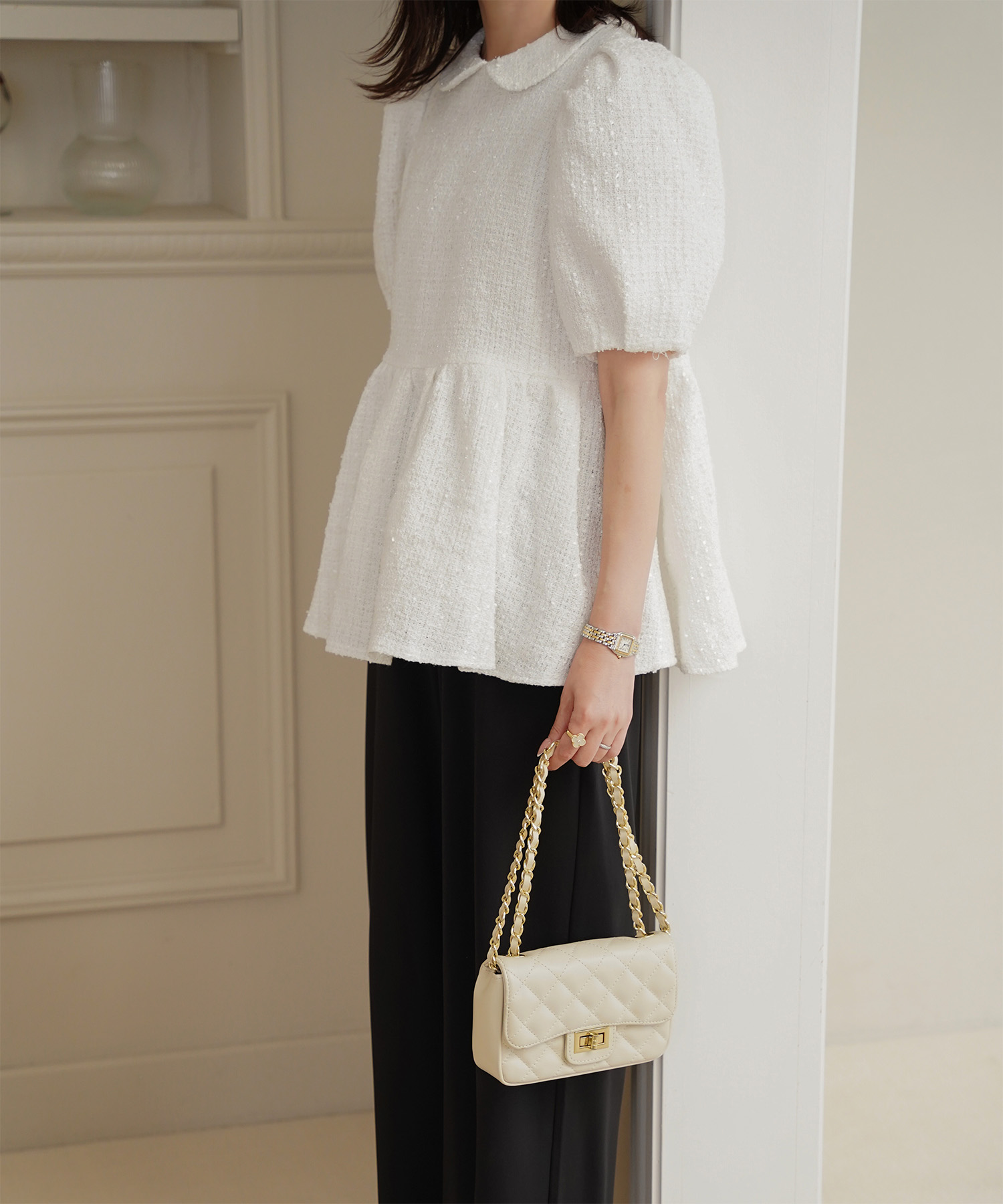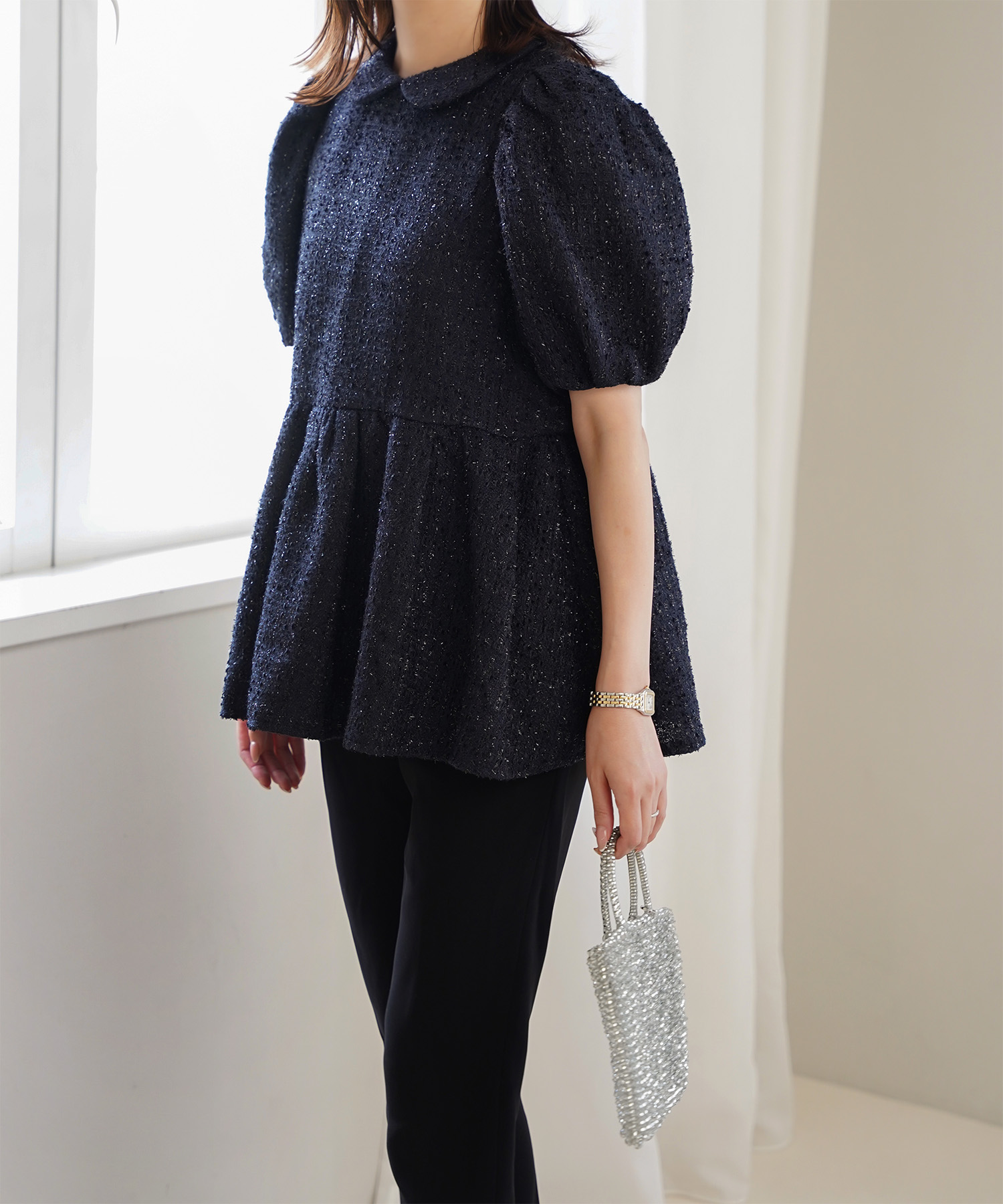襟付き ツイード ペプラム トップス(HUIT bouquet)¥11,880(税込)