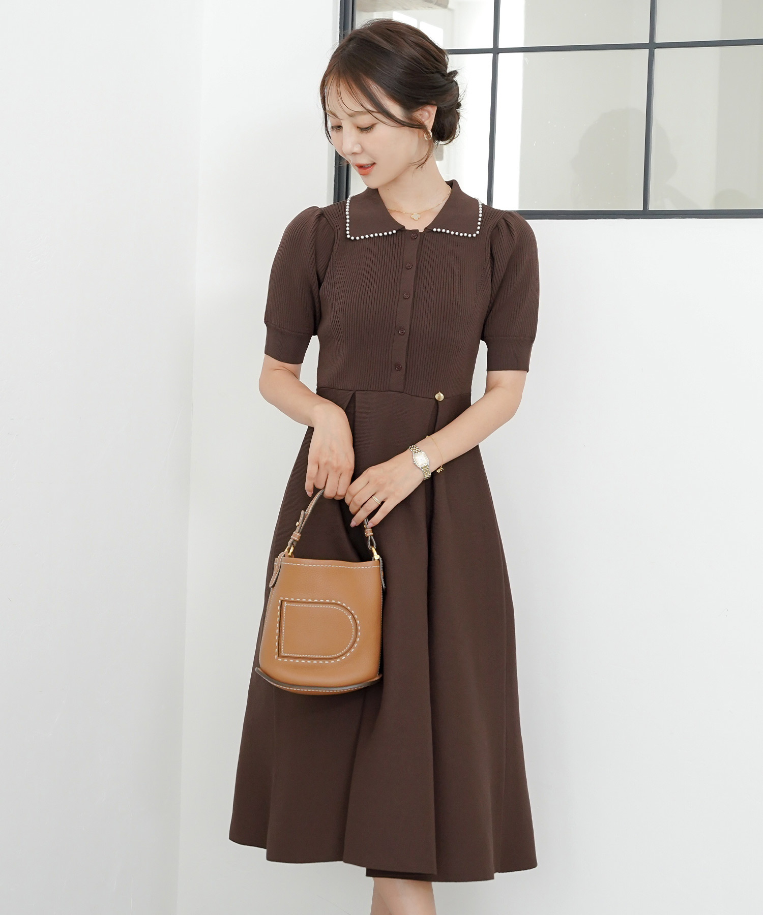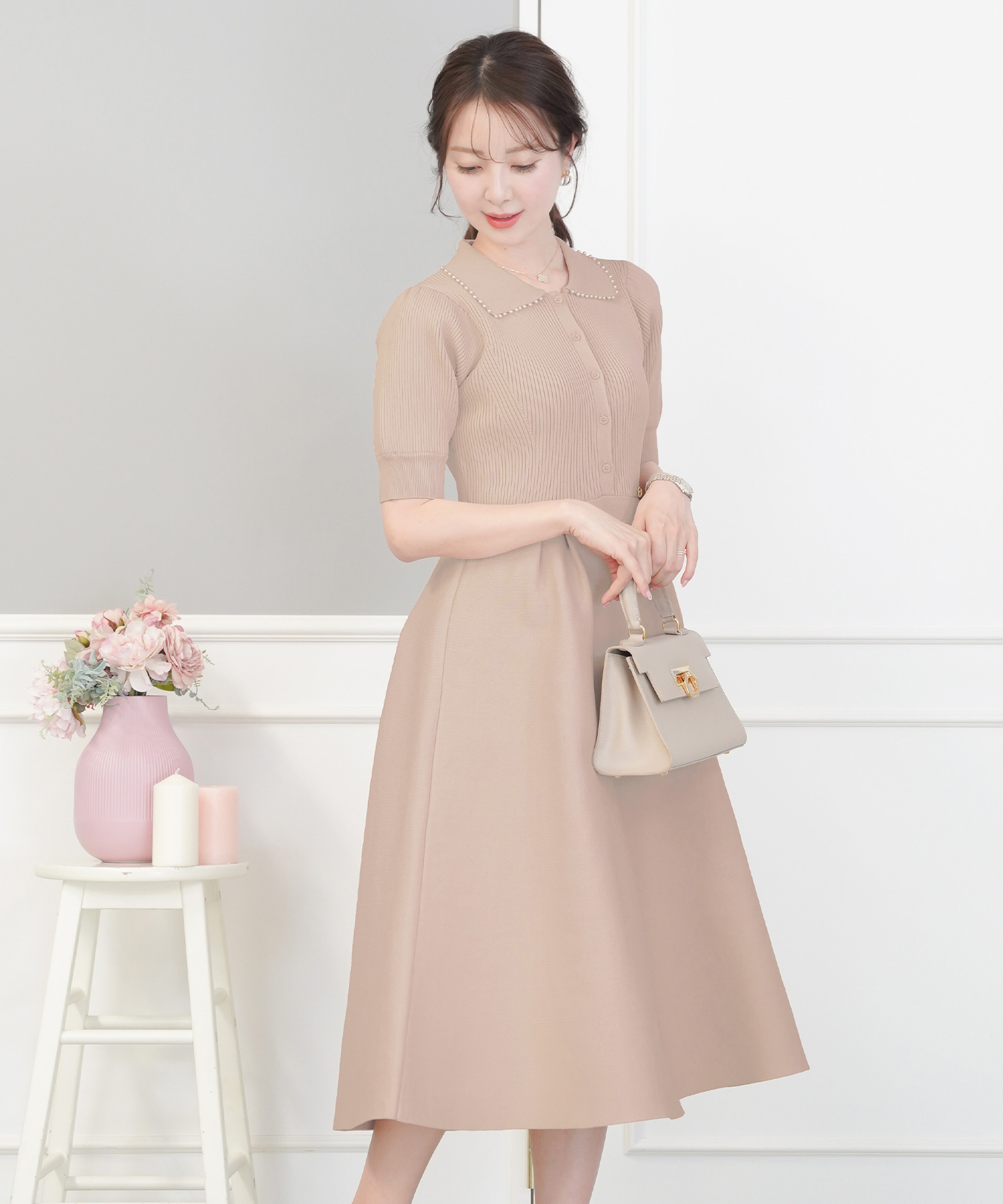半袖 パールトリム 襟付き ニットワンピース(le reve vaniller)¥12,100(税込)