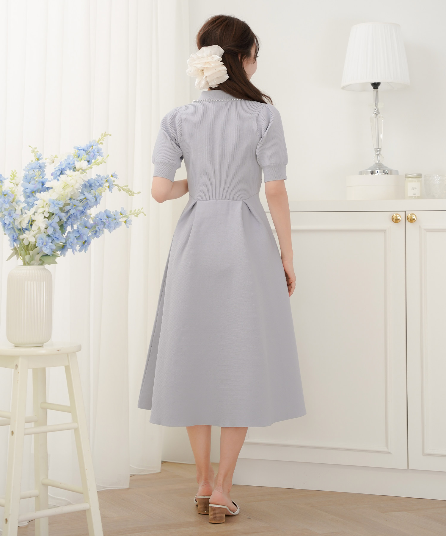 半袖 パールトリム 襟付き ニットワンピース(le reve vaniller)