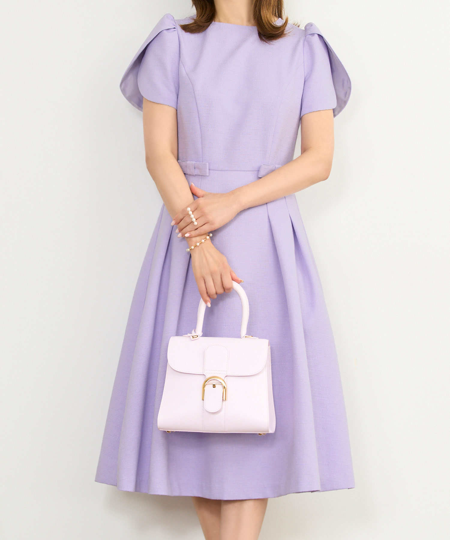 襟元にあしらわれたパールが顔まわりを華やかに見せてくれるワンピース。レビューでは「参観日やランチでも褒められる」「彼のご家族と会う場面でも安心して着られる」といった声が多く、きちんと感と可愛らしさを兼ね備えた一着として高評価です。ネイビーはパールが映えて上品に、ラベンダーは華やかに見えると好評。さらに「低身長スタッフの着こなしを見て購入を決めた」というレビューもあり、幅広い体型の方にフィットしやすい安心感が伝わります。日常から特別な食事シーンまで活躍する、汎用性の高いアイテムです。