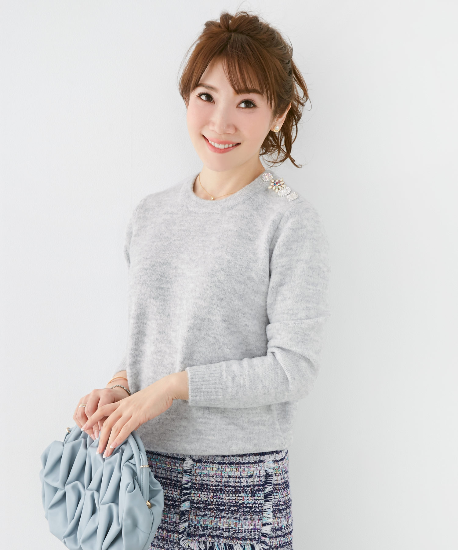 • ニット:ふんわりとした厚みで「やわらかさ」を足す