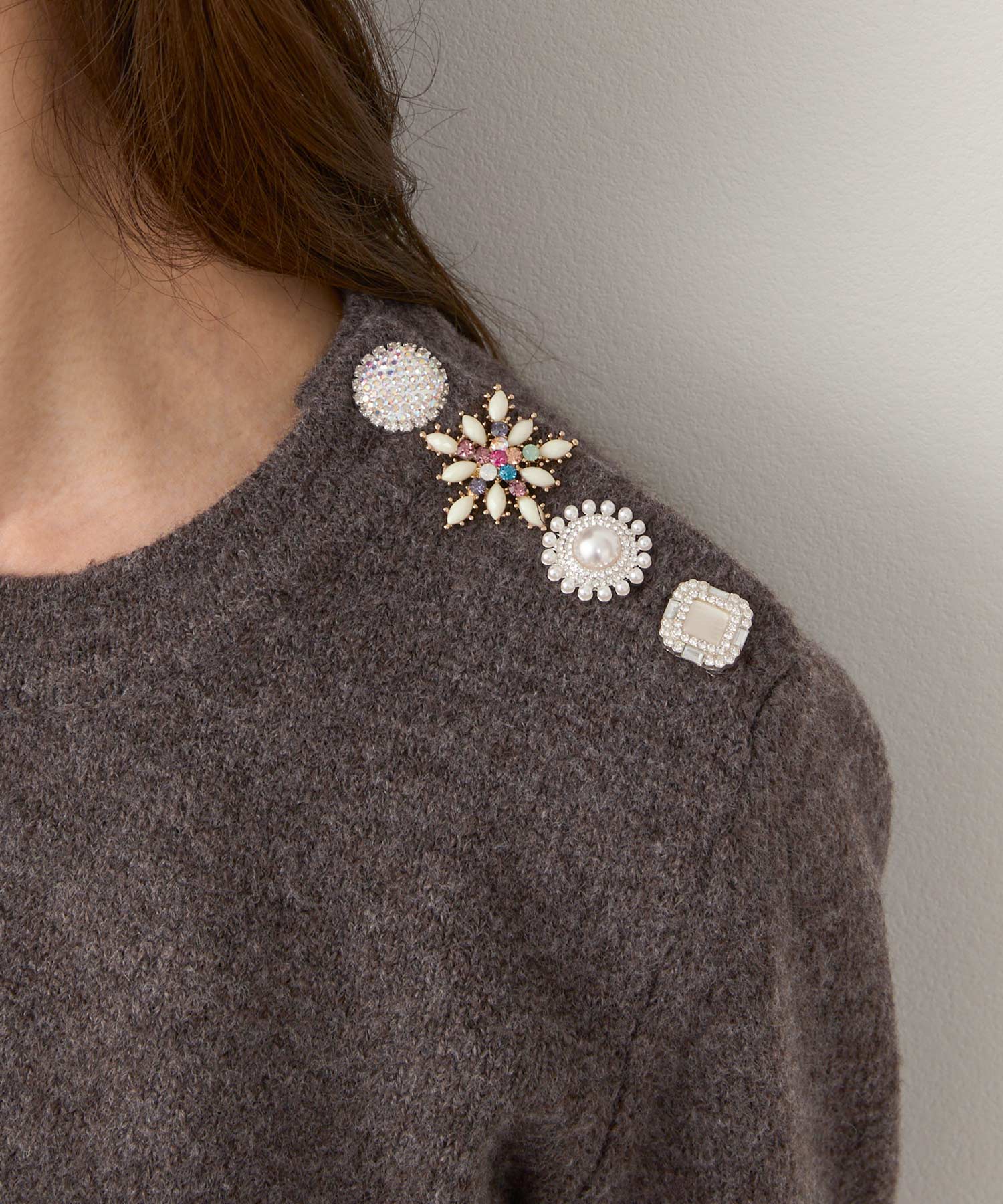 肩ビジュー 釦 ニット(Liala×PG) ¥9,900(税込)