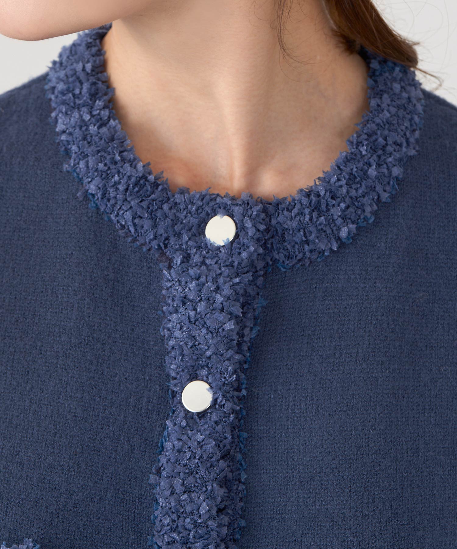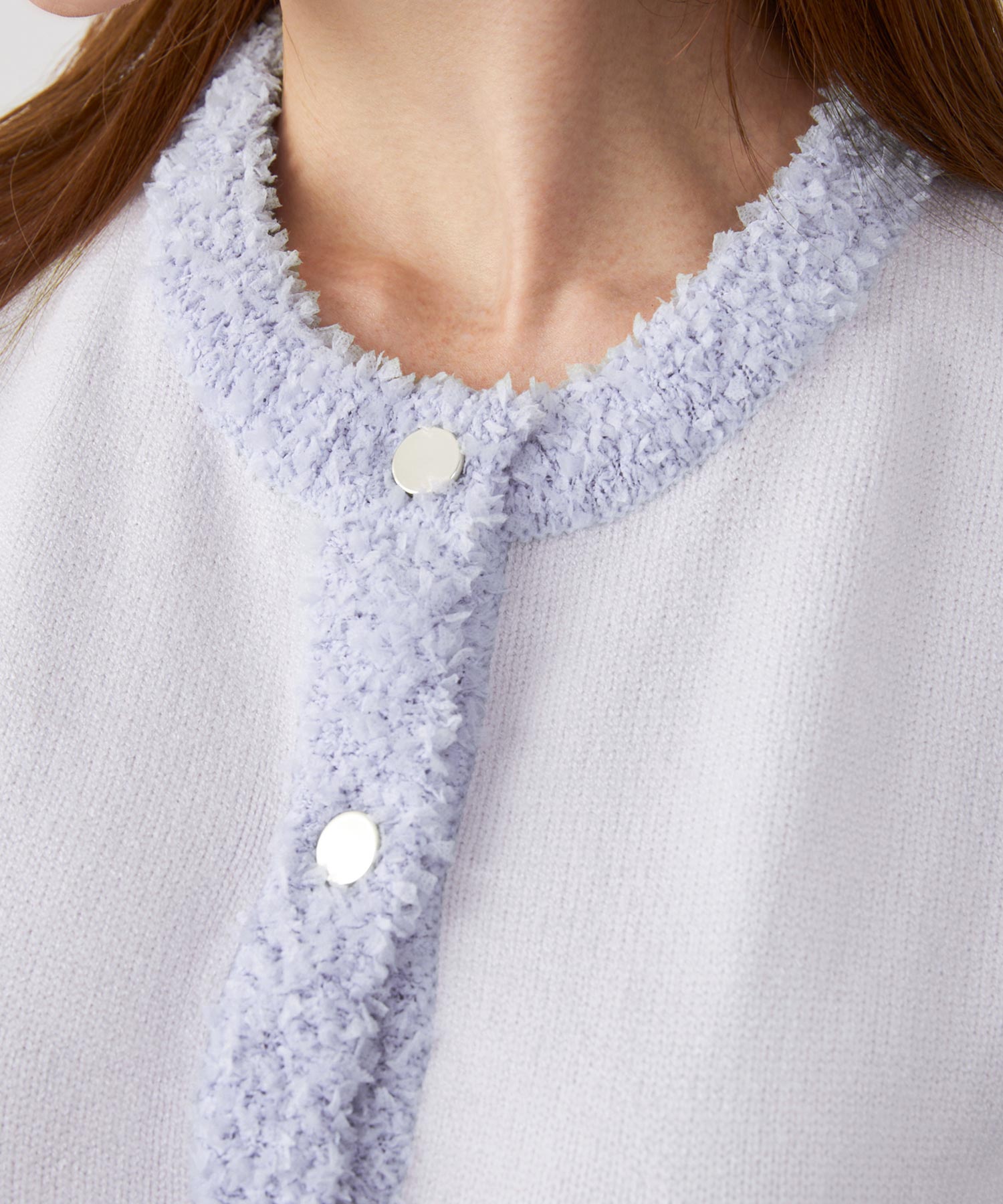 • 顔まわりにベージュのニット(柔らかさ)