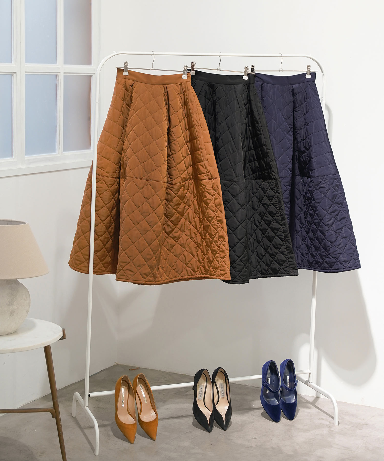 • コーデ全体の重心が上がり、スカートの揺れ感がきれいに映える