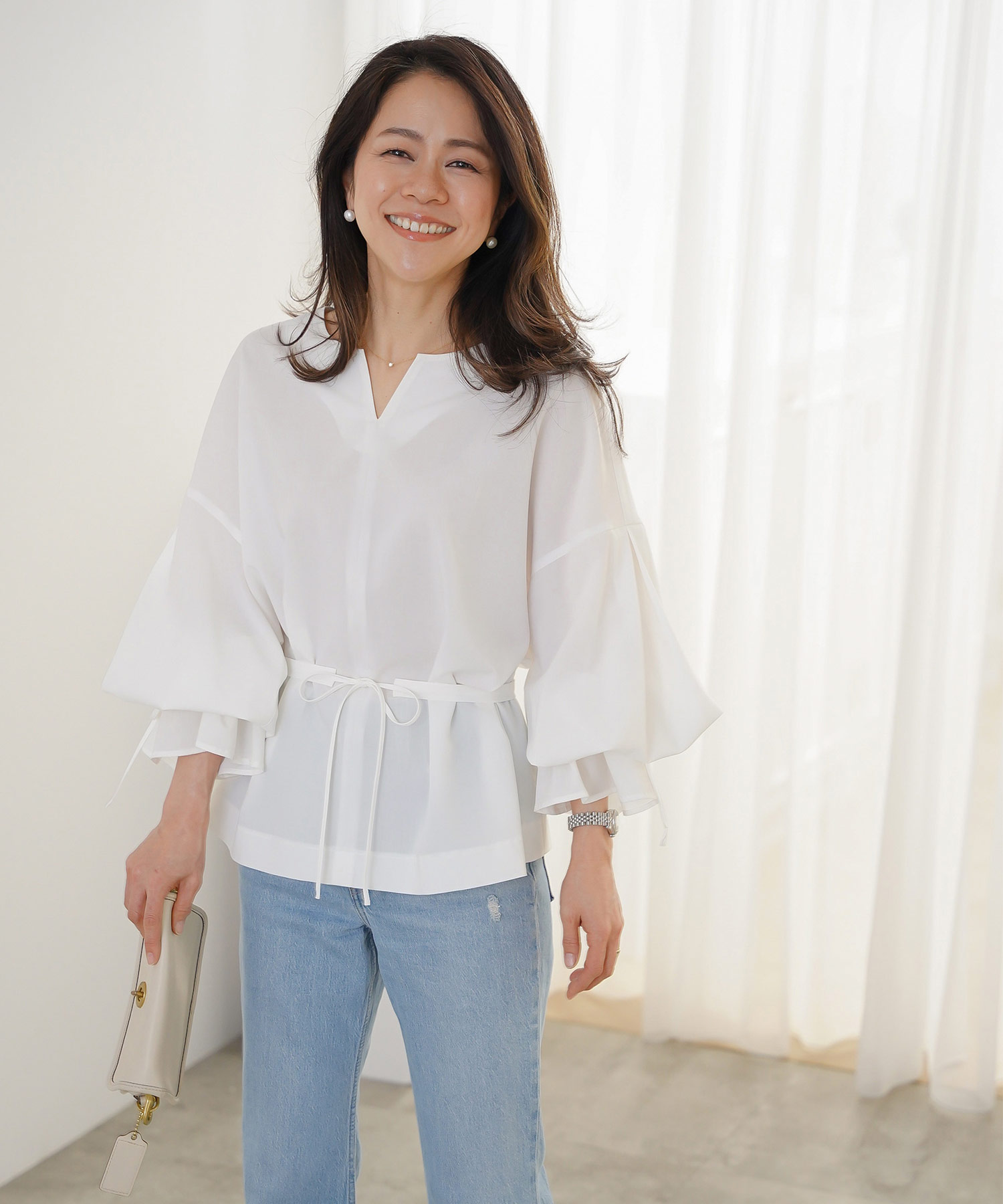 2way ベルト付き バルーン袖 ブラウス(&BLOOM)¥12,980(税込)