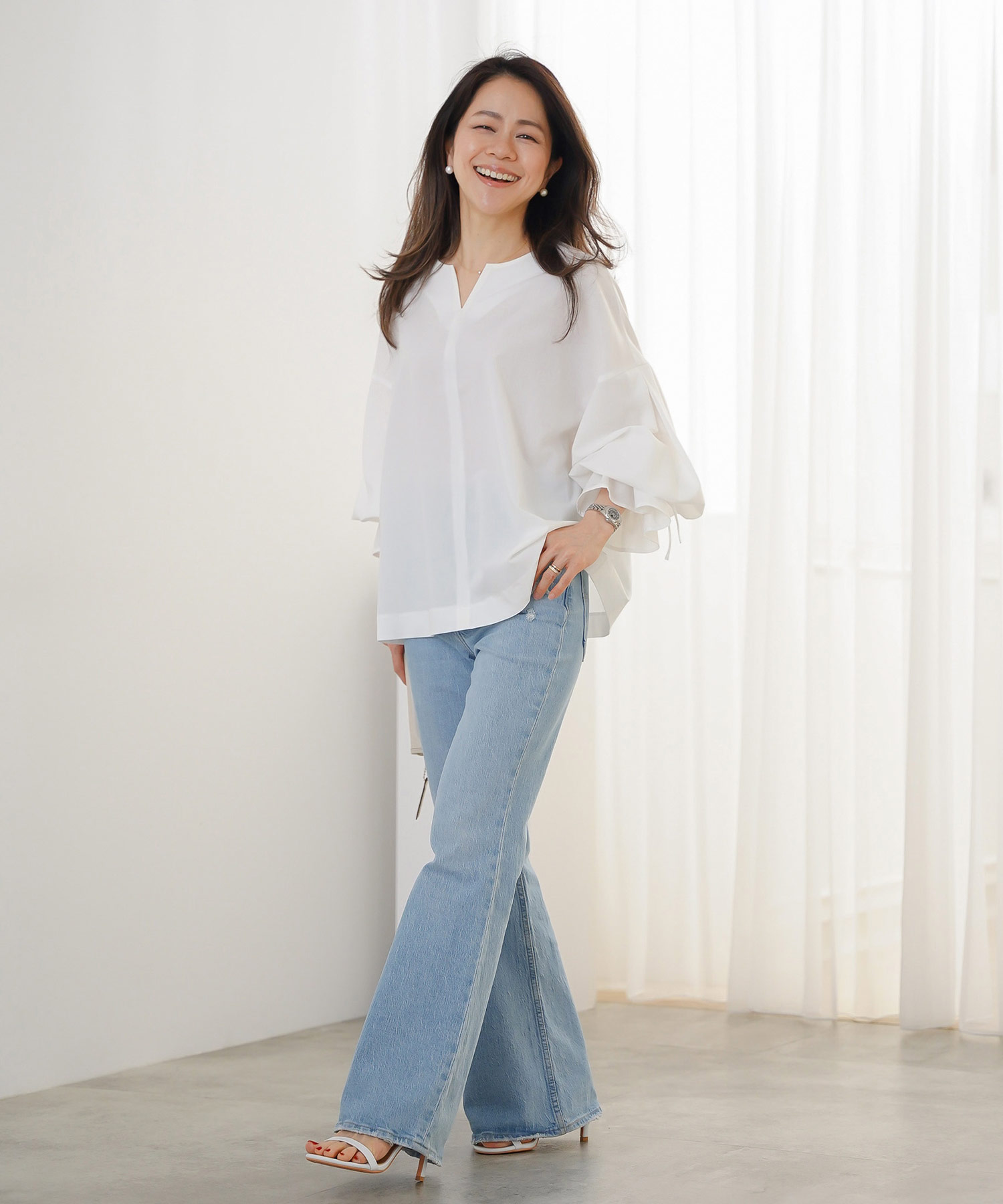 サテン フレアスリーブ ブラウス(HUIT bouquet)¥9,350(税込)