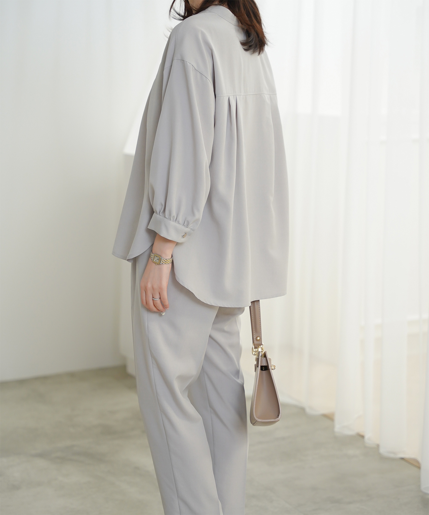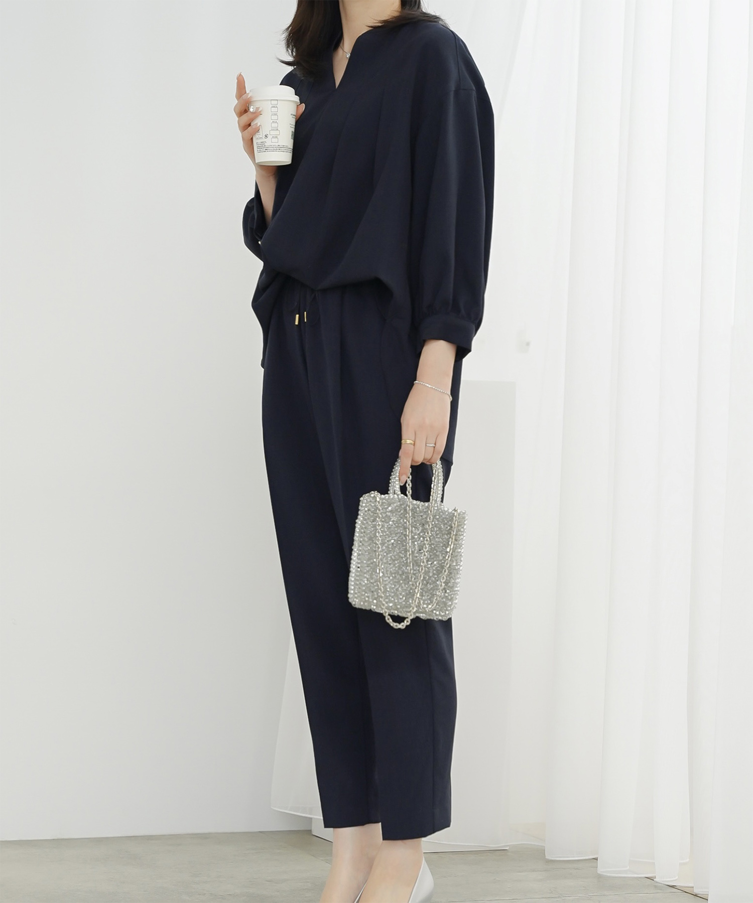 トップスとボトムスが別アイテムでも、質感や色味がそろっていれば、自然と整った印象になります。ジャケットに頼らず、服そのもののまとまりで“きちんと見え”を作りたいときは、セットアップを意識した着こなしを考えると取り入れやすくなります。