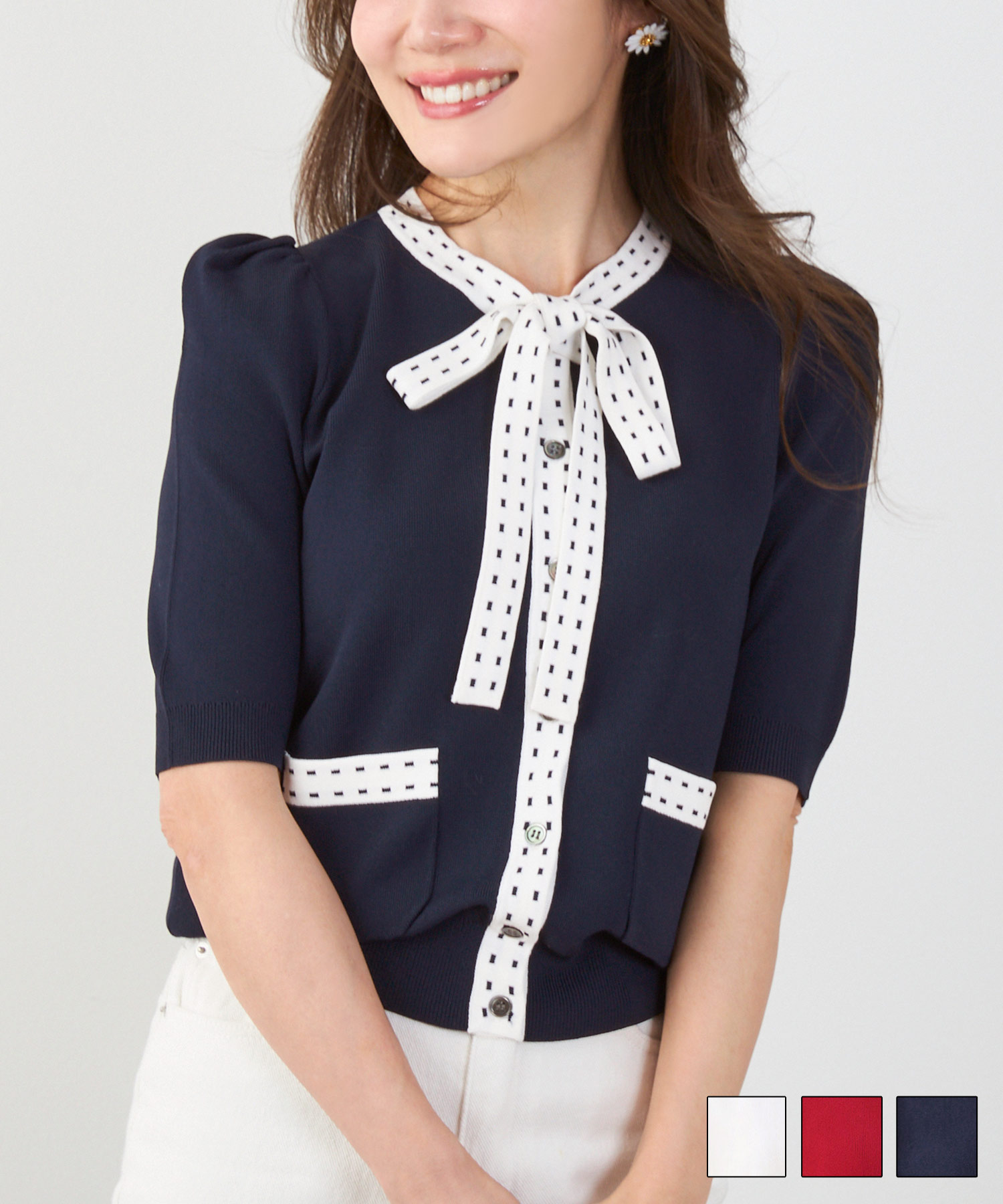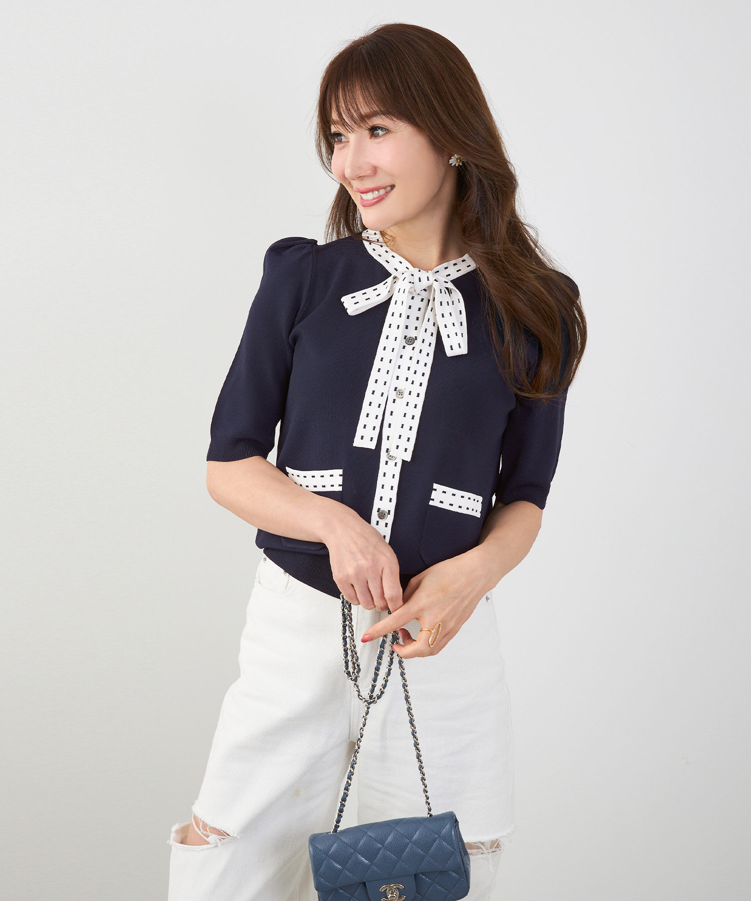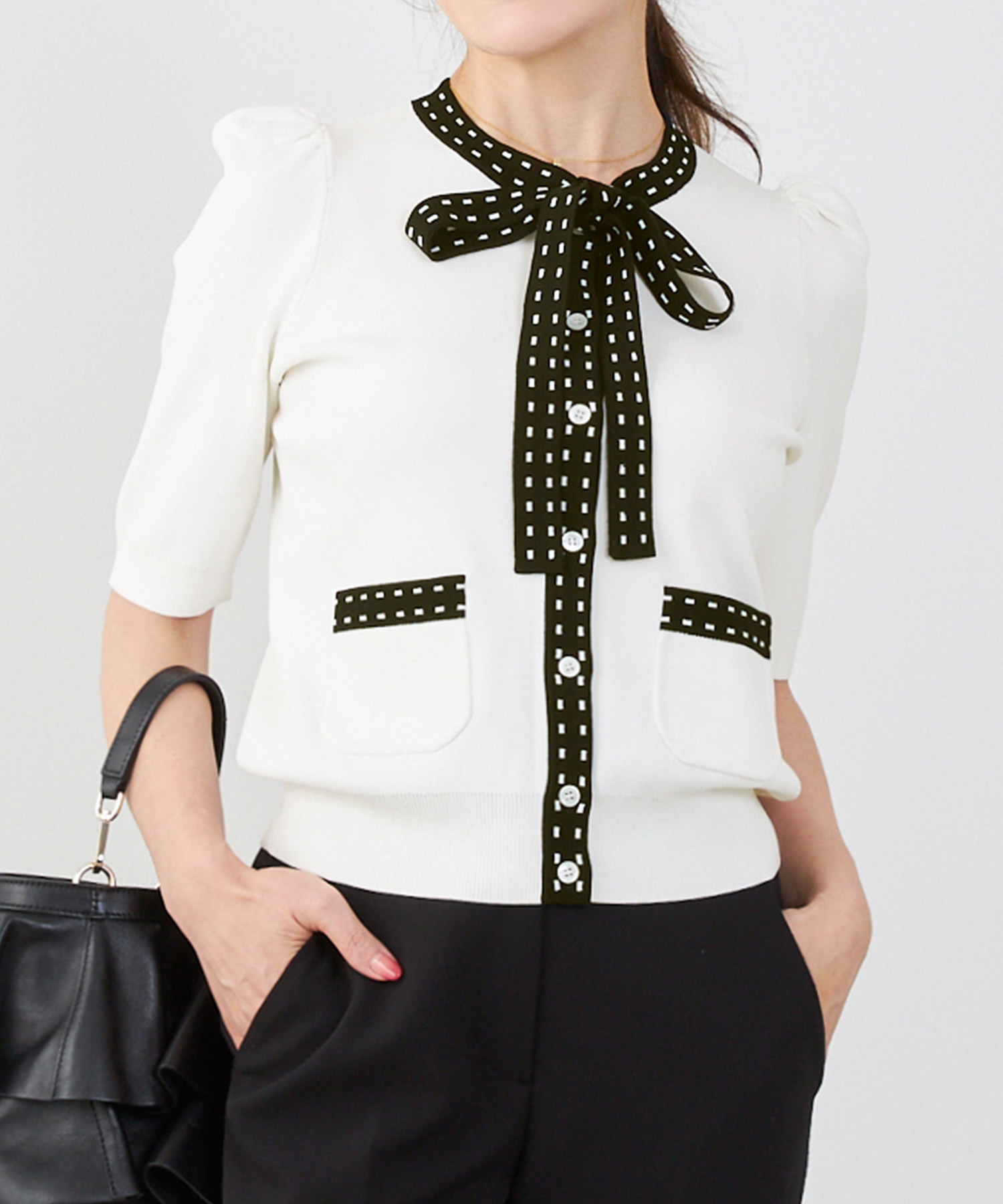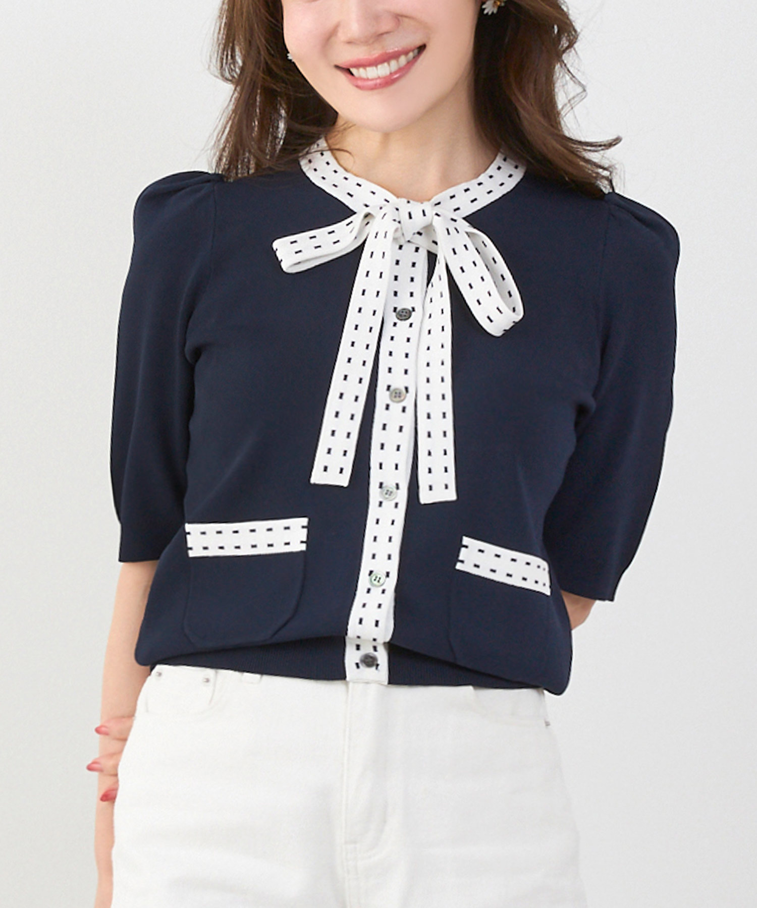 ステッチ ジャガード ボウタイ5分袖 カーディガン(Liala×PG)¥9,350(税込)