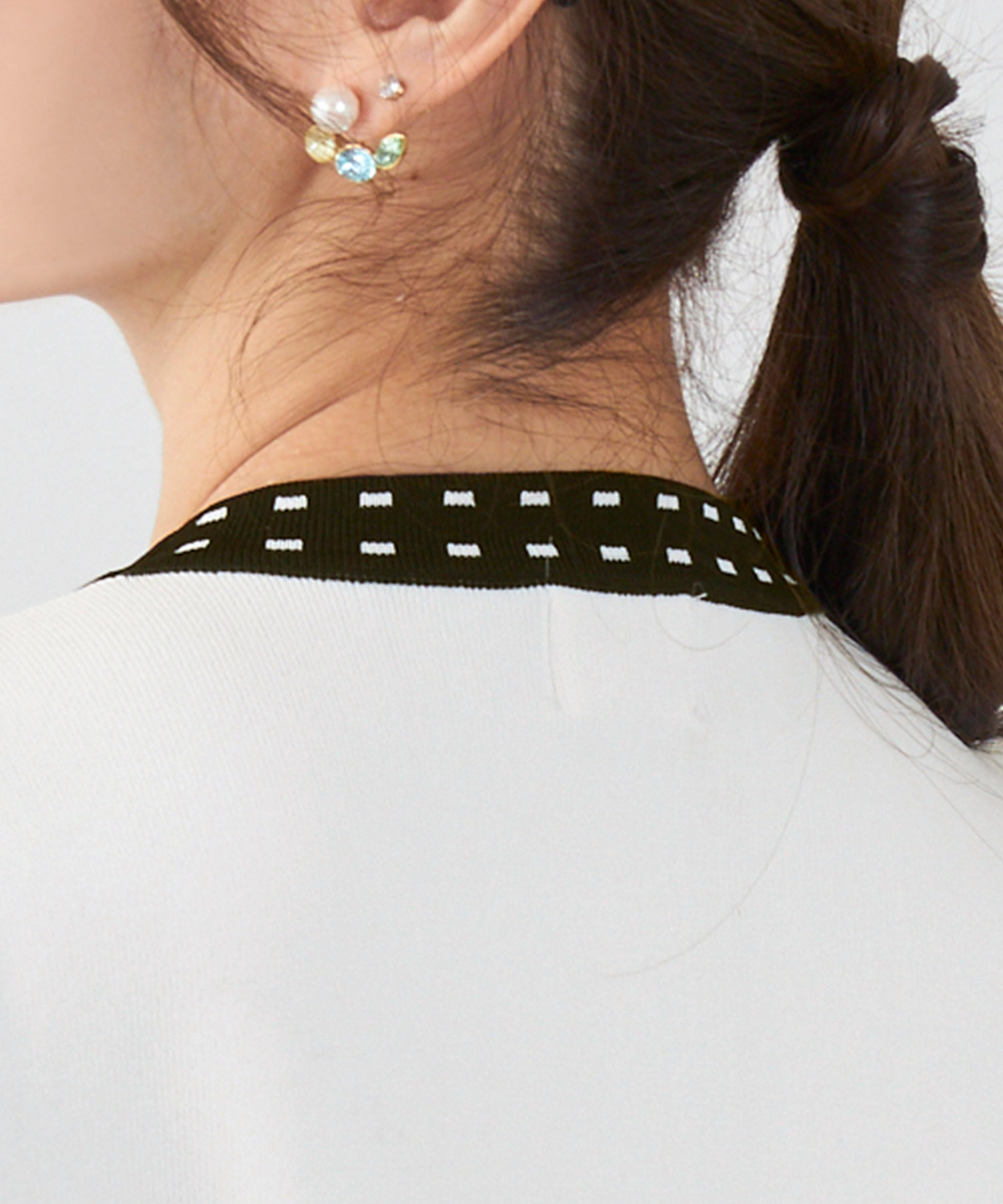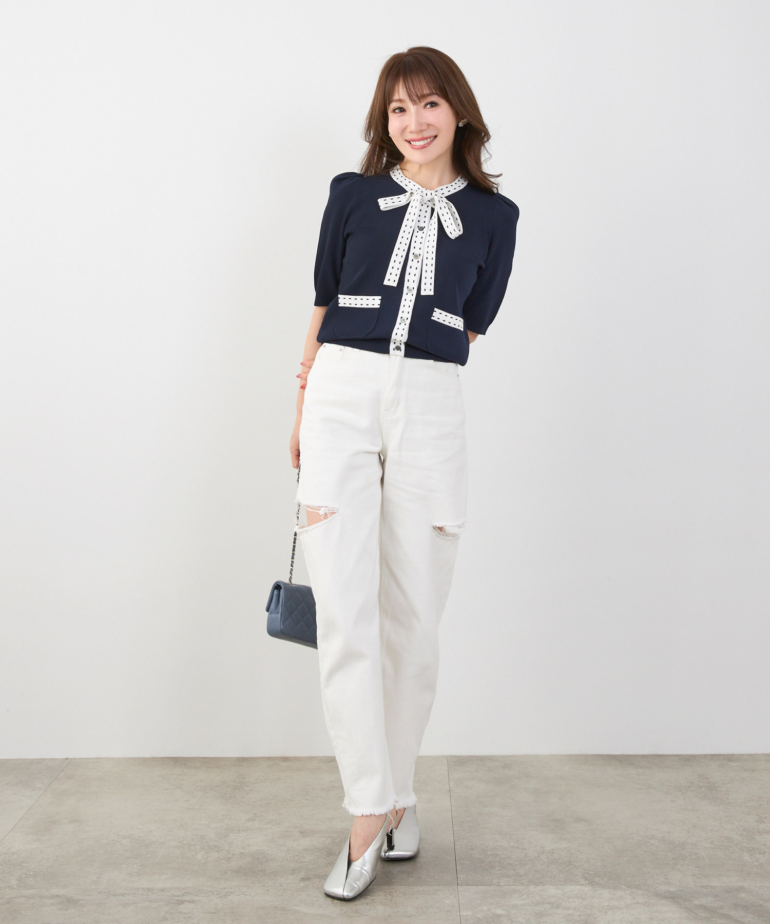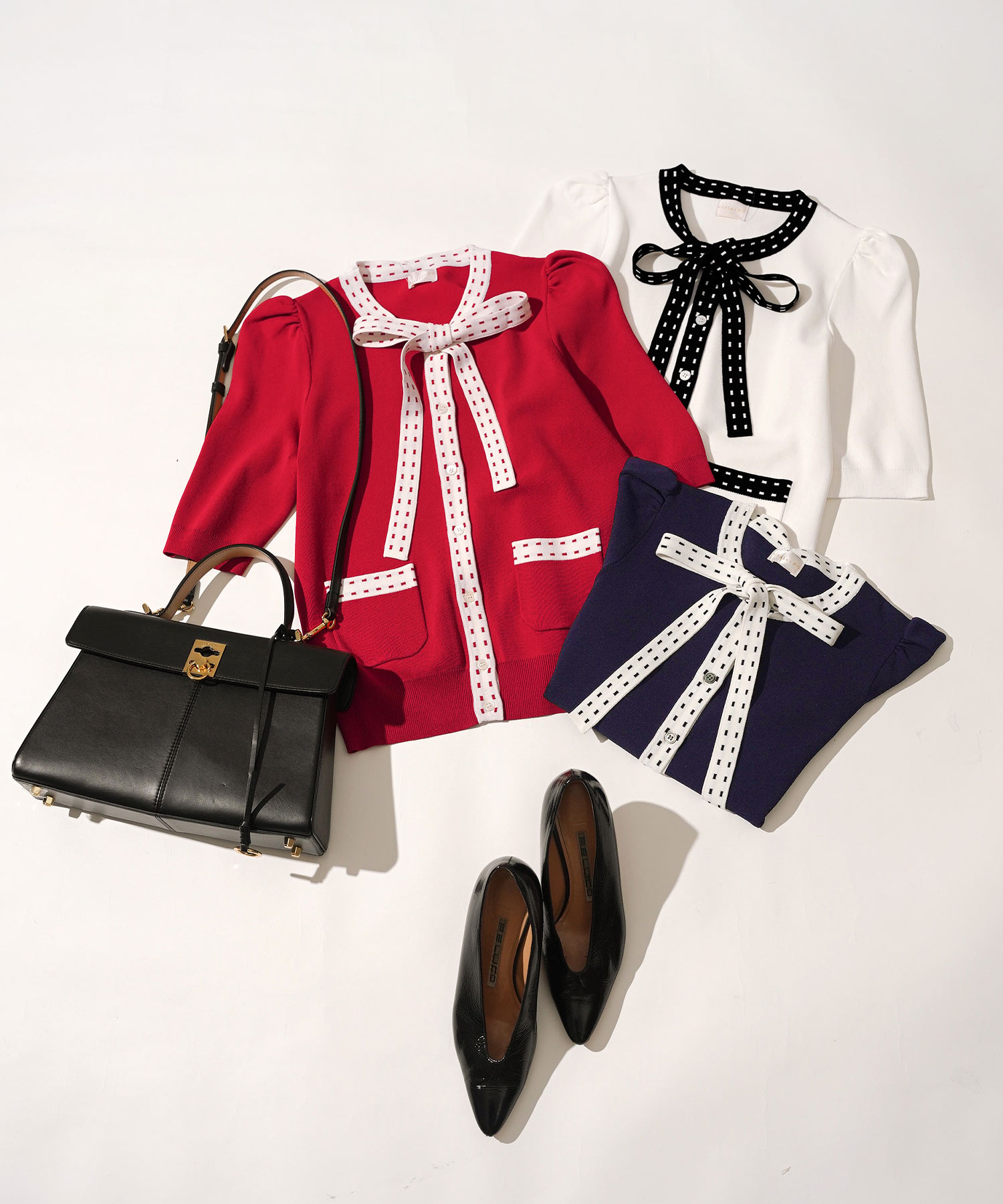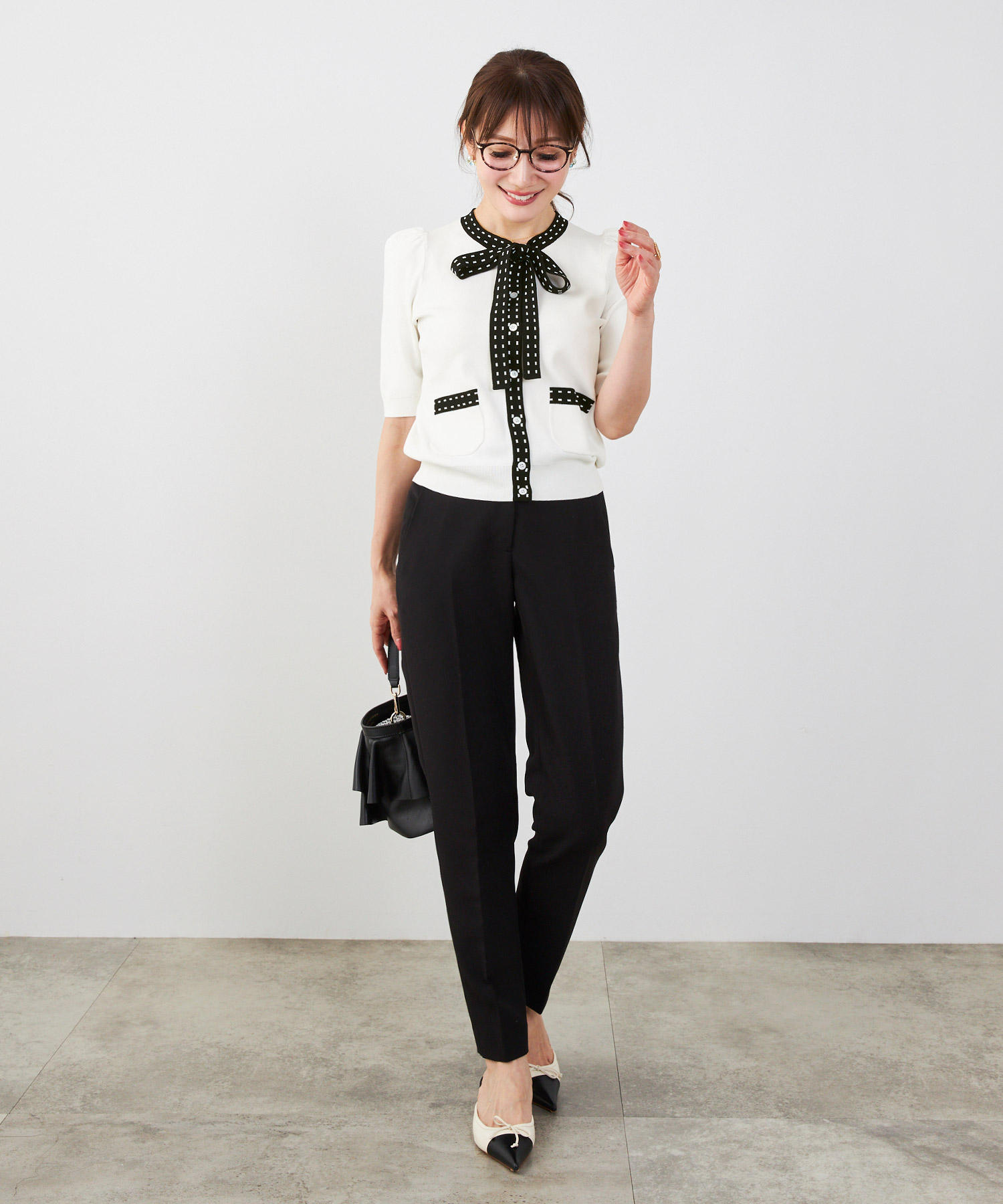 ステッチ ジャガード ボウタイ5分袖 カーディガン(Liala×PG)¥9,350(税込)