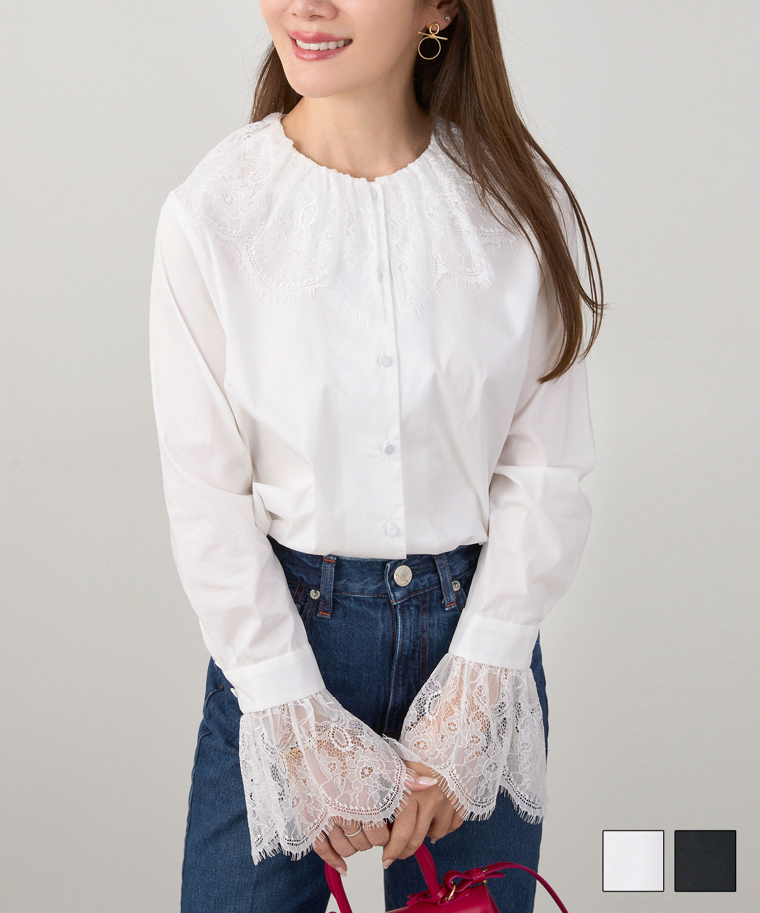 襟&袖口 レース フリル ブラウス(Liala×PG)¥8,800(税込)