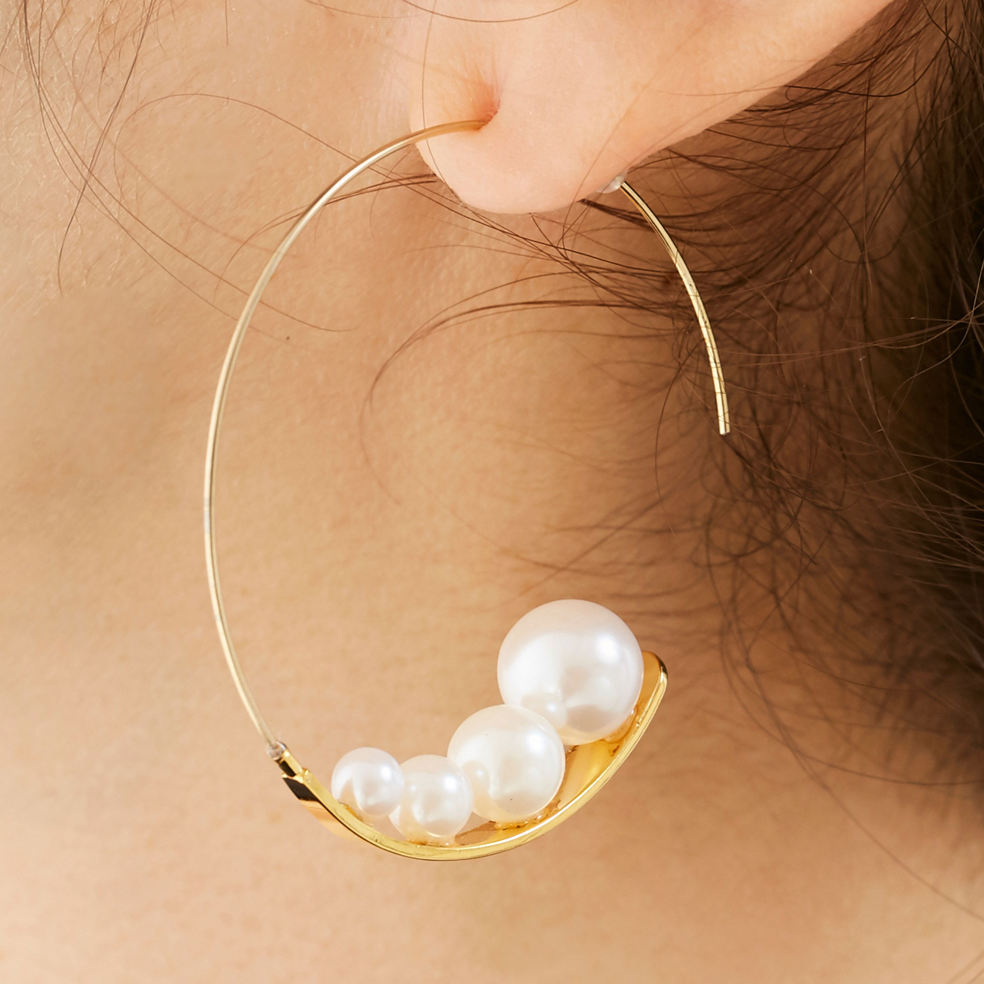 大ぶりのフープに大小のパールが程よい存在感をプラス!
