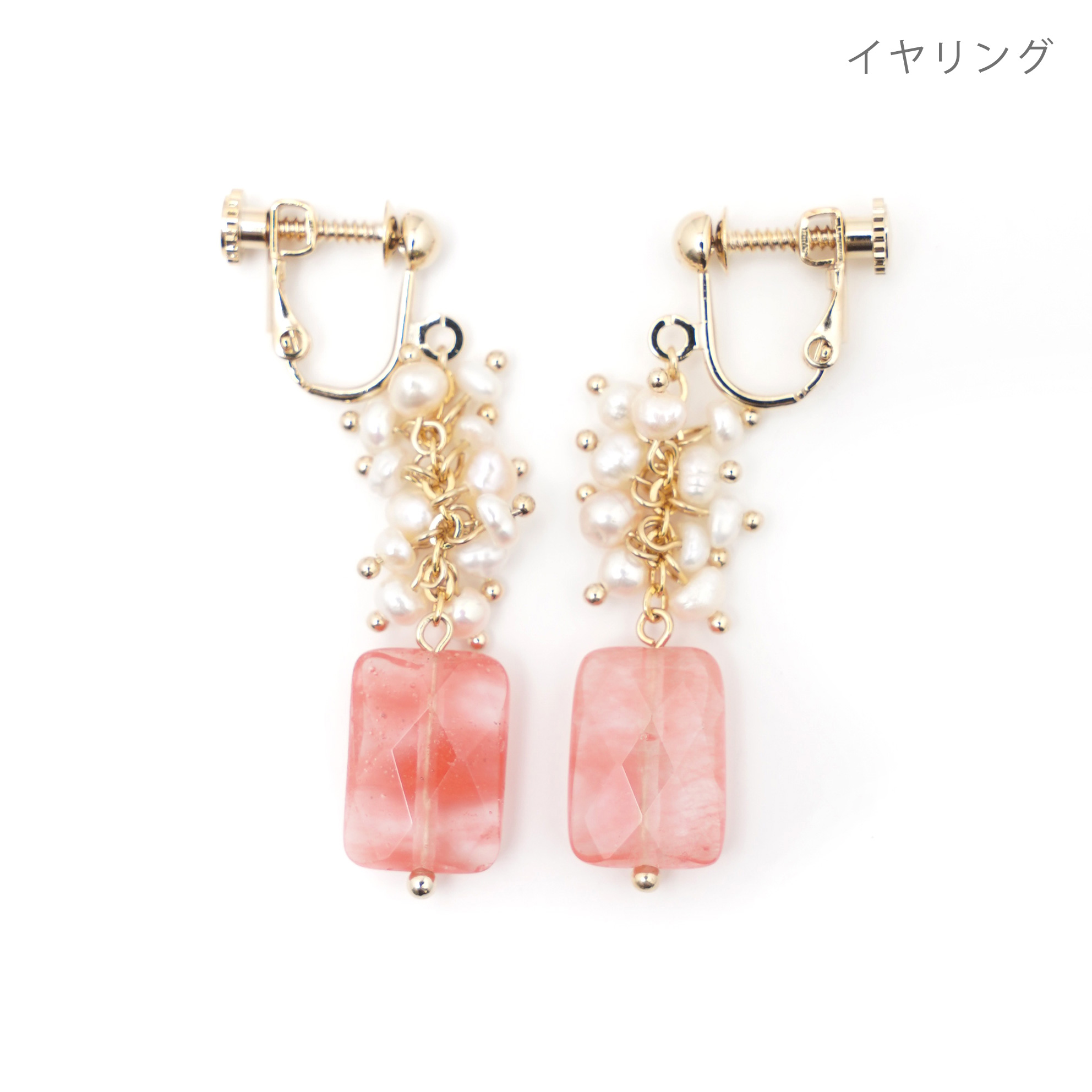 真鍮、チェリークオーツ(合成石)、淡水パール