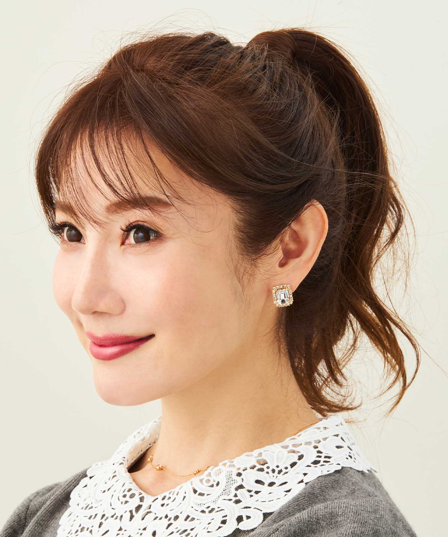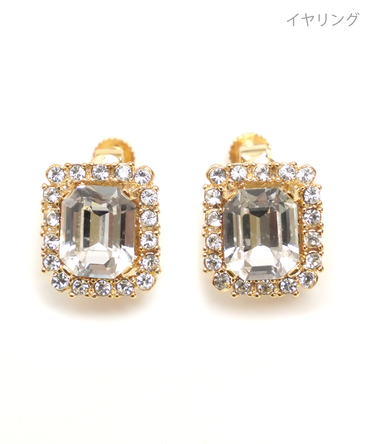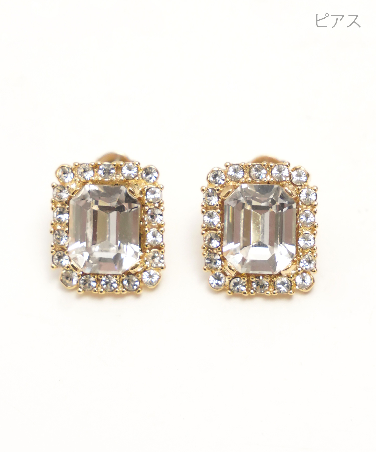 存在感たっぷりのスクエアストーンをアンティーク調にデザインしたピアス。