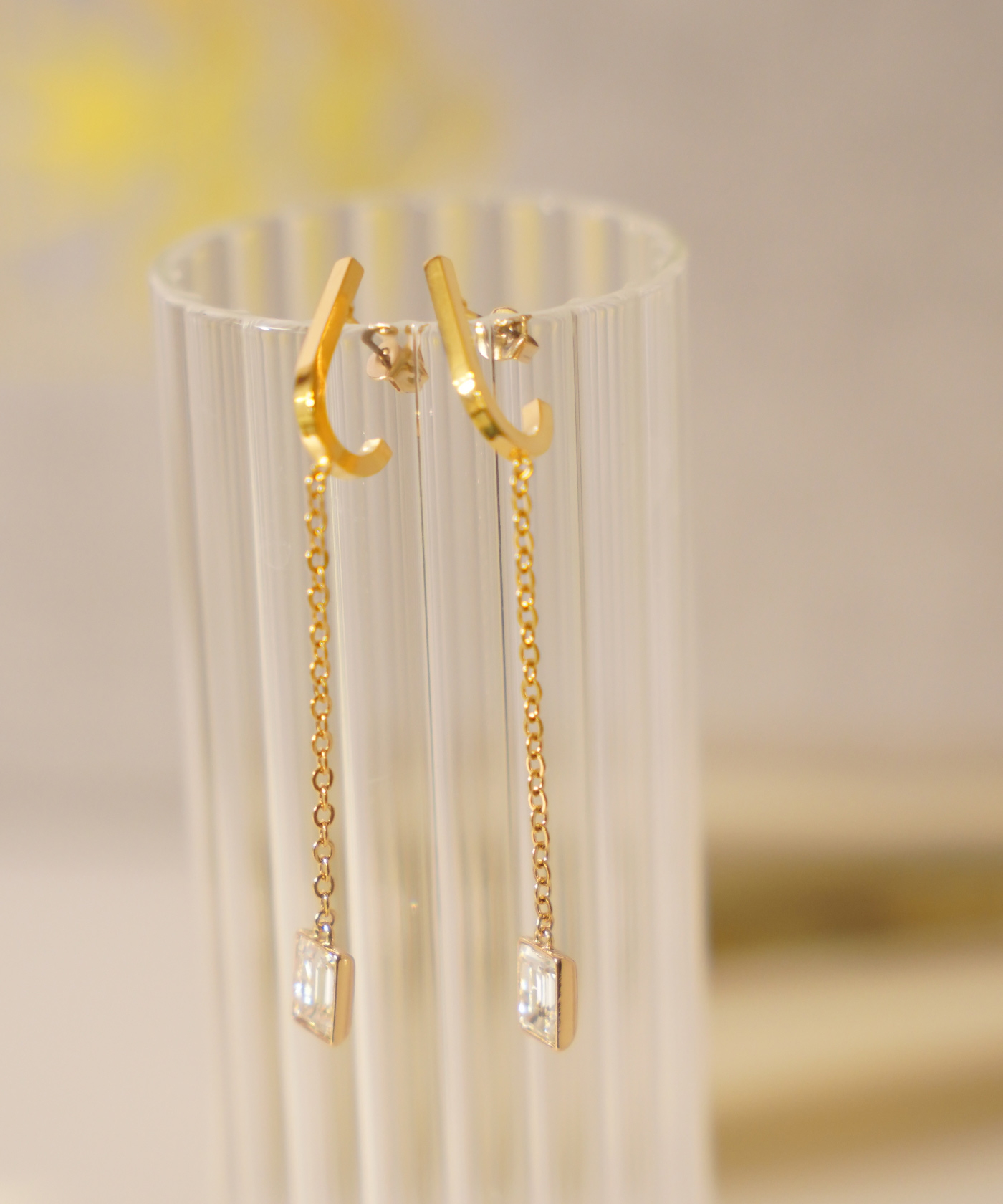顔周りでキラキラとスウィングするクリア感あるデザインでシンプルながら華やかさも楽しめるアイテムです。