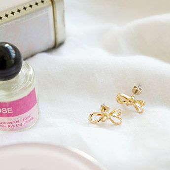 ねじりデザインで甘さを控えめに作ったリボンピアスです。