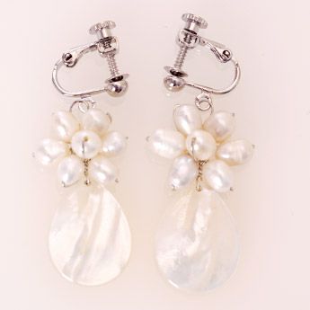シェル独特の艶めきが美しいフラワーモチーフのピアスイヤリングです。