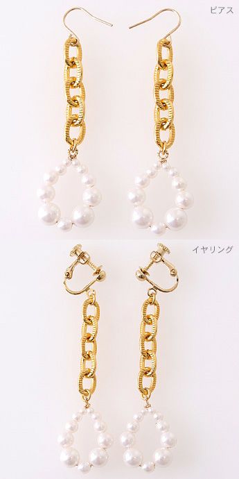 太めのゴールドチェーンで夏らしく、大人ピアスをお楽しみください。