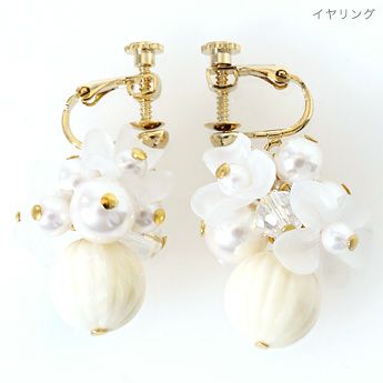 クリアなフラワーとパール、ビーズが軽やかに揺れる涼しげなデザインです。