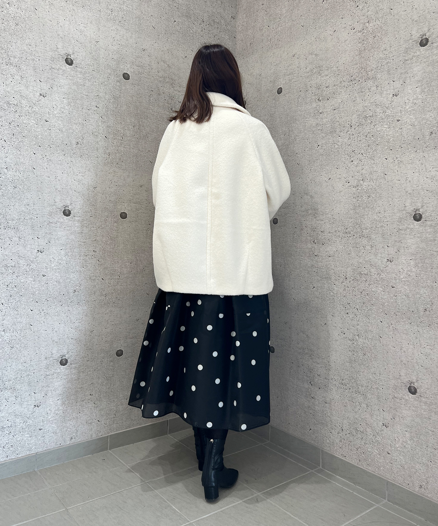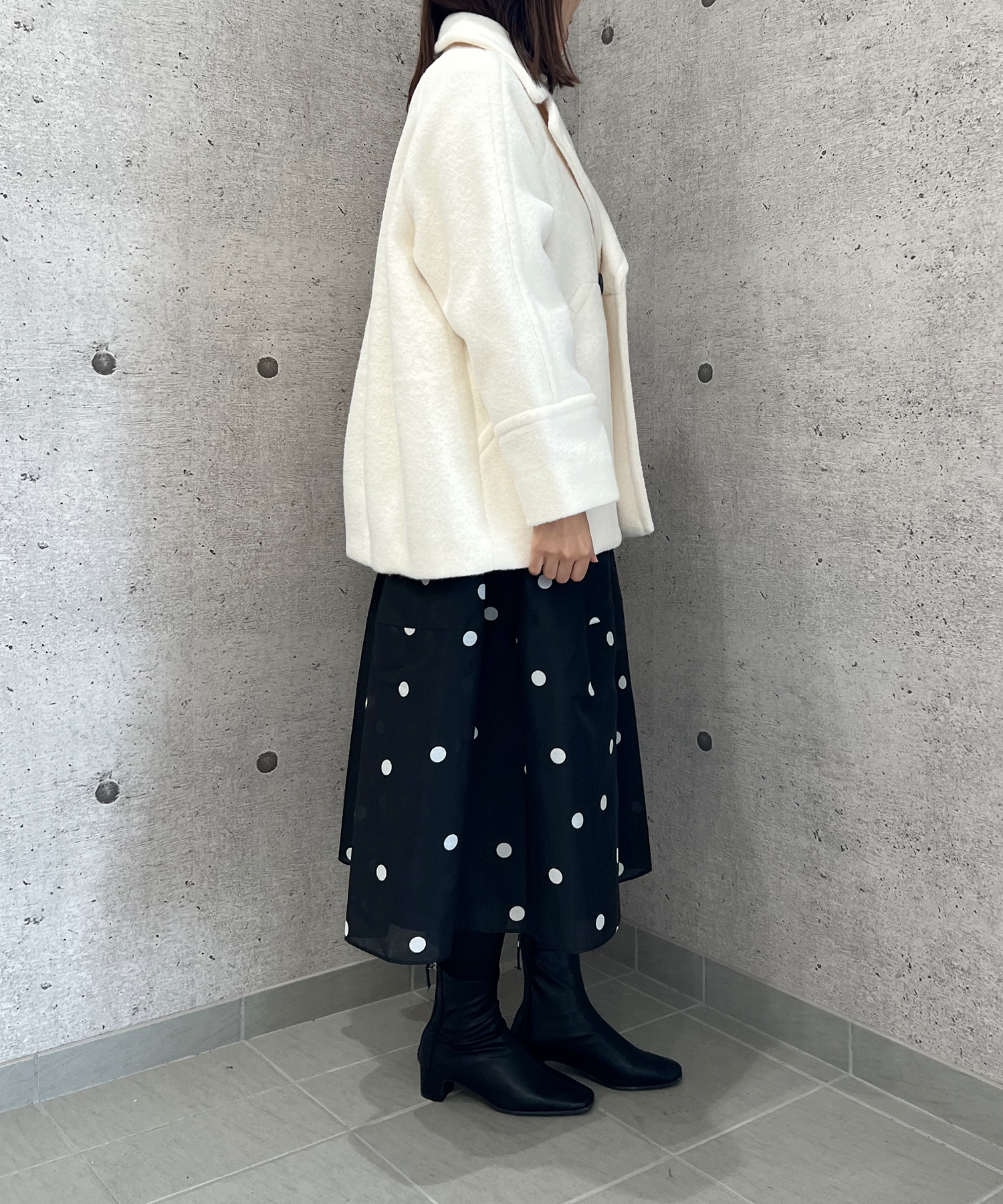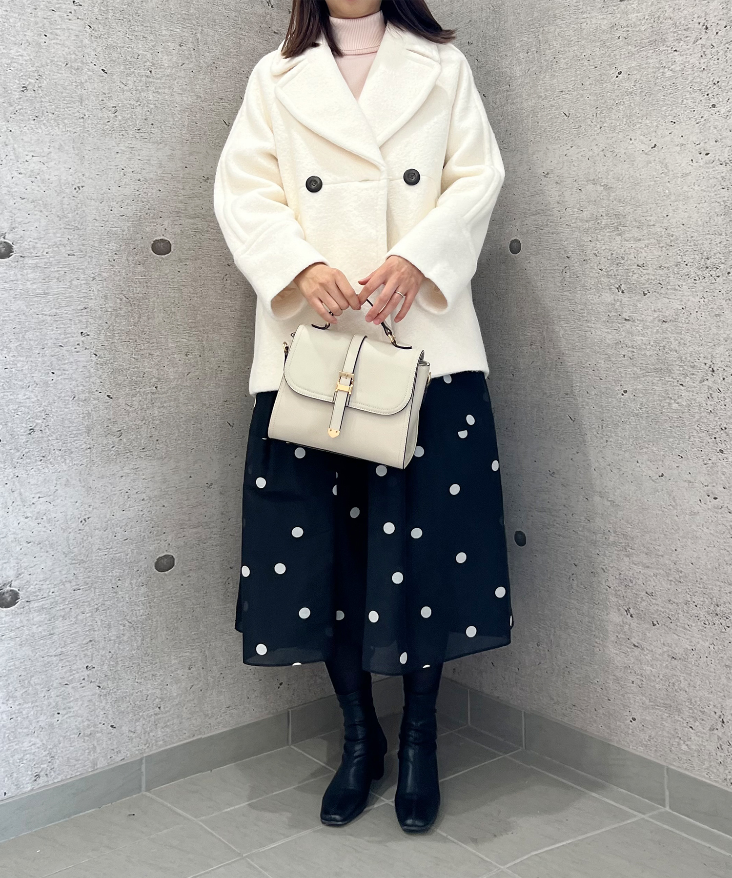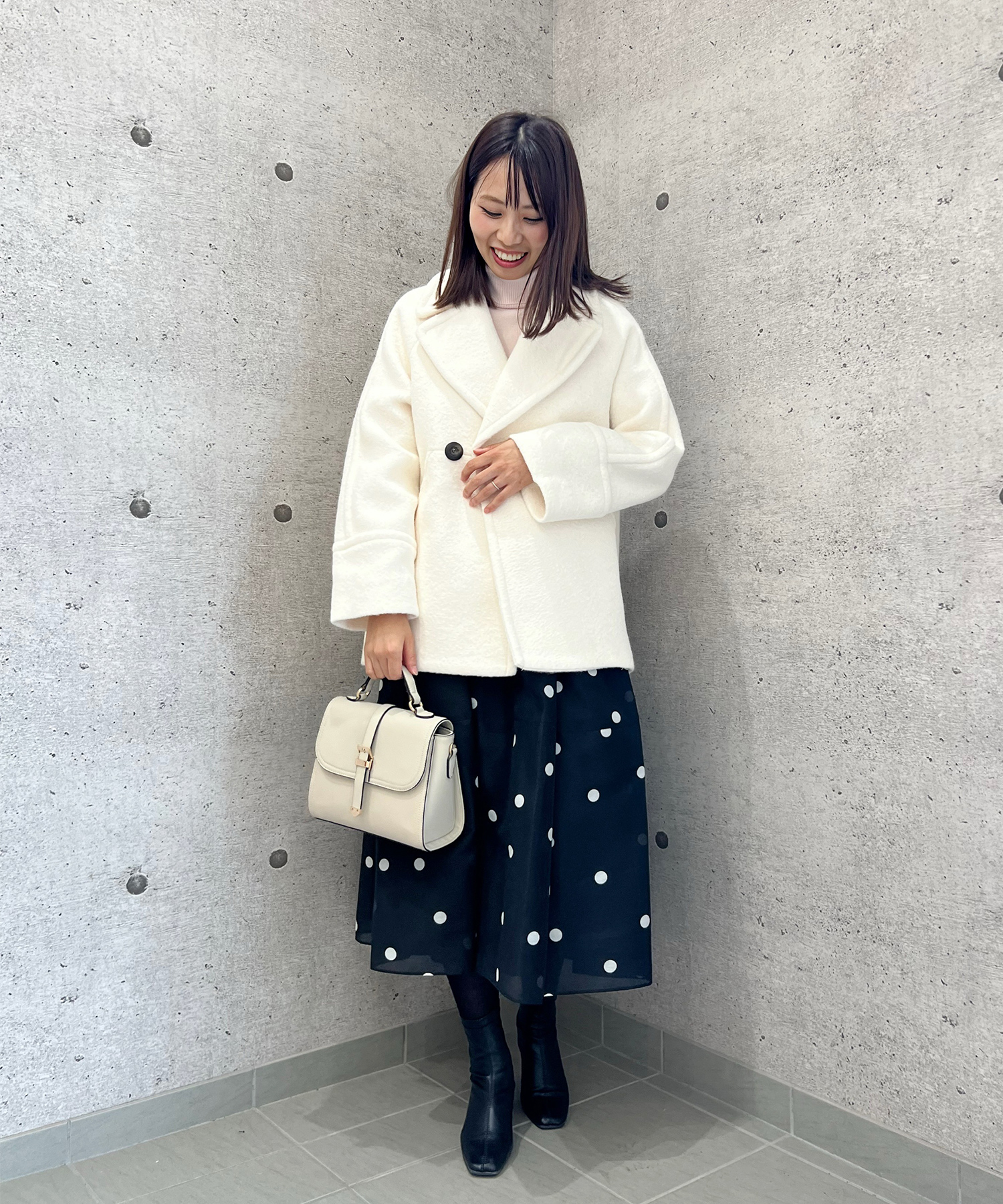 アイボリーのアウターを合わせてモノトーンに仕上げました❄